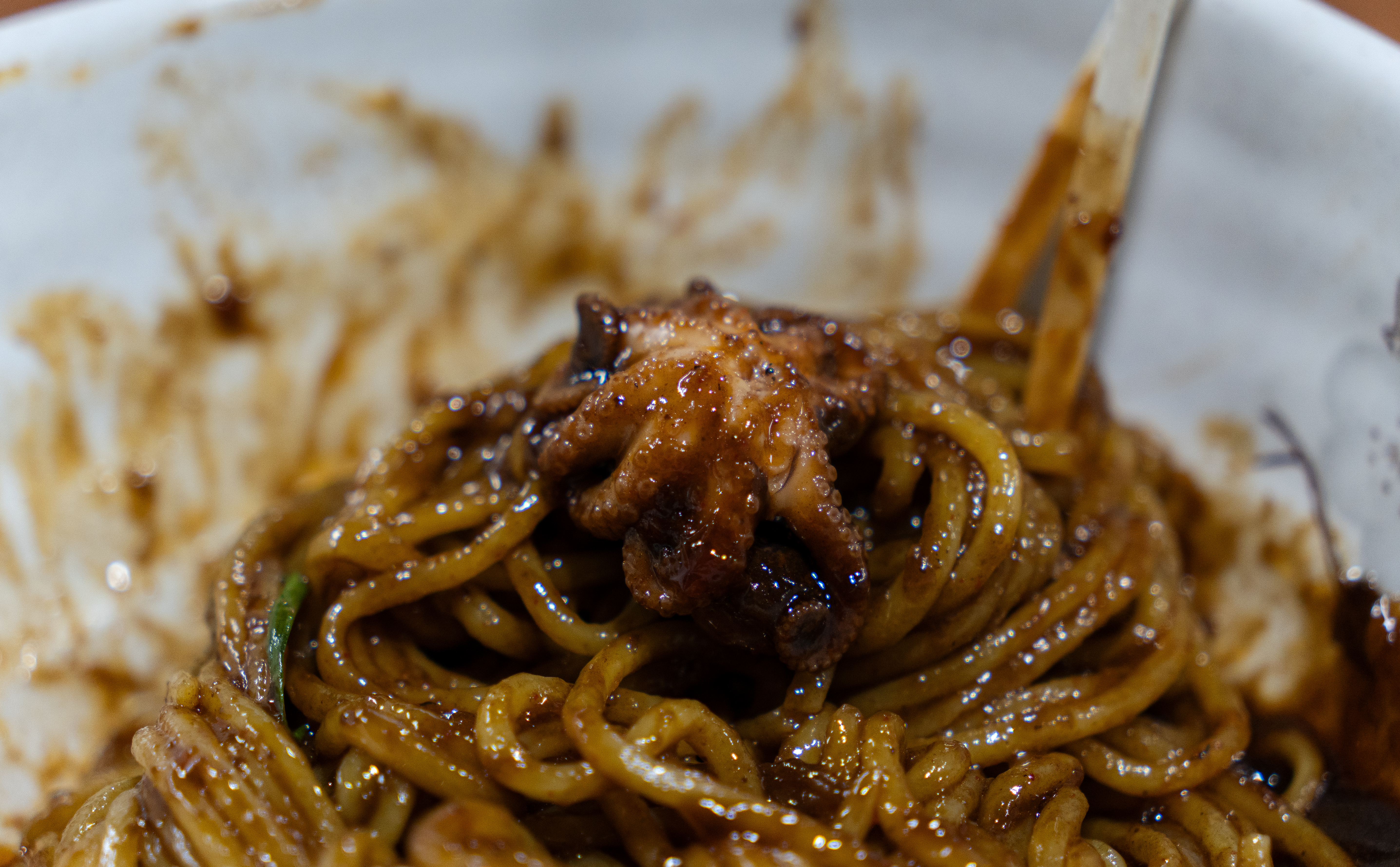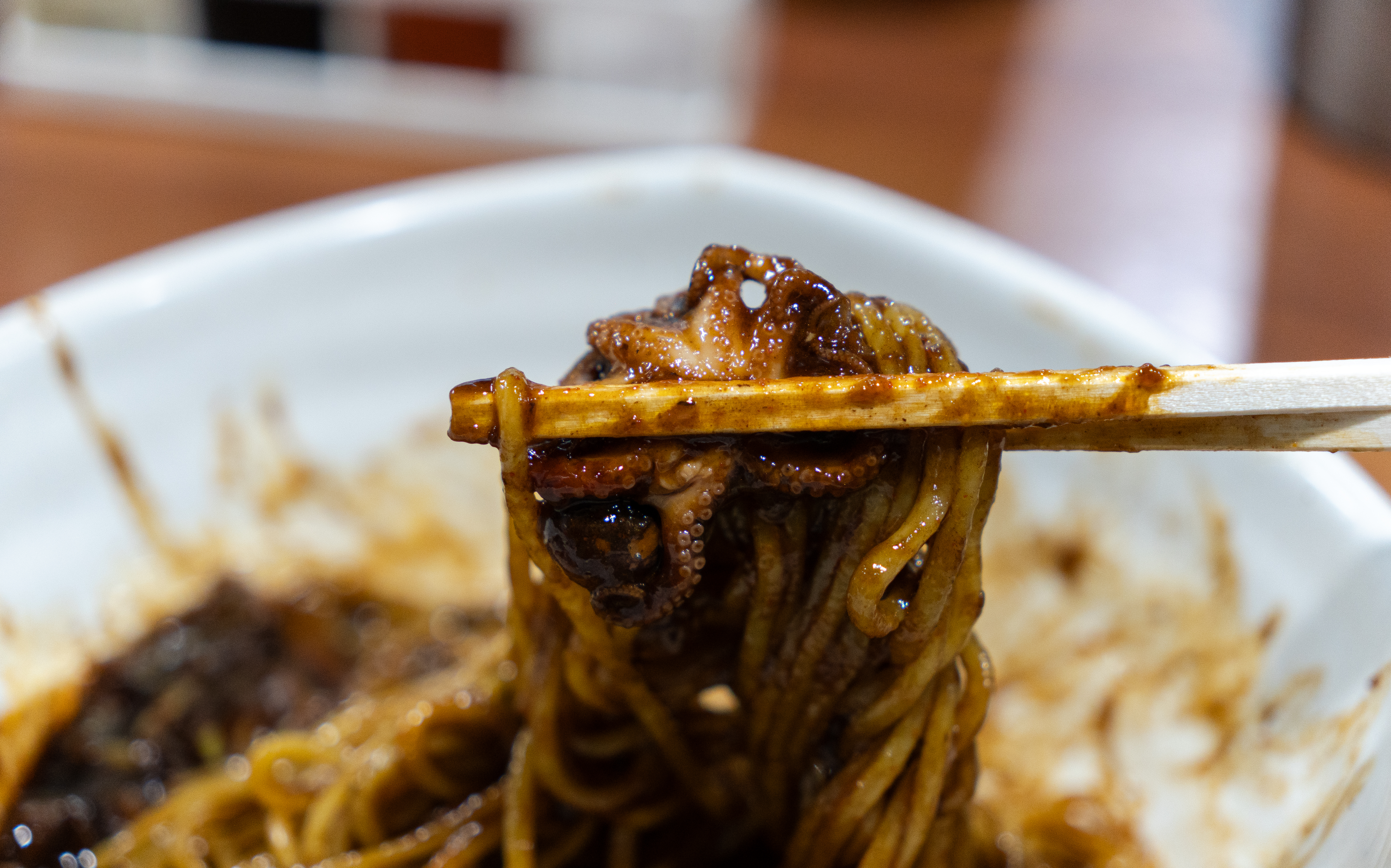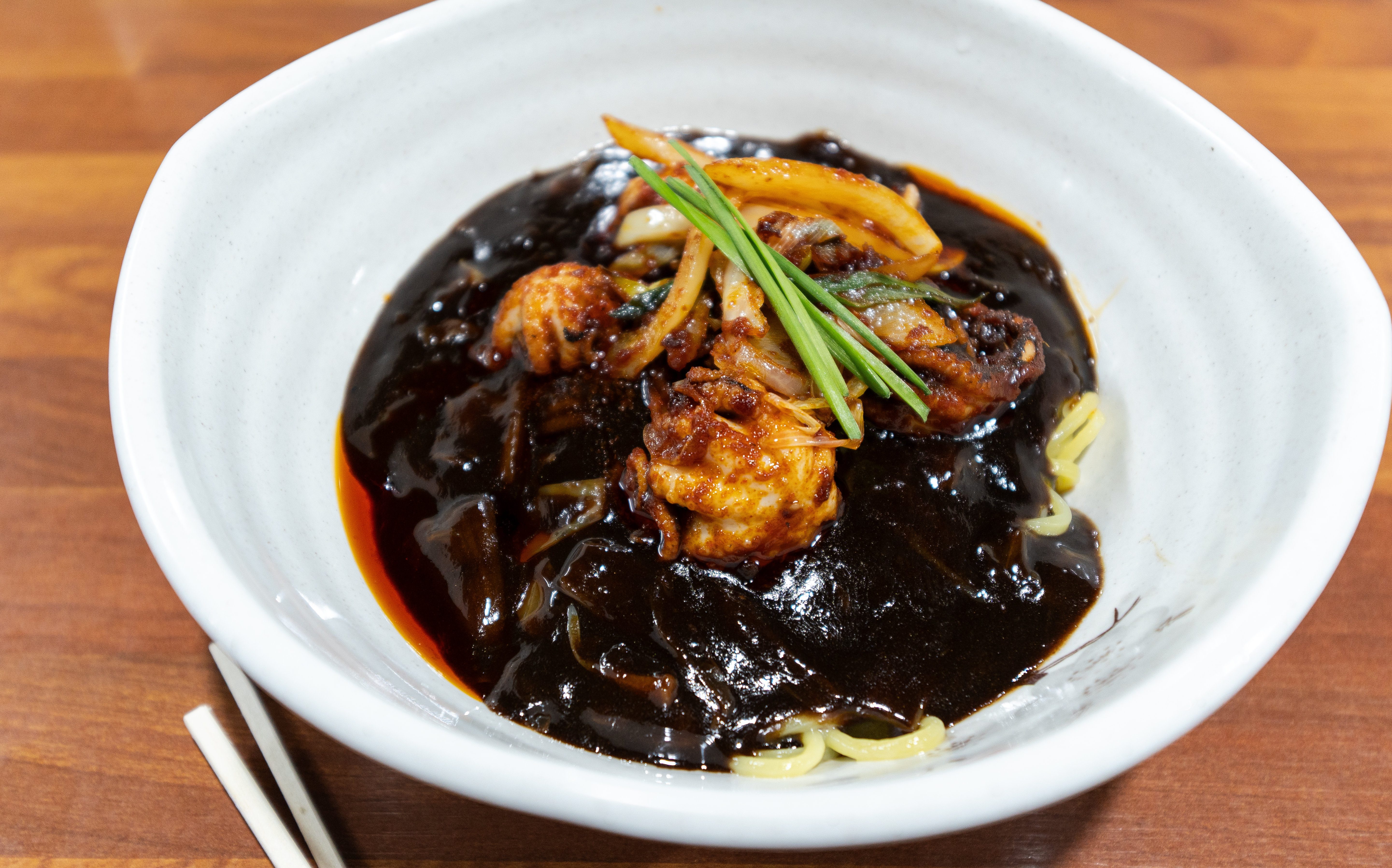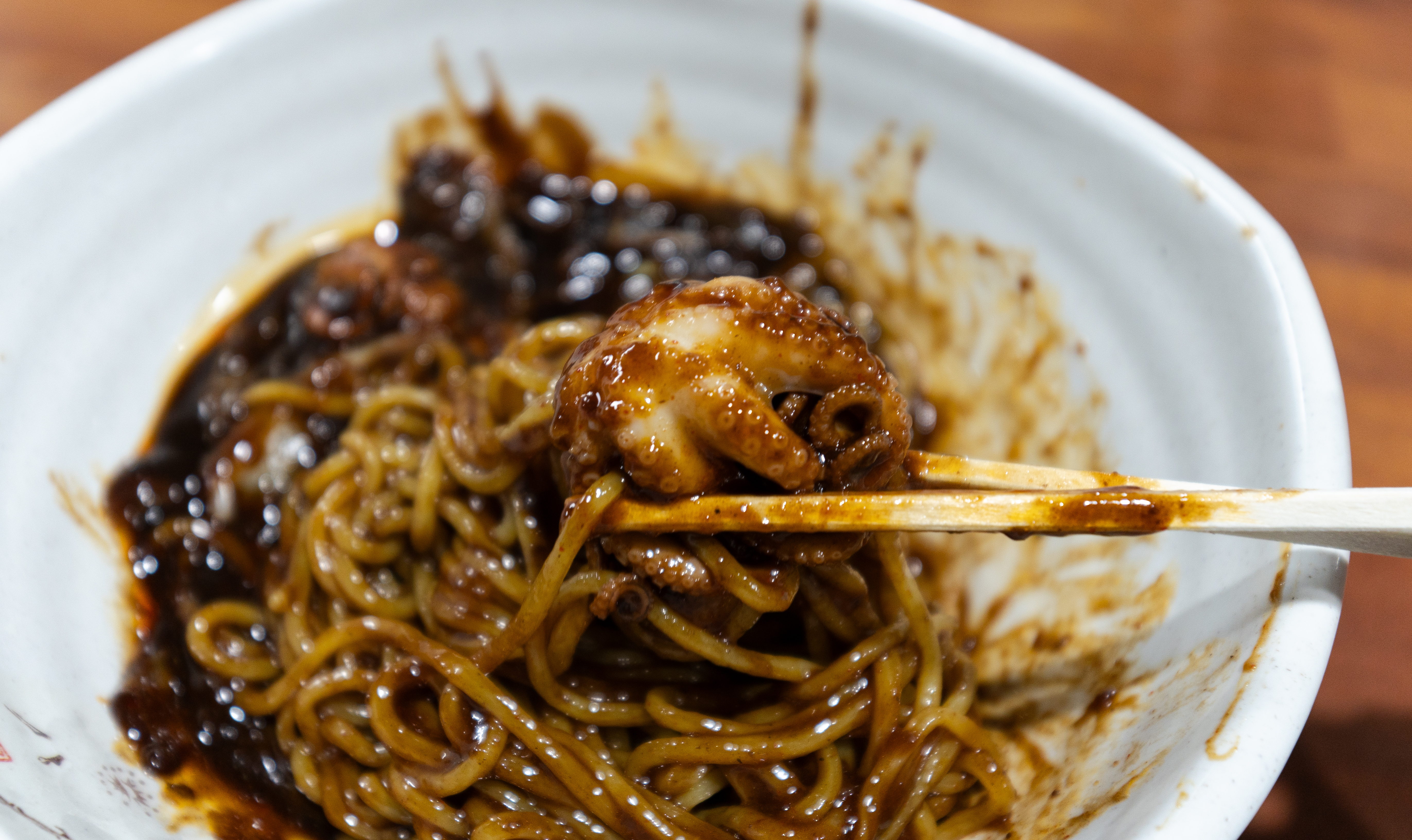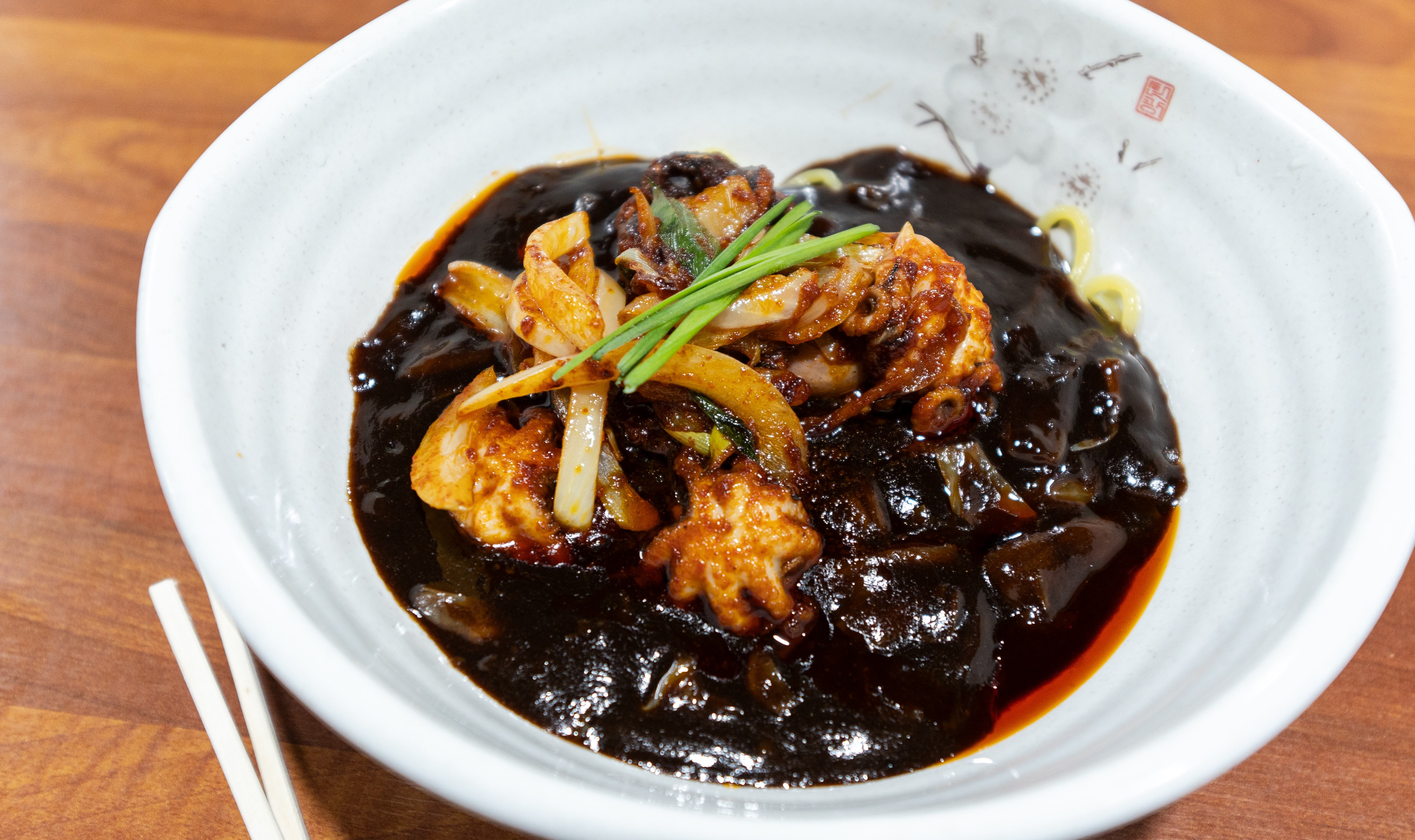 쭈꾸미짜장면은 위와 같이 양파와 함께 매콤하게 볶아내서 짜장면 위에 얹어 나오고 있었습니다. 짜장면 자체도 맛이 진하고 맛있었는데, 매콤한 쭈꾸미볶음이 더해지니 맛이 더 괜찮아지더라고요. 야들야들한 주꾸미가 잘라서 올라간 게 아니라 통으로 올라가 있어 식감도 좋았고 맛도 매력 있다 생각이 듭니다.