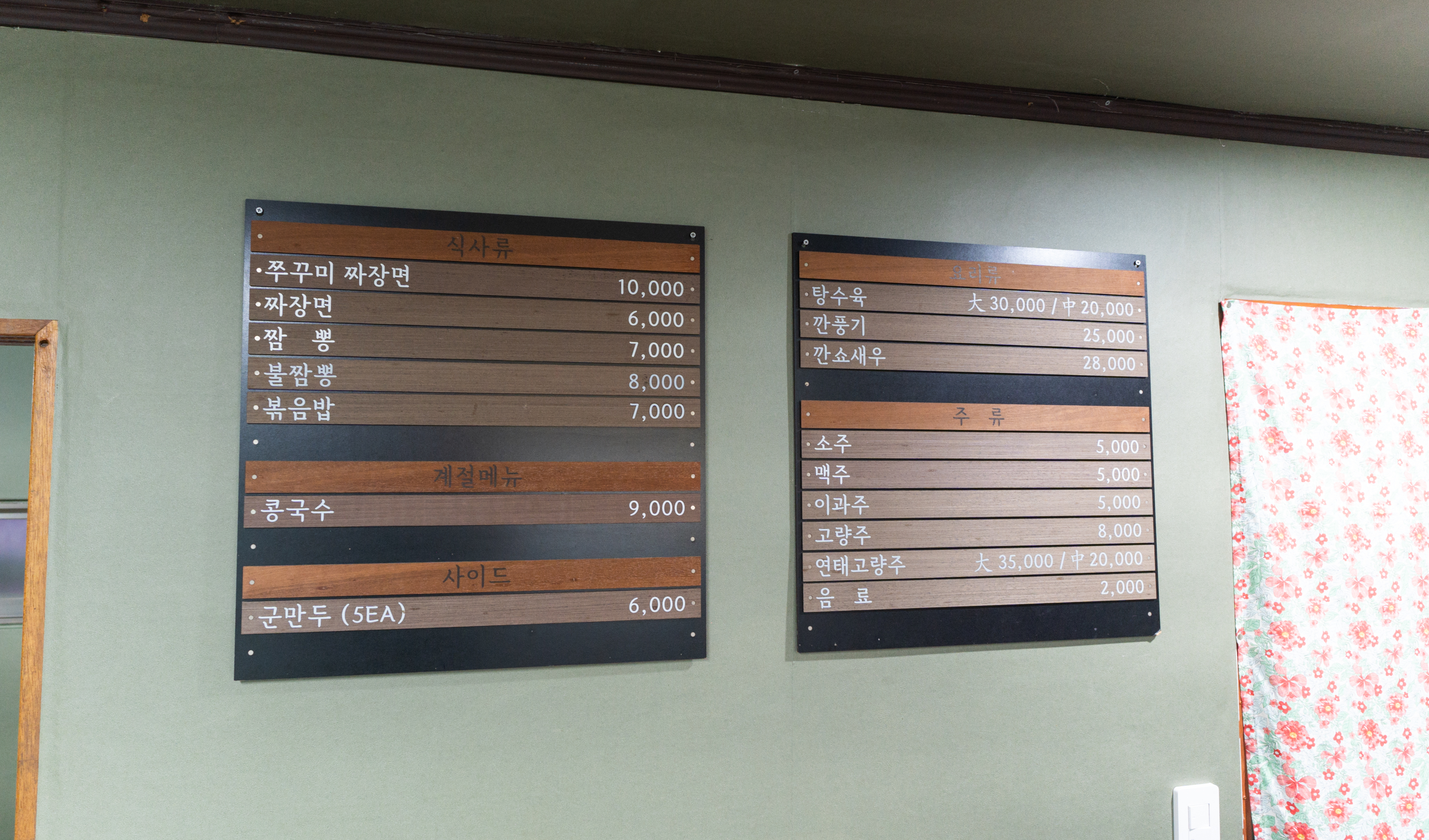 중화루에는 쭈꾸미짜장면과 짜장면, 짬뽕, 불짬뽕, 볶음밥, 콩국수, 군만두, 탕수육, 깐풍기, 깐쇼새우가 있었습니다. 식사류 중에는 쭈꾸미짜장면이 10,000원으로 가장 비싼 메뉴였고, 대부분 가격이 크게 부담스럽지 않은 수준이었습니다.