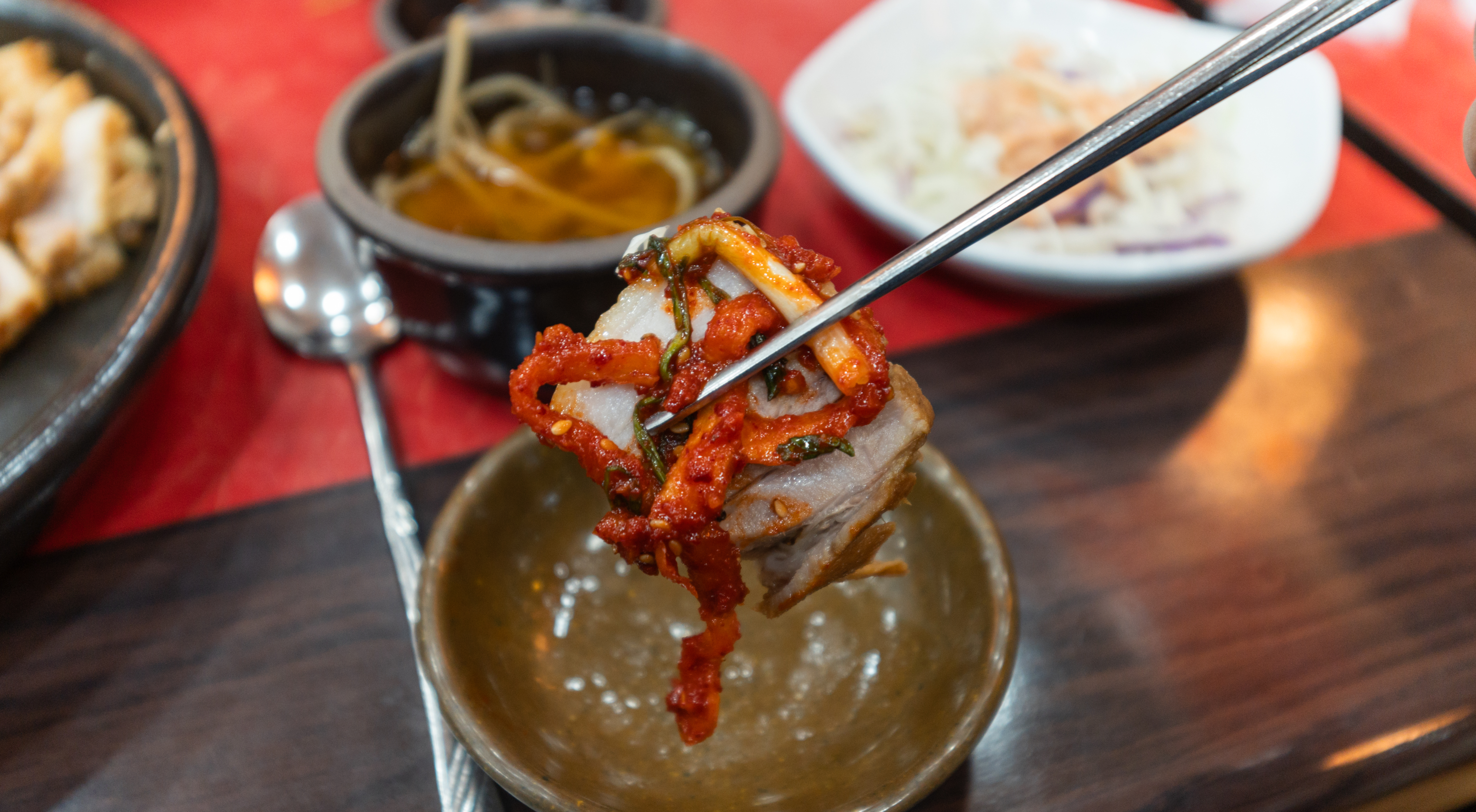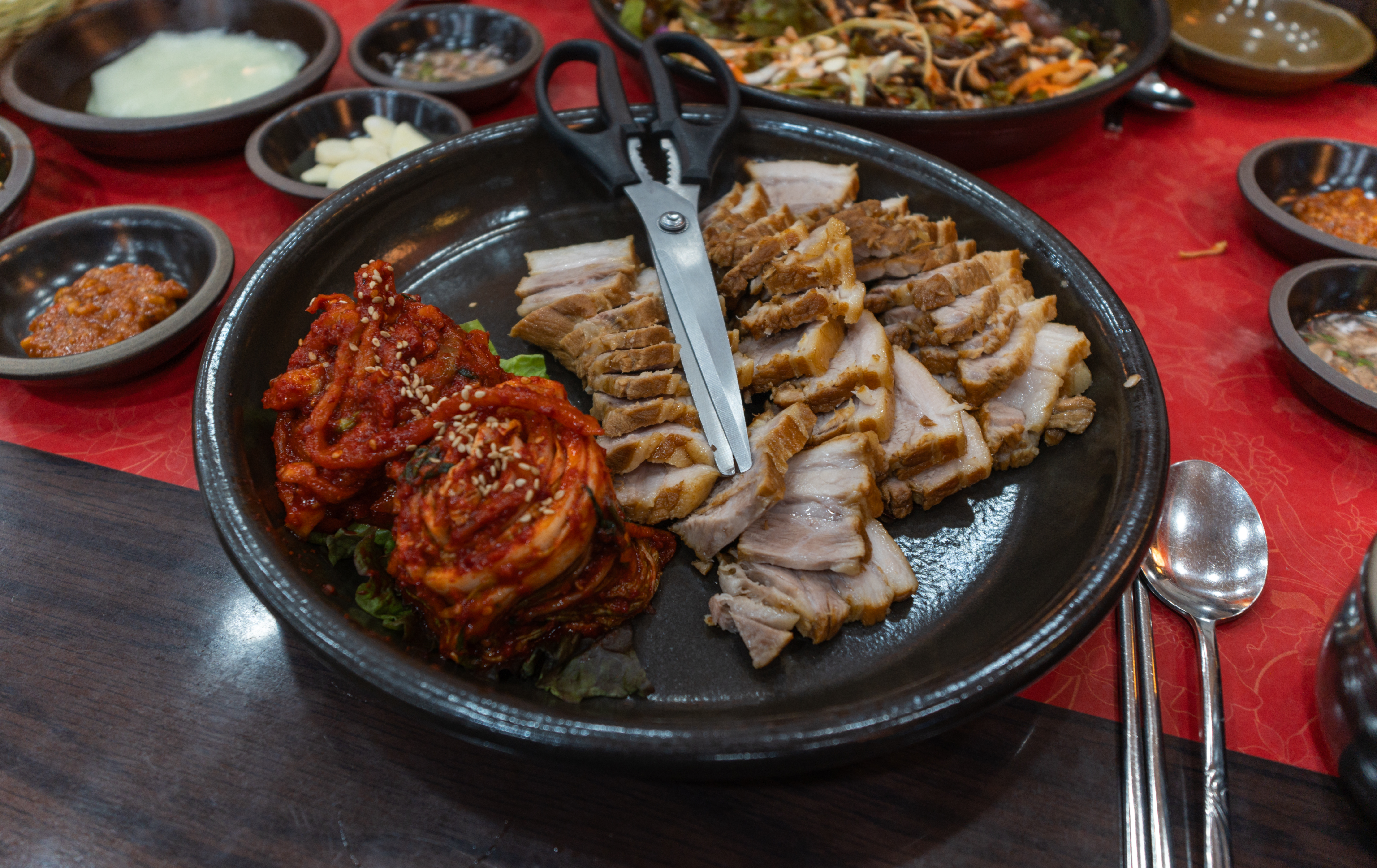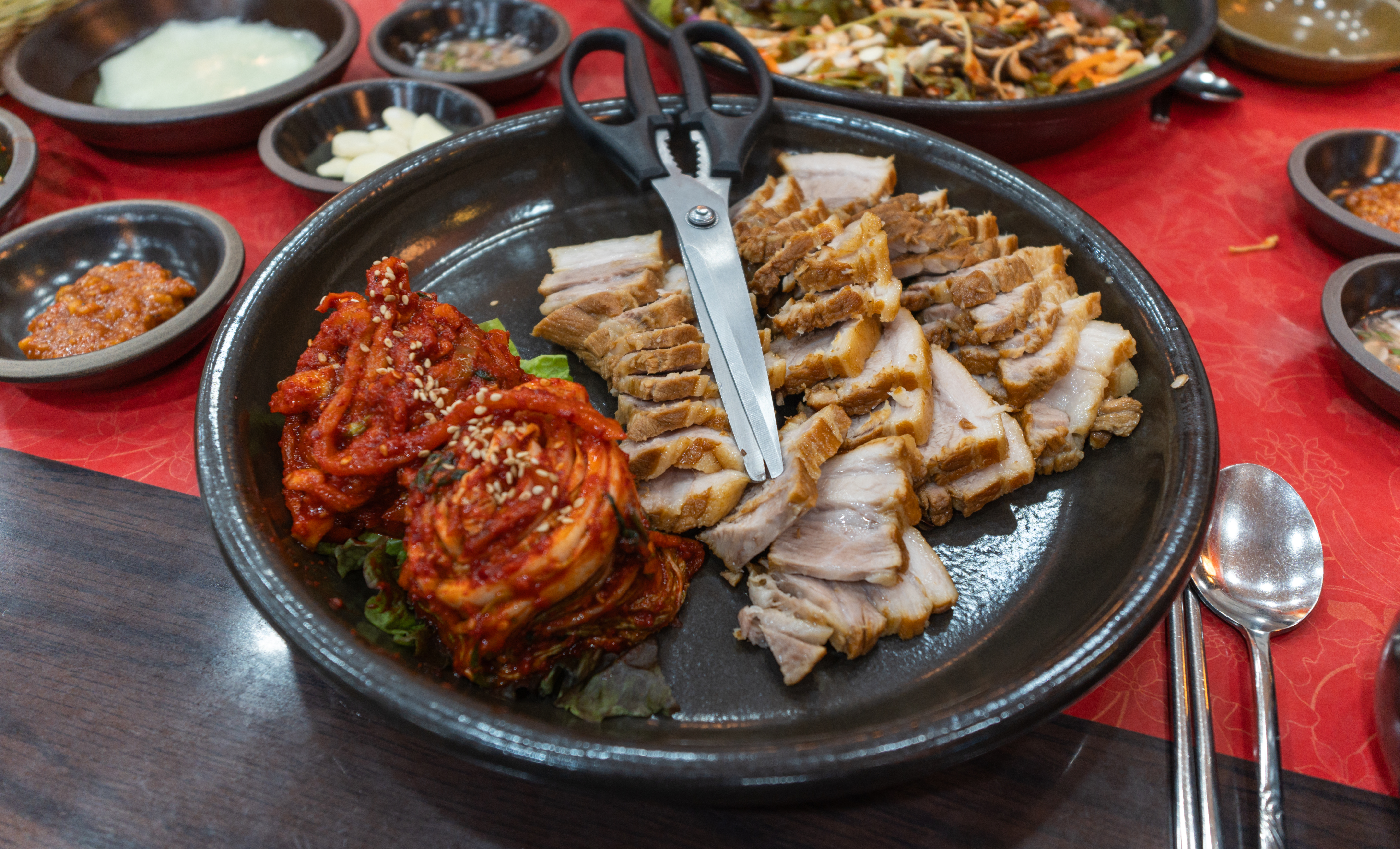 보쌈은 부드럽고 간이 간간하게 배어있어 그냥 먹어도 맛있었지만, 무김치나 부추무침 혹은 배추김치와 먹어도 맛있었습니다. 조금 색다르게 드시고 싶으신 분은 새콤달콤한 쟁반국수랑도 곁들일 수도 있습니다.