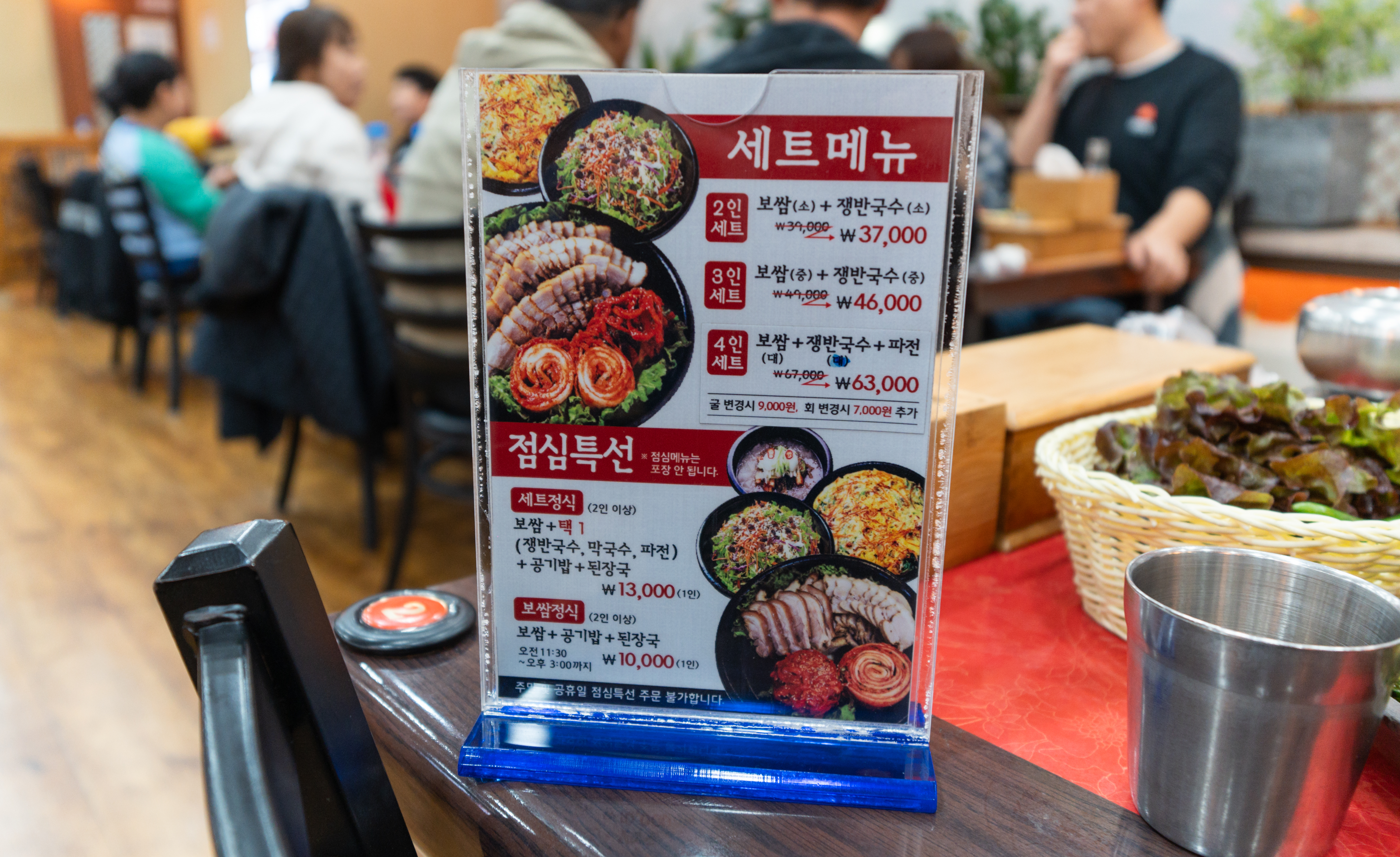 거여동 항아리보쌈은 보쌈, 굴보쌈, 회보쌈, 쟁반국수, 쟁반국수, 파전이 있었고, 세트 구성은 2-4인세트가 있었고, 점심특선으로 세트정식, 보쌈정식이 있었습니다. 저희는 항아리보쌈 3인세트를 주문했습니다.