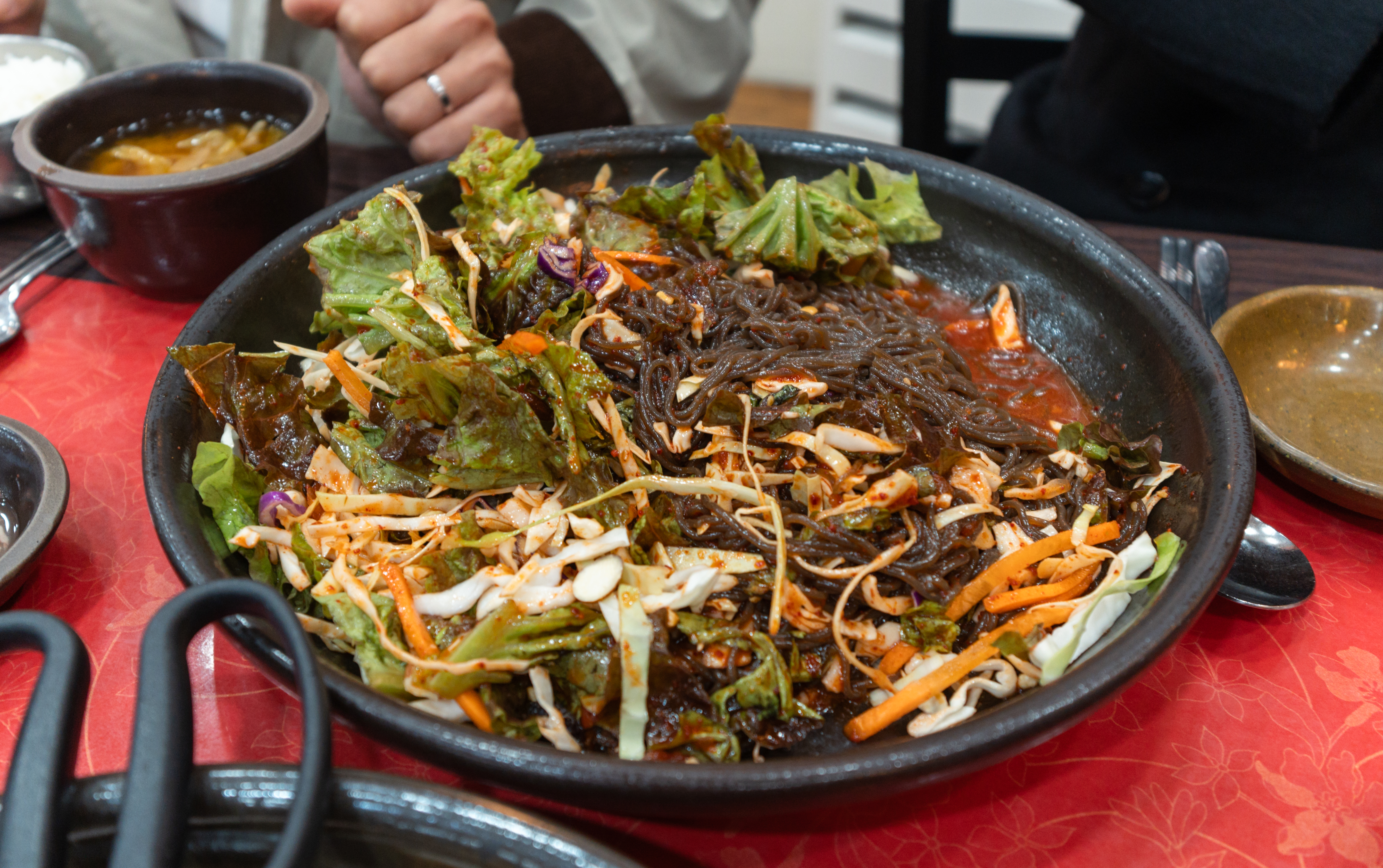 최근에 다시 다녀온 항아리보쌈 거여역점. 오랜만에 다시 찾은 가게였는데, 이번에 갔을 때도 역시나 손님들이 많이 찾고 있었고, 가성비 좋은 보쌈 세트를 맛볼 수 있었습니다. 저희는 쟁반국수와 보쌈으로 구성된 3인세트를 먹었는데 양도 적당했고 맛있더라고요. 부드럽고 간간한 맛의 보쌈은 그냥 먹어도 맛있었지만, 보쌈김치나 부추무침, 쟁반국수와도 잘 어울렸습니다.