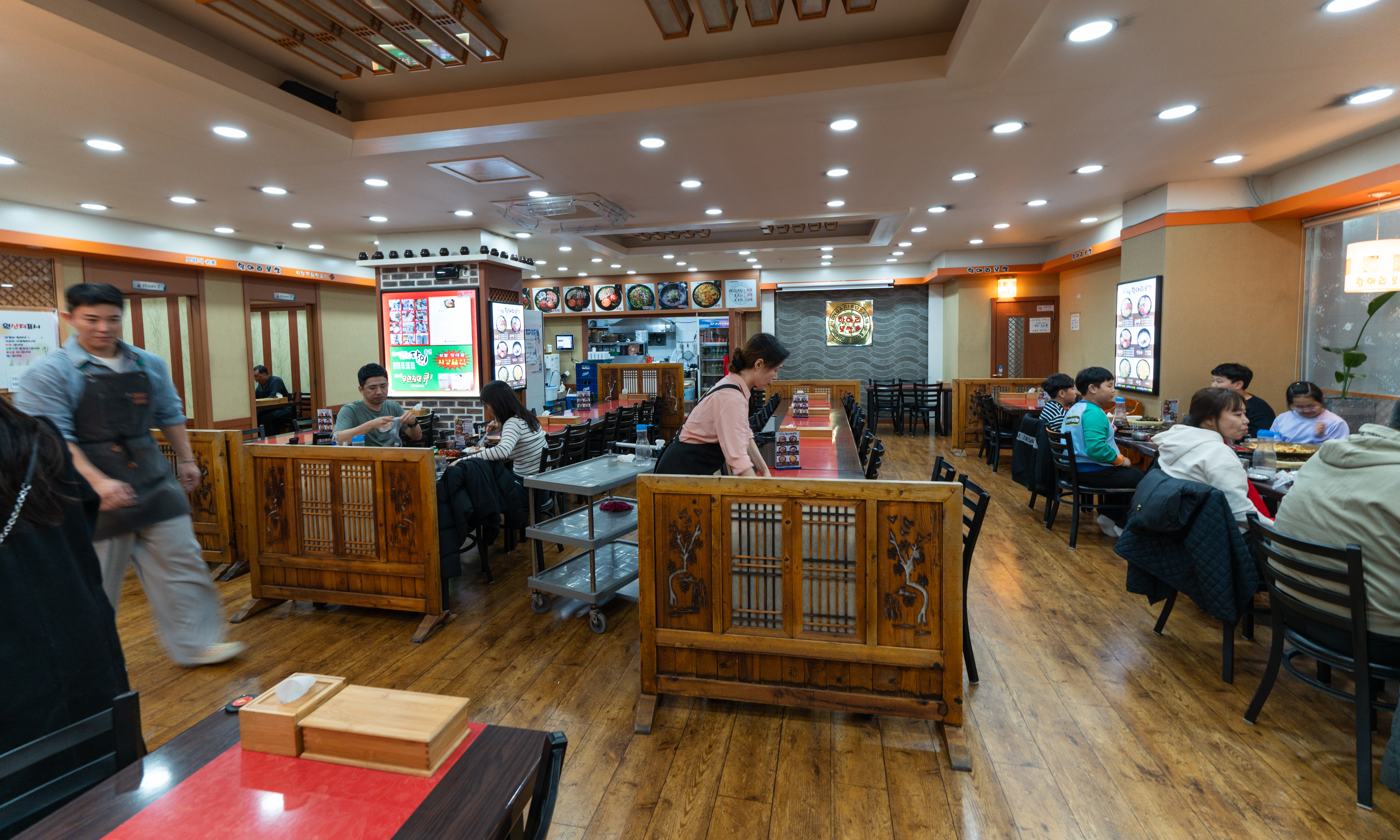 항아리보쌈 거여역점은 서울 송파구 거여동 42-3, 1층에 위치해 있었습니다. 주차는 가게 앞에 하면 되었는데, 대부분 다른 곳에 주차하고 방문하시는 것 같더라고요. 가게는 꽤 널찍했고 신발은 벗고 가게에 입장하면 되었습니다.