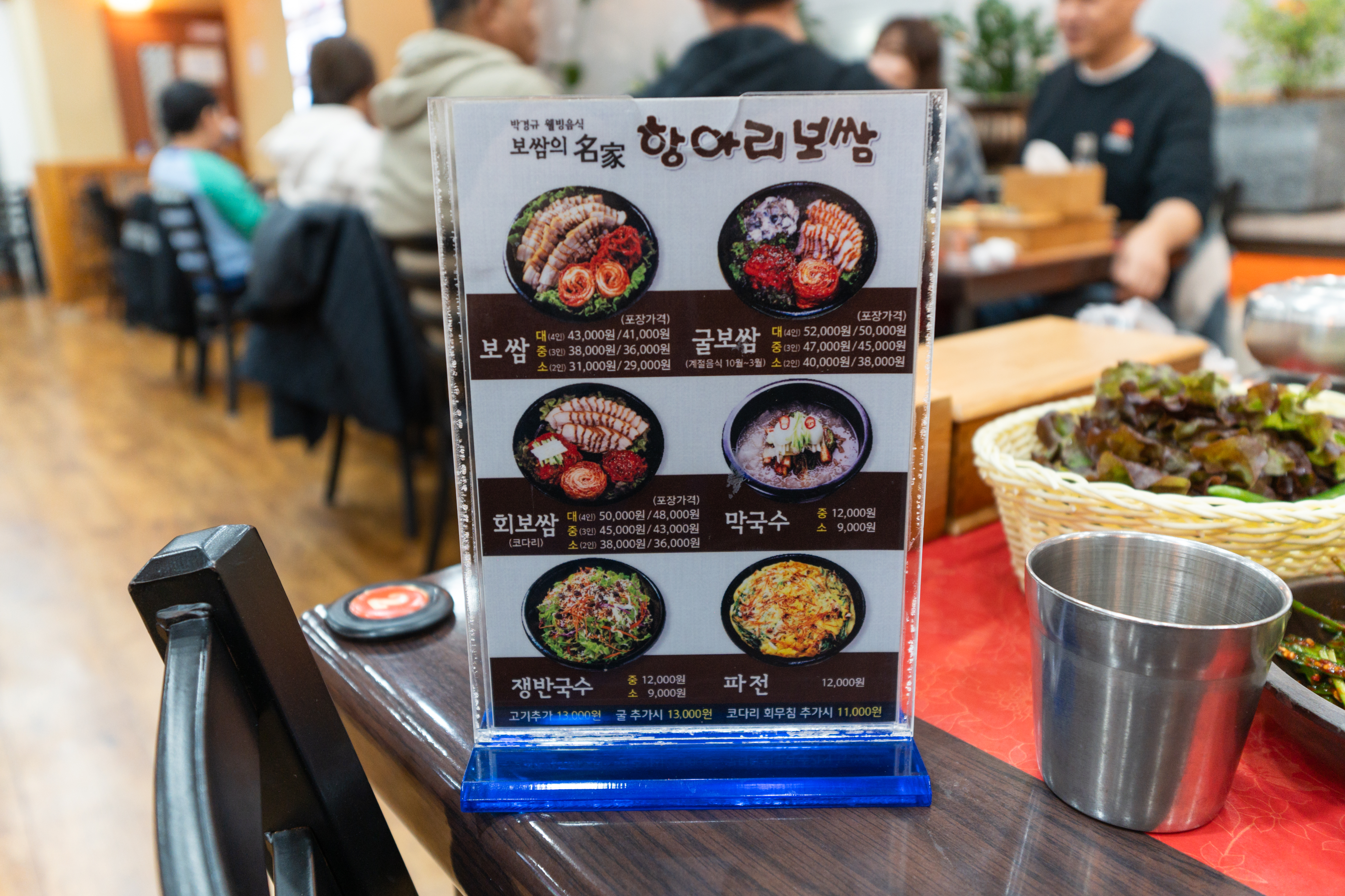 거여동 항아리보쌈은 보쌈, 굴보쌈, 회보쌈, 쟁반국수, 쟁반국수, 파전이 있었고, 세트 구성은 2-4인세트가 있었고, 점심특선으로 세트정식, 보쌈정식이 있었습니다. 저희는 항아리보쌈 3인세트를 주문했습니다.