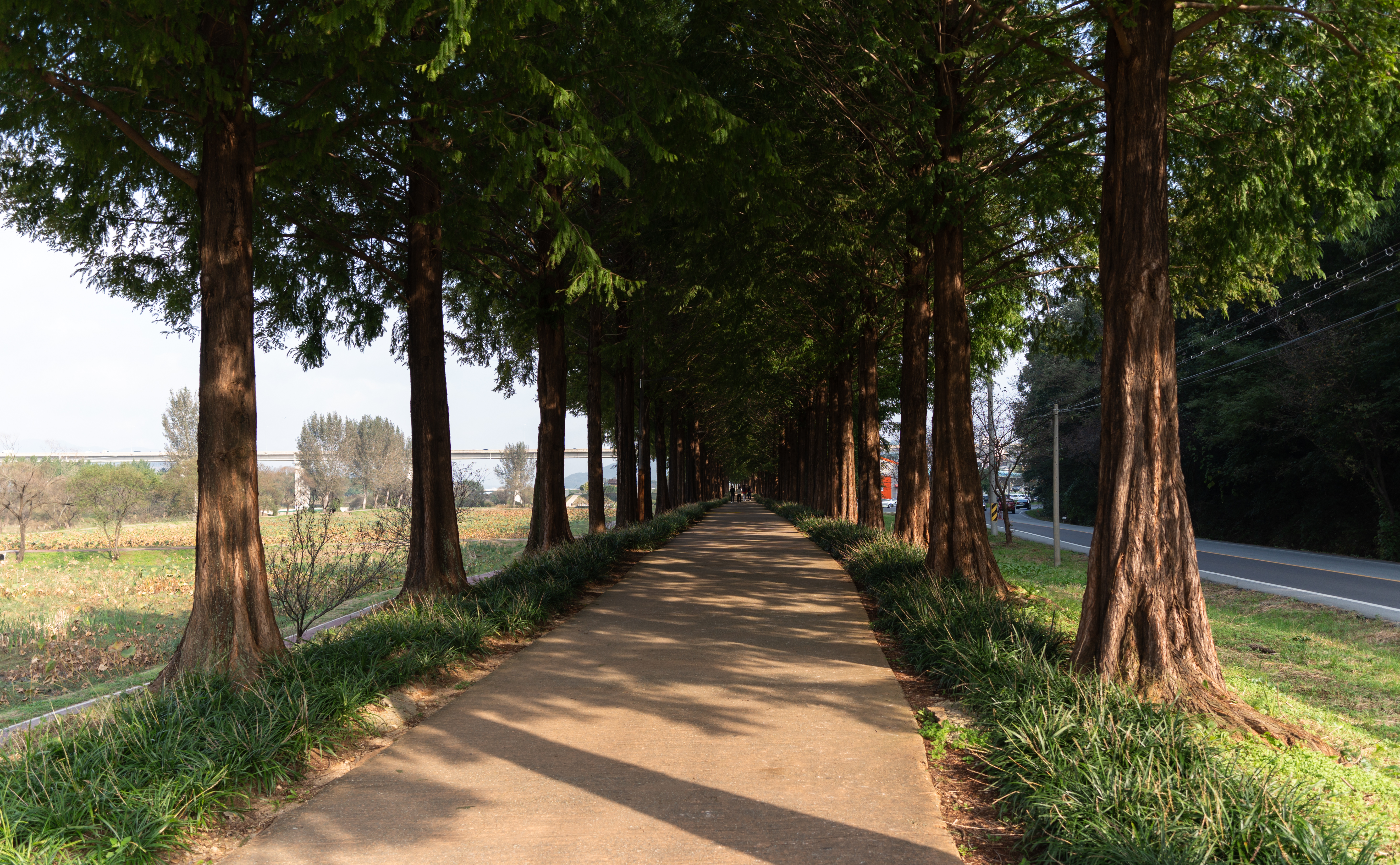 원래 정안천생태공원에서 계절의 흐름을 보여주는 가을을 담은 영상을 촬영하려고 메타세콰이어길만 찍었는데, 사진을 정리하고 나니 너무 나무사진만 있어 단조롭네요. 정안천생태공원은 규모가 크지는 않았지만, 근처에 산책하기 좋았고 차량 통행도 많지 않아서 호젓하게 여행하기 좋은 장소였습니다. 가을 사진이라기엔 너무 푸르른 나무들이 야속하지만, 다음에 다시 찾는다면 붉게 물든 나뭇잎들을 만나볼 수 있겠죠?