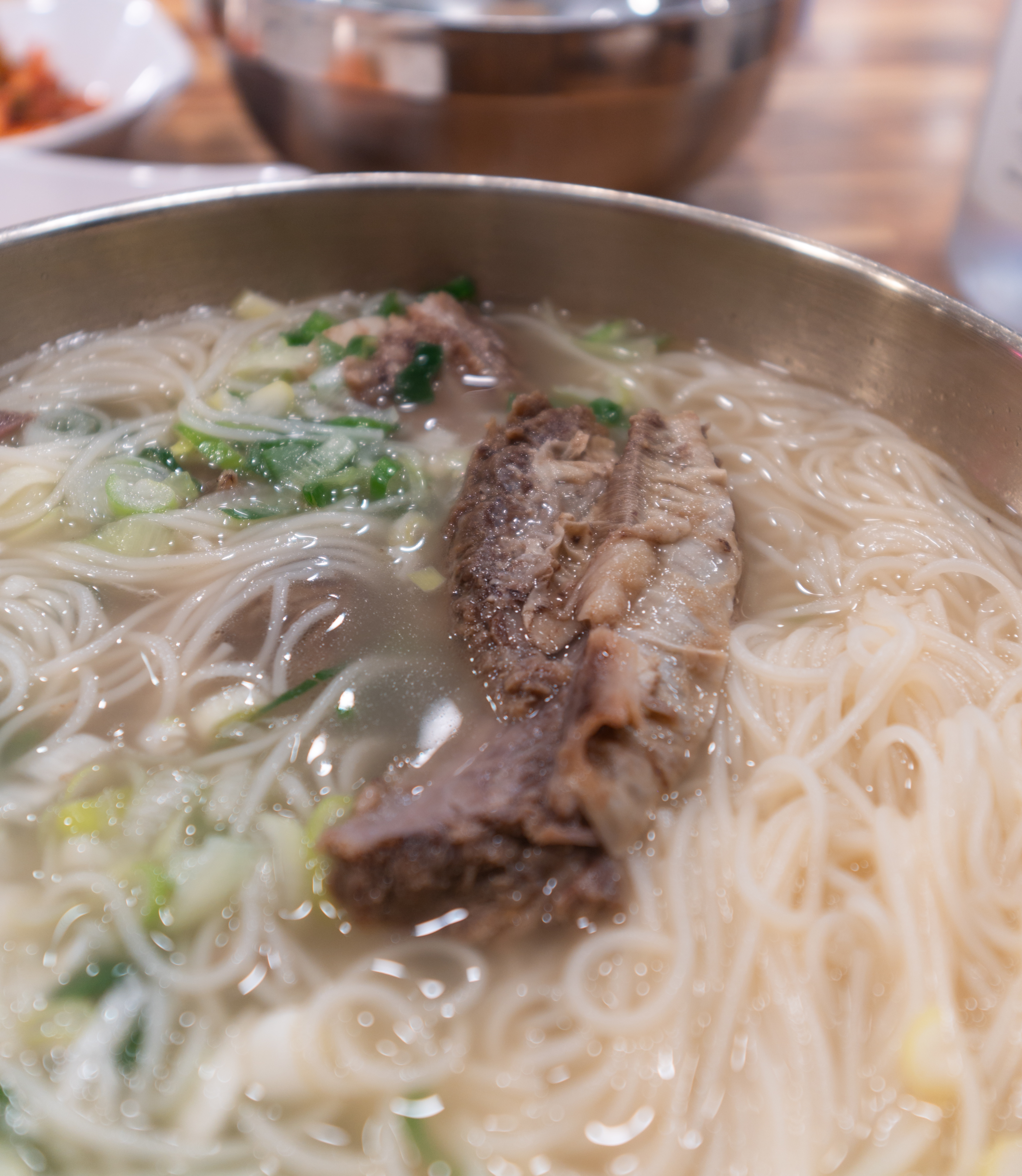 갈비국수에는 메뉴의 이름처럼 갈비가 들어있었는데, 보통 갈비탕 속에 들어가는 갈빗대가 3 덩이나 들어있더라고요. 처음엔 12,000원 가격이 조금 비싼 것처럼 느껴졌는데, 나름 또 생각해 보면 요즘 갈비탕 가격도 많이 올라서 이 정도 금액에 갈비도 뜯고 국수까지 먹으니 나쁘지 않은 금액 같아 보이더라고요.