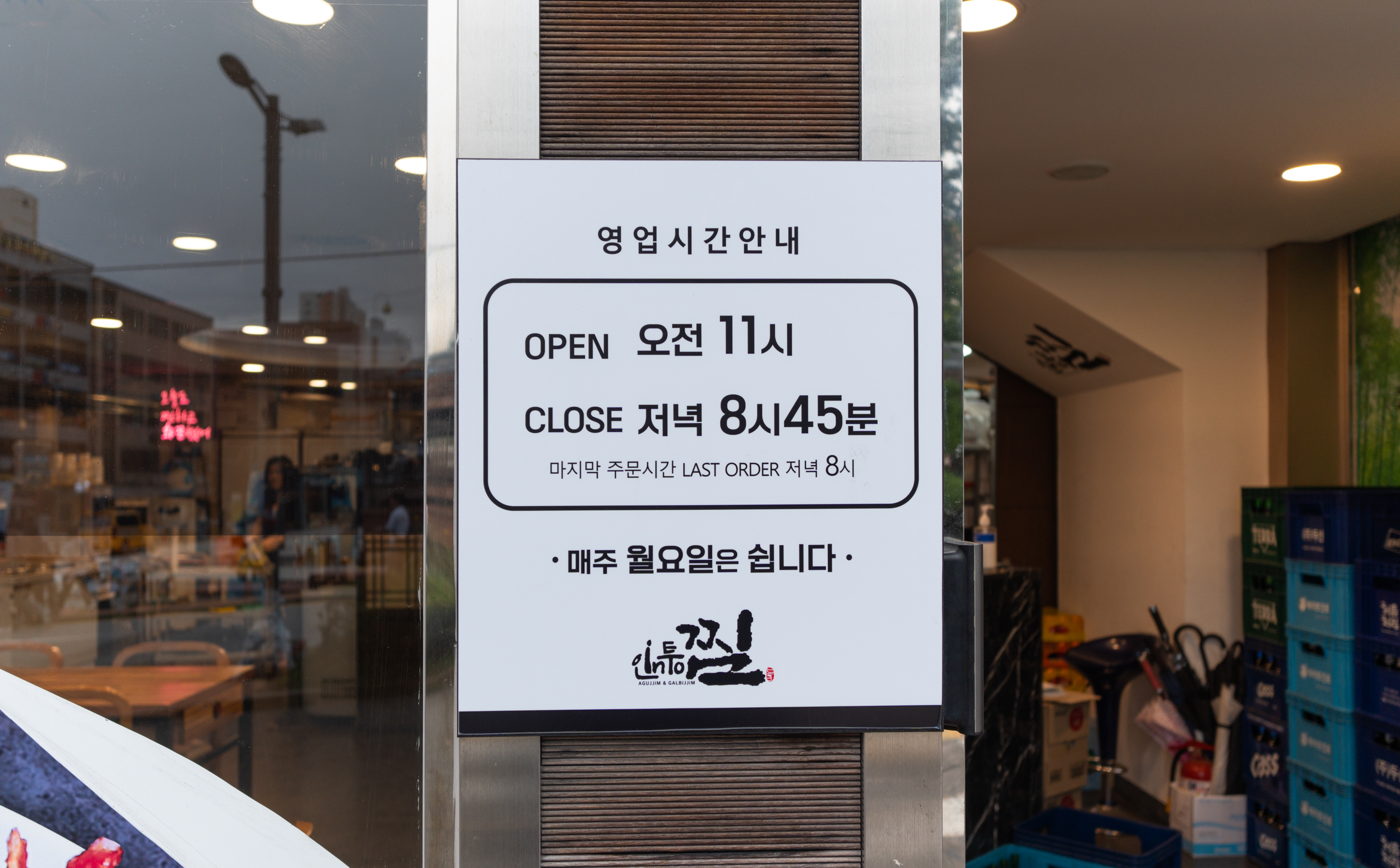 인투찜은 인천 미추홀구 도화동 80-80, 1층에 위치해 있었습니다. 차량 이용 시 가게 맞은편의 공영주차장에 주차할 수 있었고, 대중교통을 이용할 경우 제물포역 2번 출구 쪽에서 이용하면 되었습니다. 영업시간은 11:00-20:45 까지이며, 라스트오더는 20:00 까지였습니다. 매주 월요일은 휴무라고 합니다.