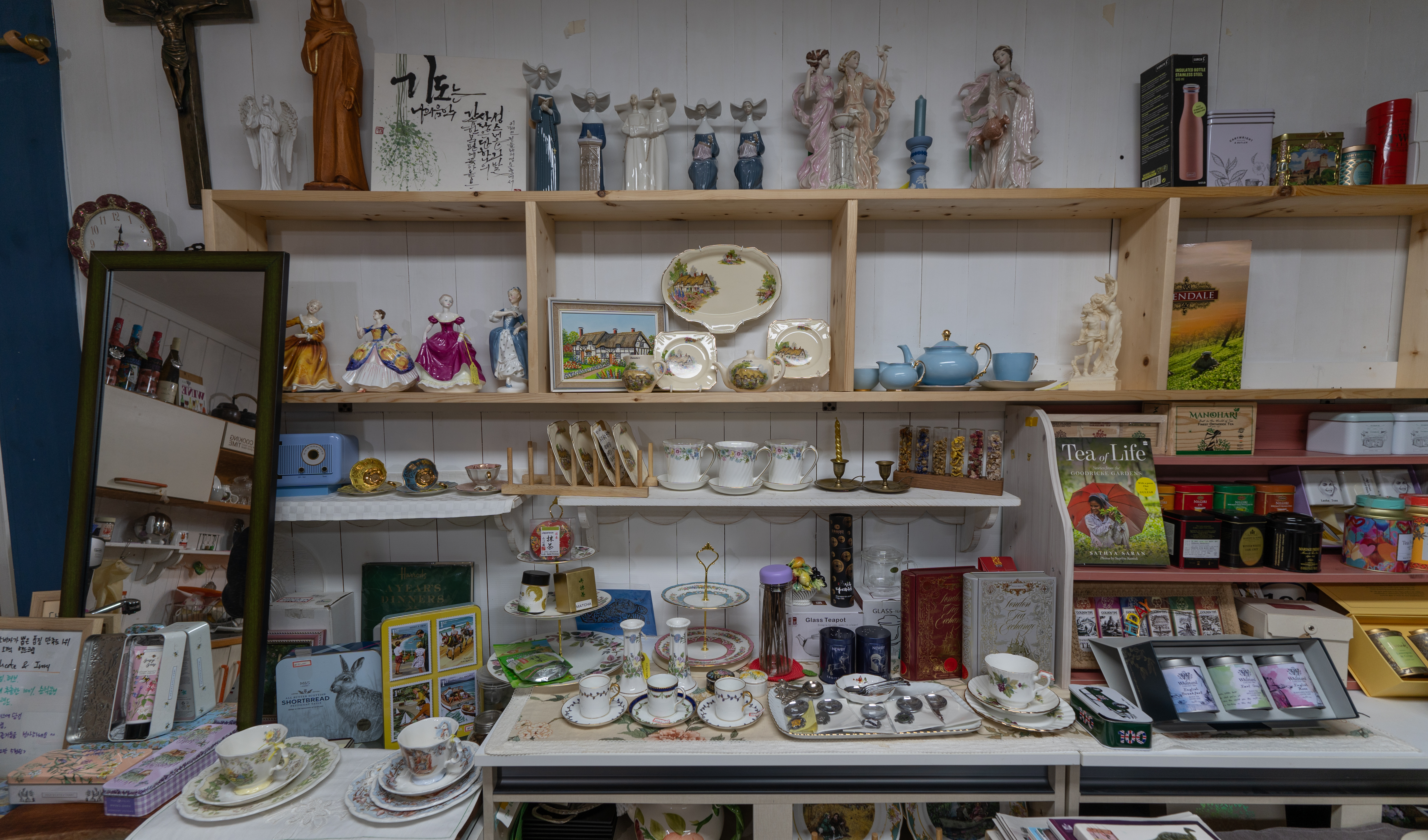 강화 브리티시컬렉션에서 판매하는 상품은 소품, 액자, 접시, 그릇, 티스푼, 홍차, 간식, 틴케이스, 책 등이 있었습니다. 가게 규모가 크지는 않아서 상품들의 밀집도가 조금 높은 편이지만, 잘 찾아보면 가성비 있게 합리적인 가격으로 소품을 구할 수 있었습니다.