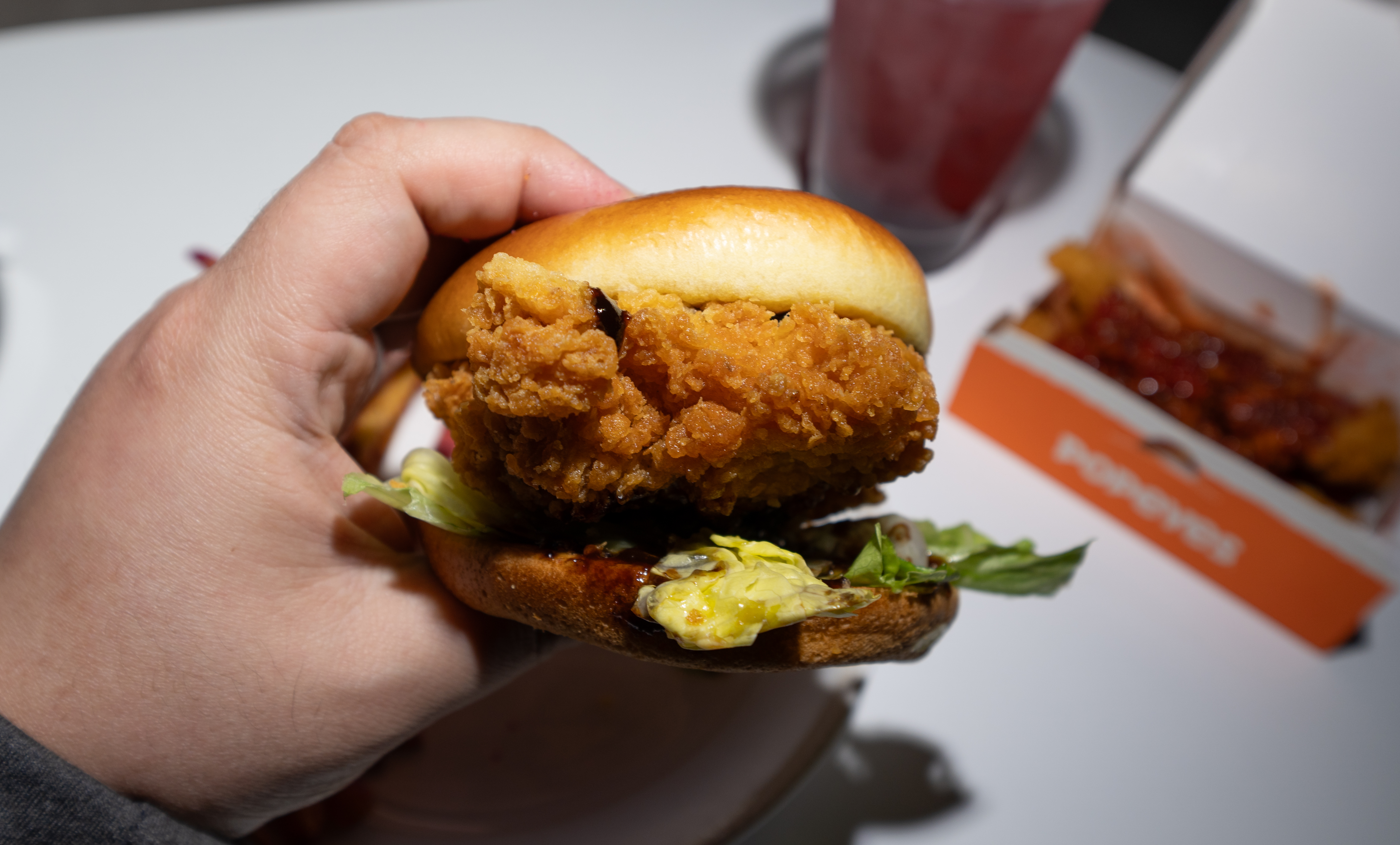 파파이스 공포의 할로윈 만찬의 루이블랙버거는 위와 같이 생겼습니다. 두툼한 치킨패티 위로 바비큐 소스가 얹어져 맛이 나쁘지 않았는데, 저는 개인적으로 야먹자 유튜브 촬영용을 제외하면 식당에서 기본 메뉴를 주문하는 편이라 그냥 쏘쏘 한 편이었습니다.