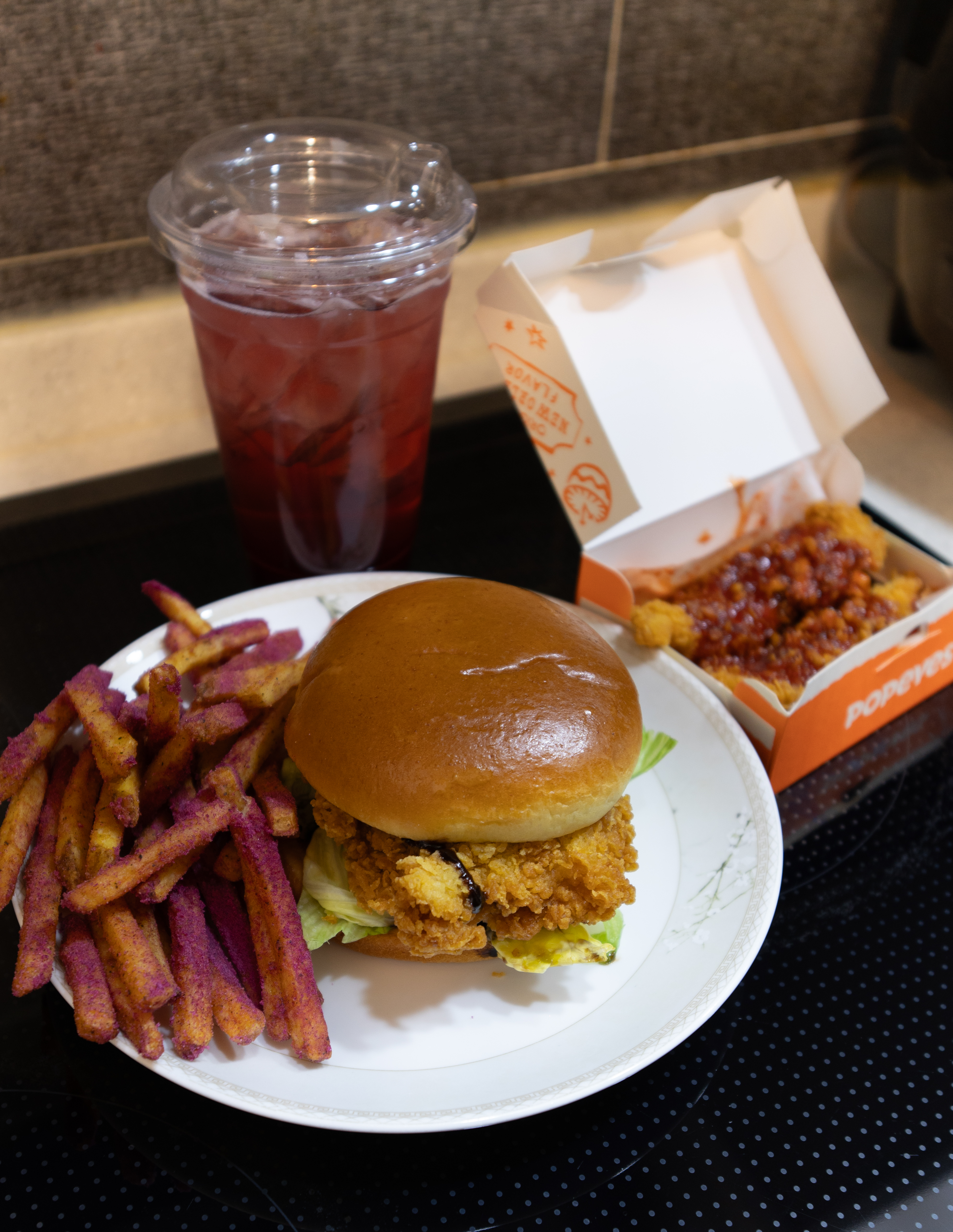 파파이스의 할로윈 세트(공포의 할로윈 만찬)은 루이블랙버거와 달콤순살양념치킨 그리고 미스터리포테이토, 블러디에이드 로 구성되어 있었습니다. 사실 이 메뉴를 주문한 가장 큰 요인은 미스터리 포테이토인데, 사진 속 형광빛의 감자튀김이 아니라 그냥 케이준 감자튀김에 고구마 시즈닝을 뿌린 메뉴더라고요. 다음부턴 호기심 갖지 말고 그냥 기본 메뉴를 먹으려고 합니다.