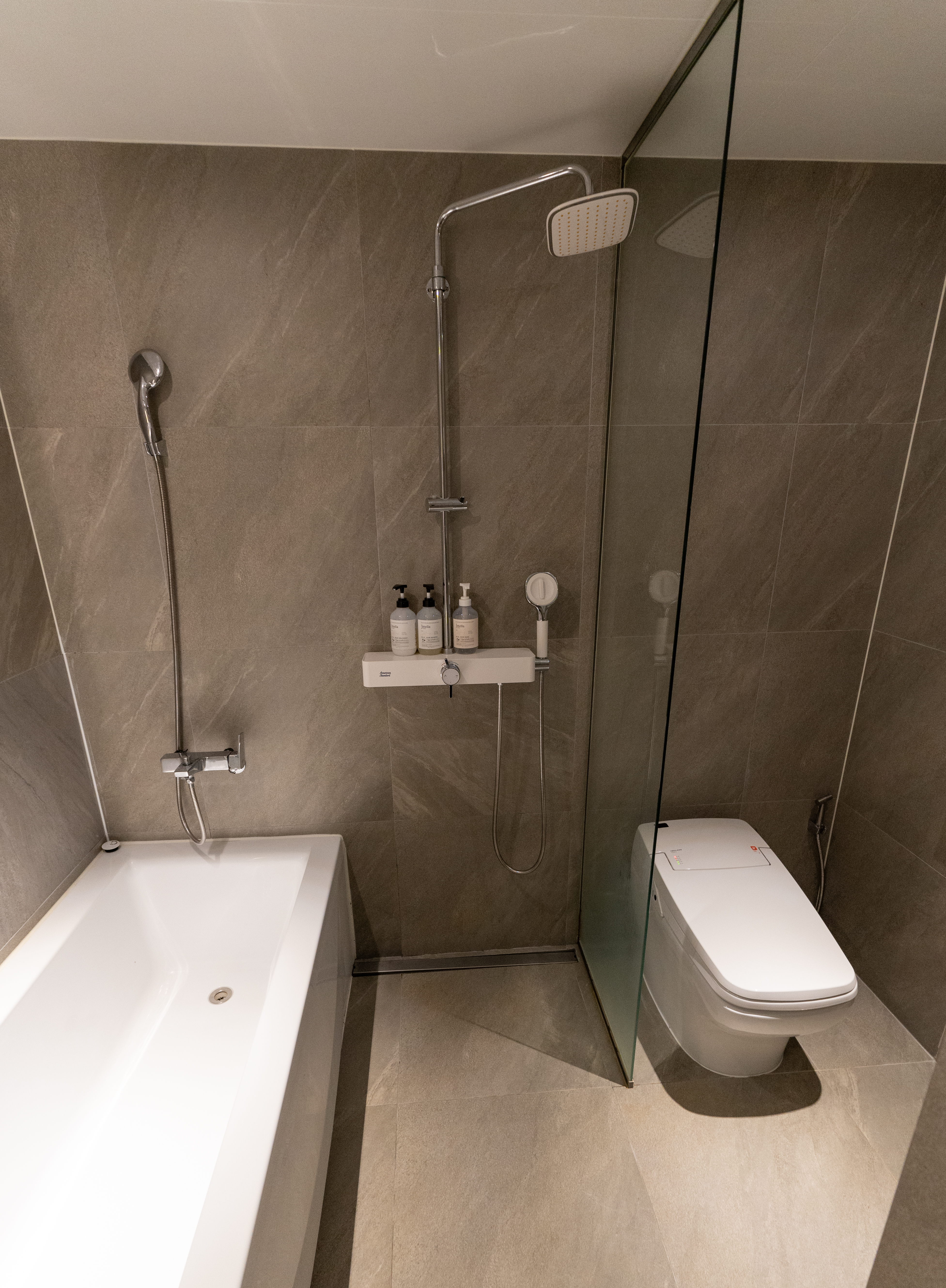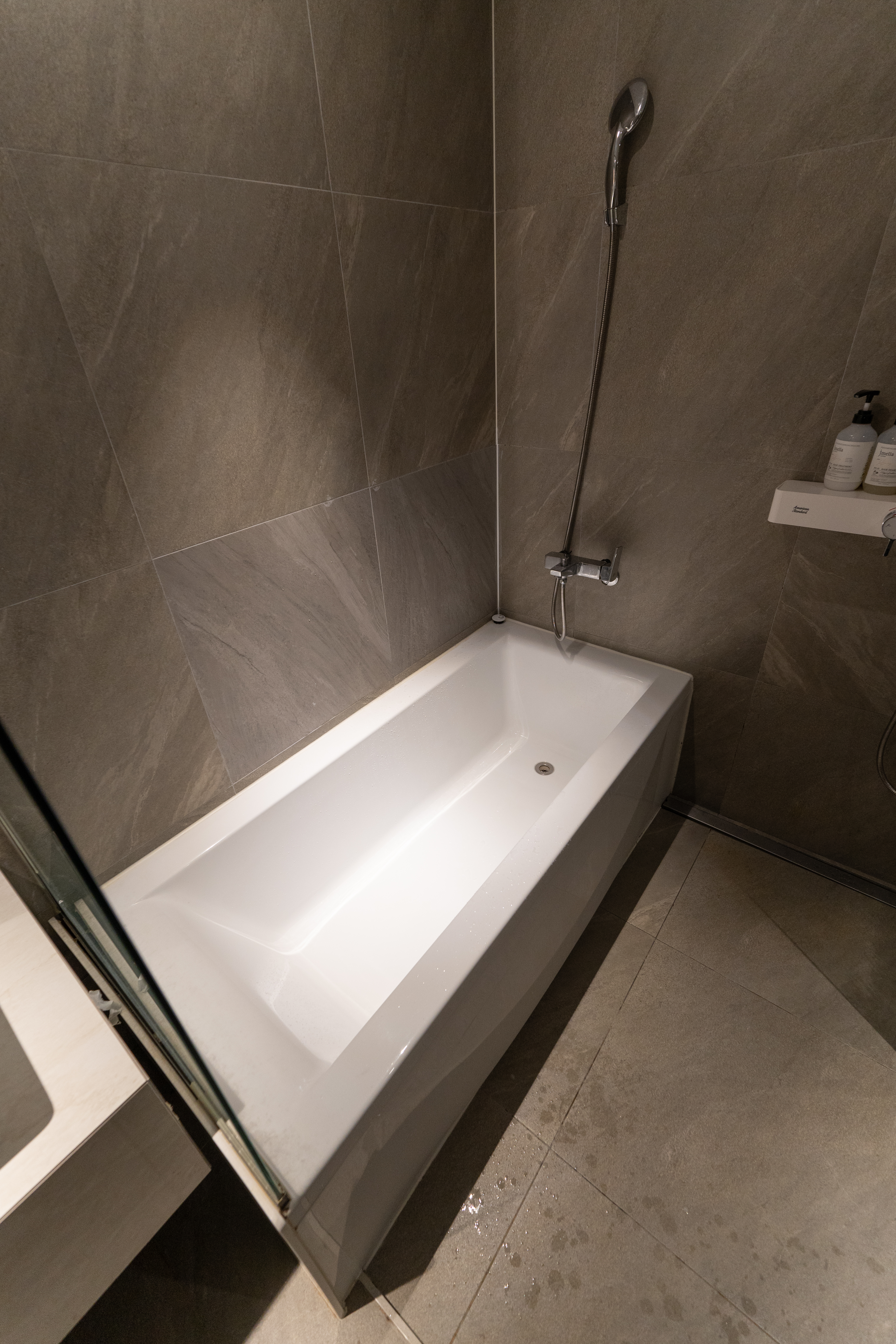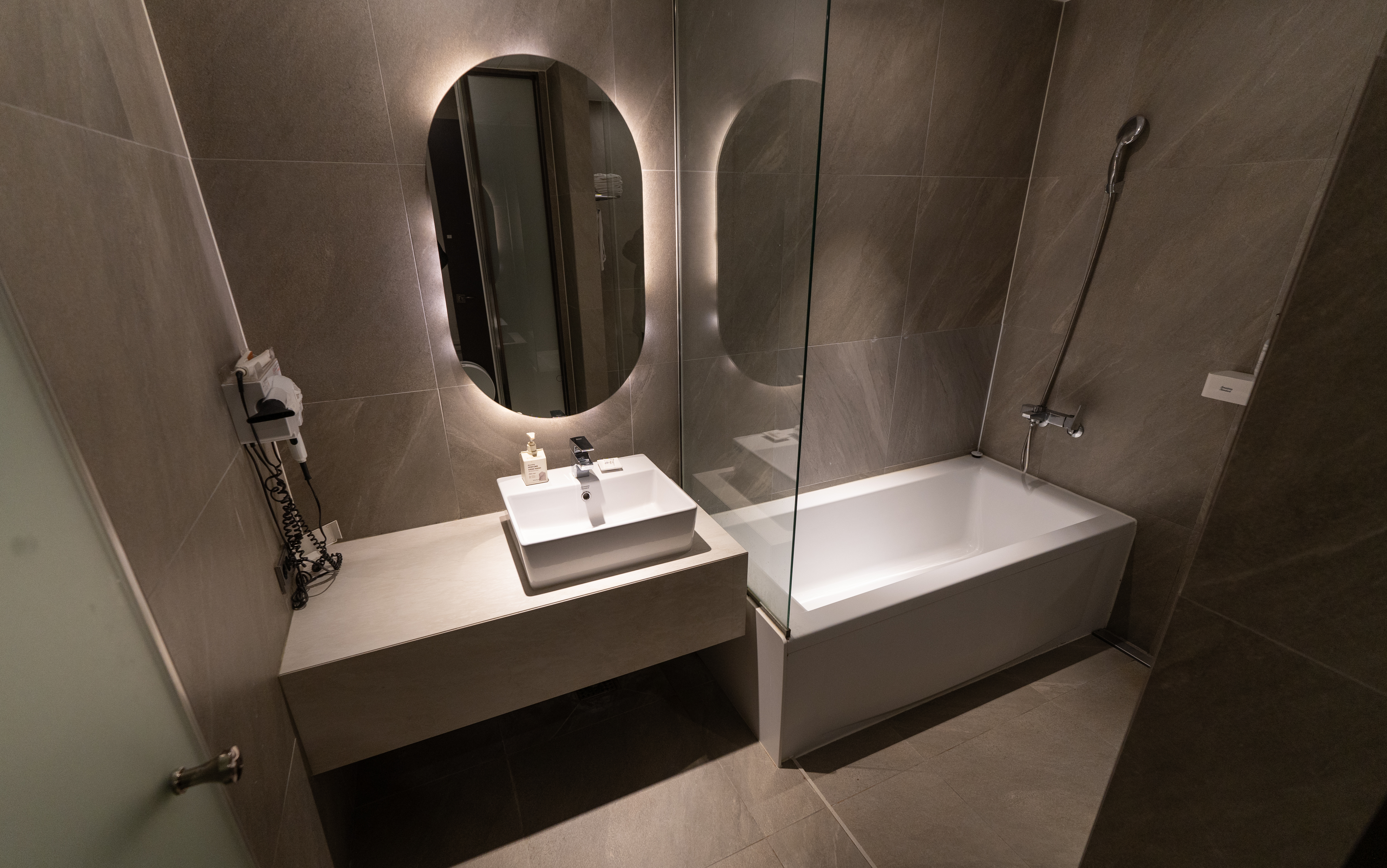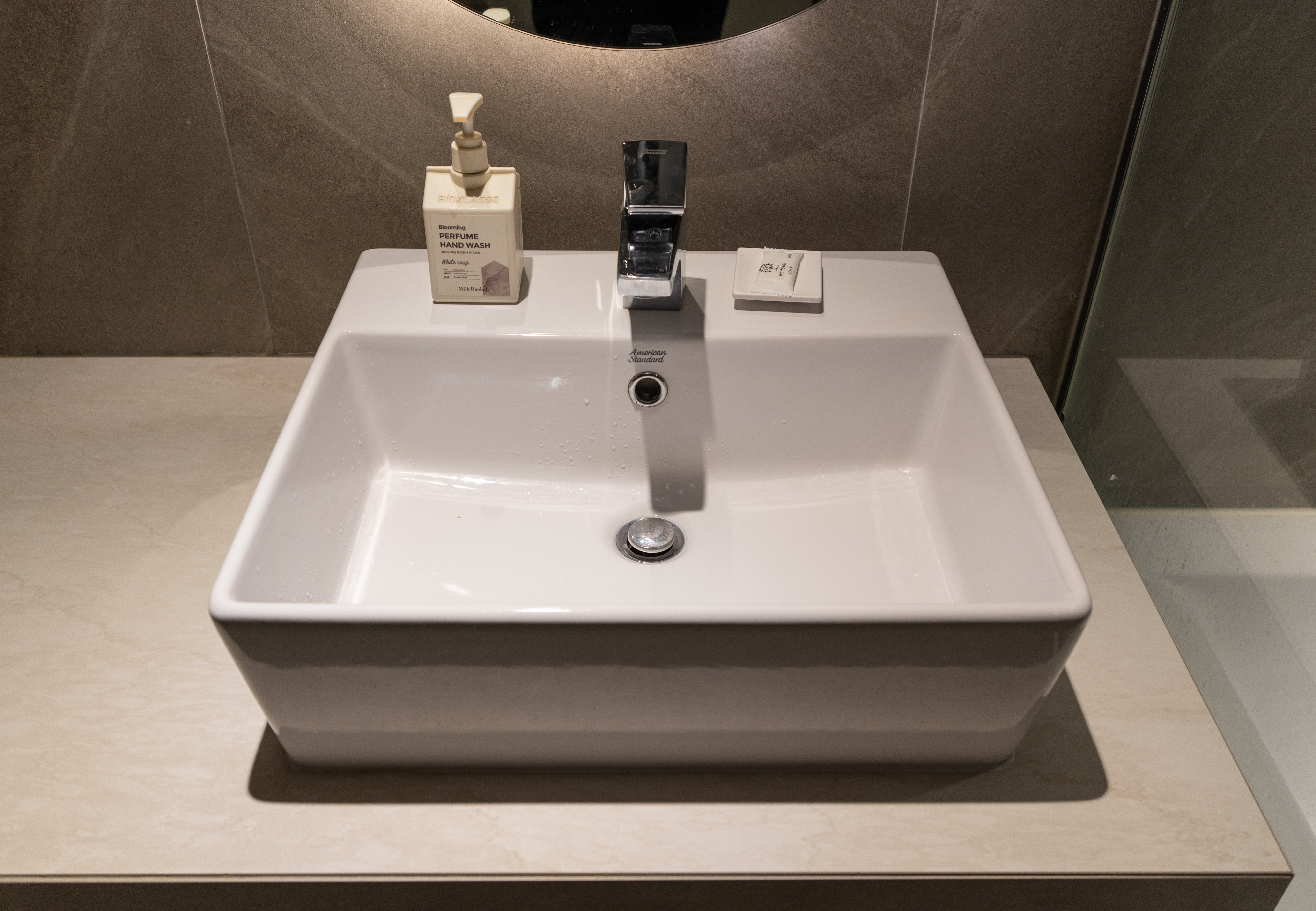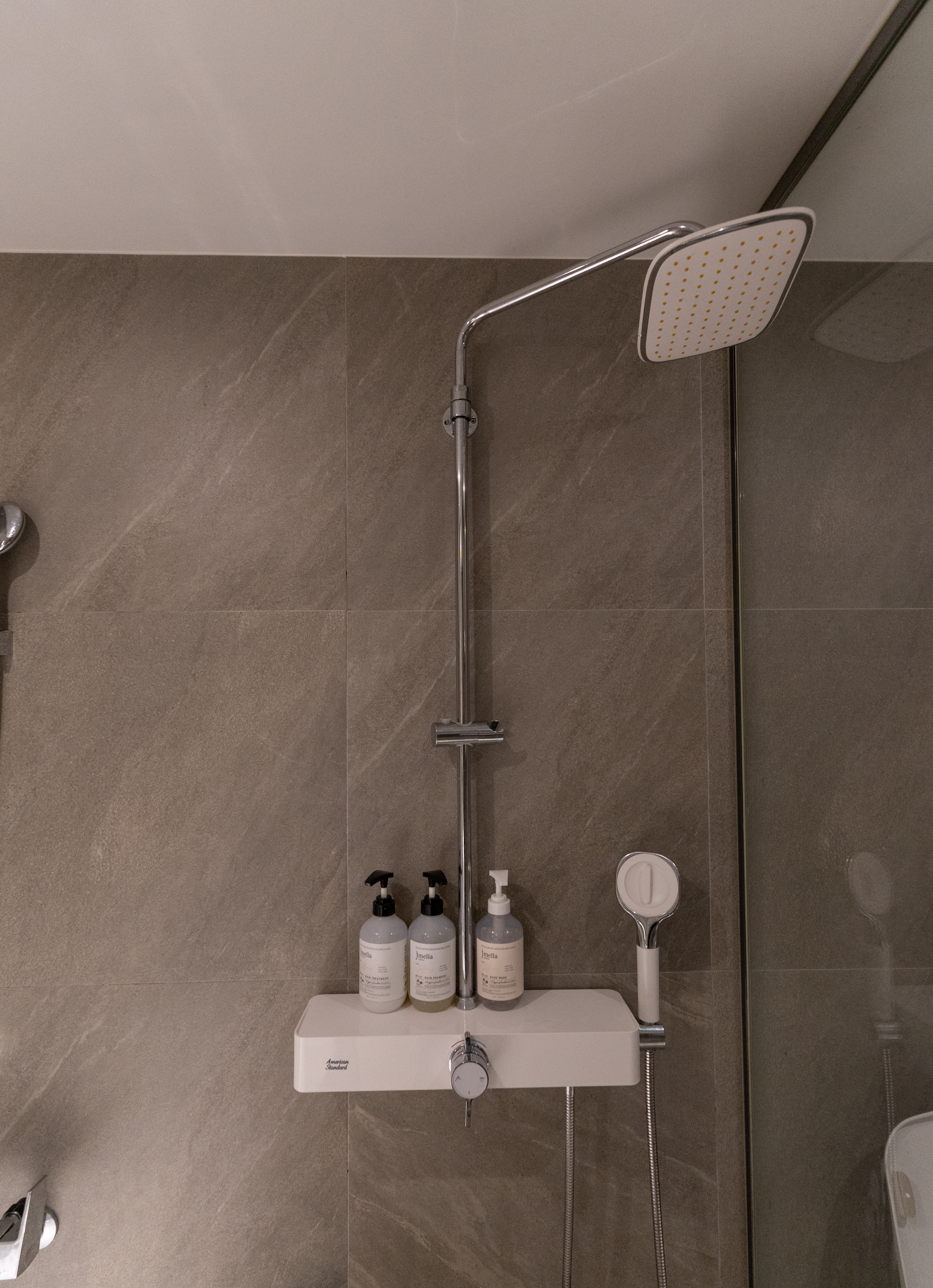 아뮤즈 호텔의 욕실은 위와같이 생겼습니다. 세면대에 핸드워시와 비누가 있었고, 트리트먼트, 샴푸, 바디워시, 수건이 있었습니다. 욕실도 전체적으로 분위기가 깔끔하고 좋았습니다.