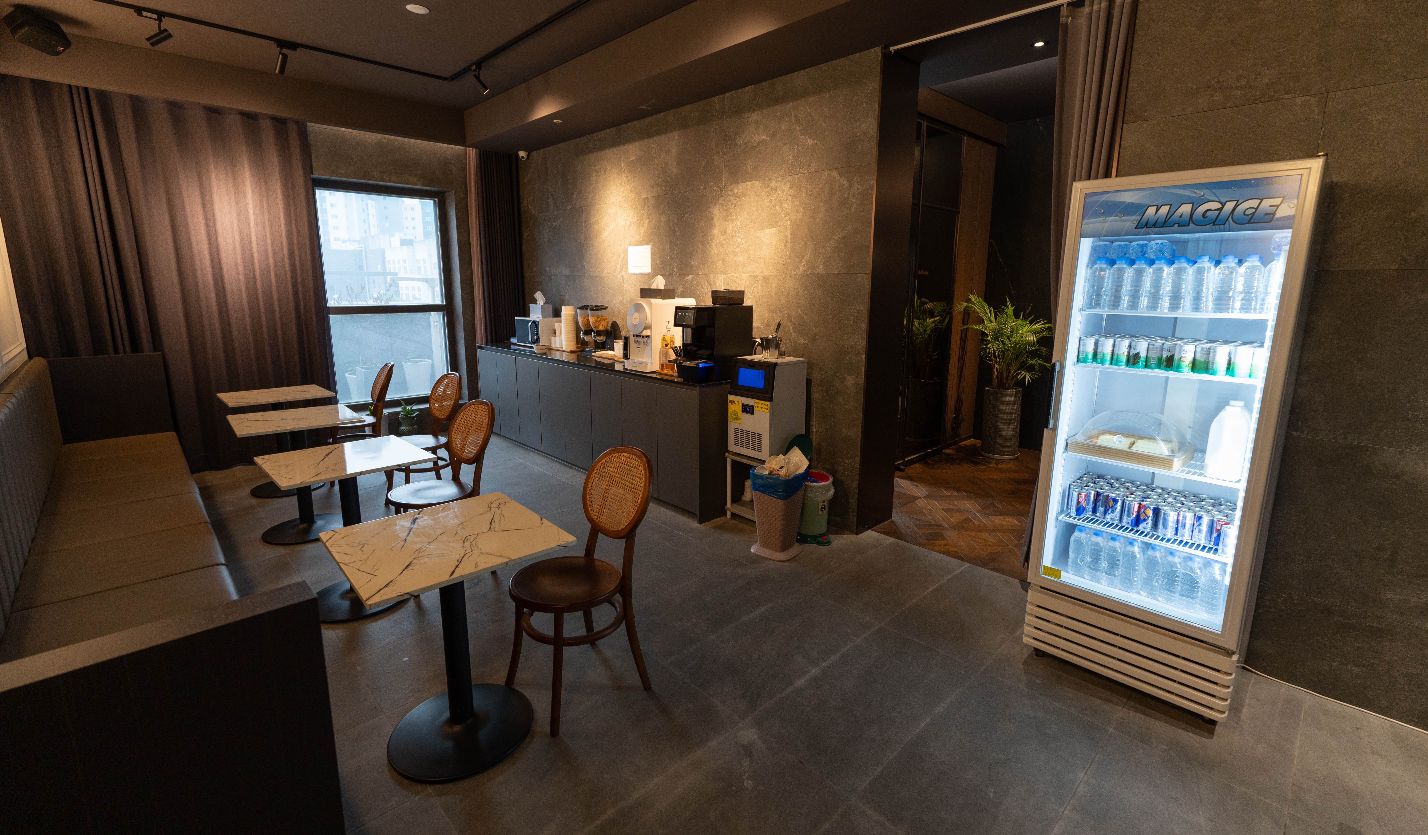 김포 아뮤즈호텔의 로비는 위와 같이 생겼고, 체크인 시 차량등록을 하시면 무료주차를 이용할 수 있었습니다. 같은 7층에 카페테리아도 있었는데, 카페테리아도 깔끔하게 잘 되어있더라고요.