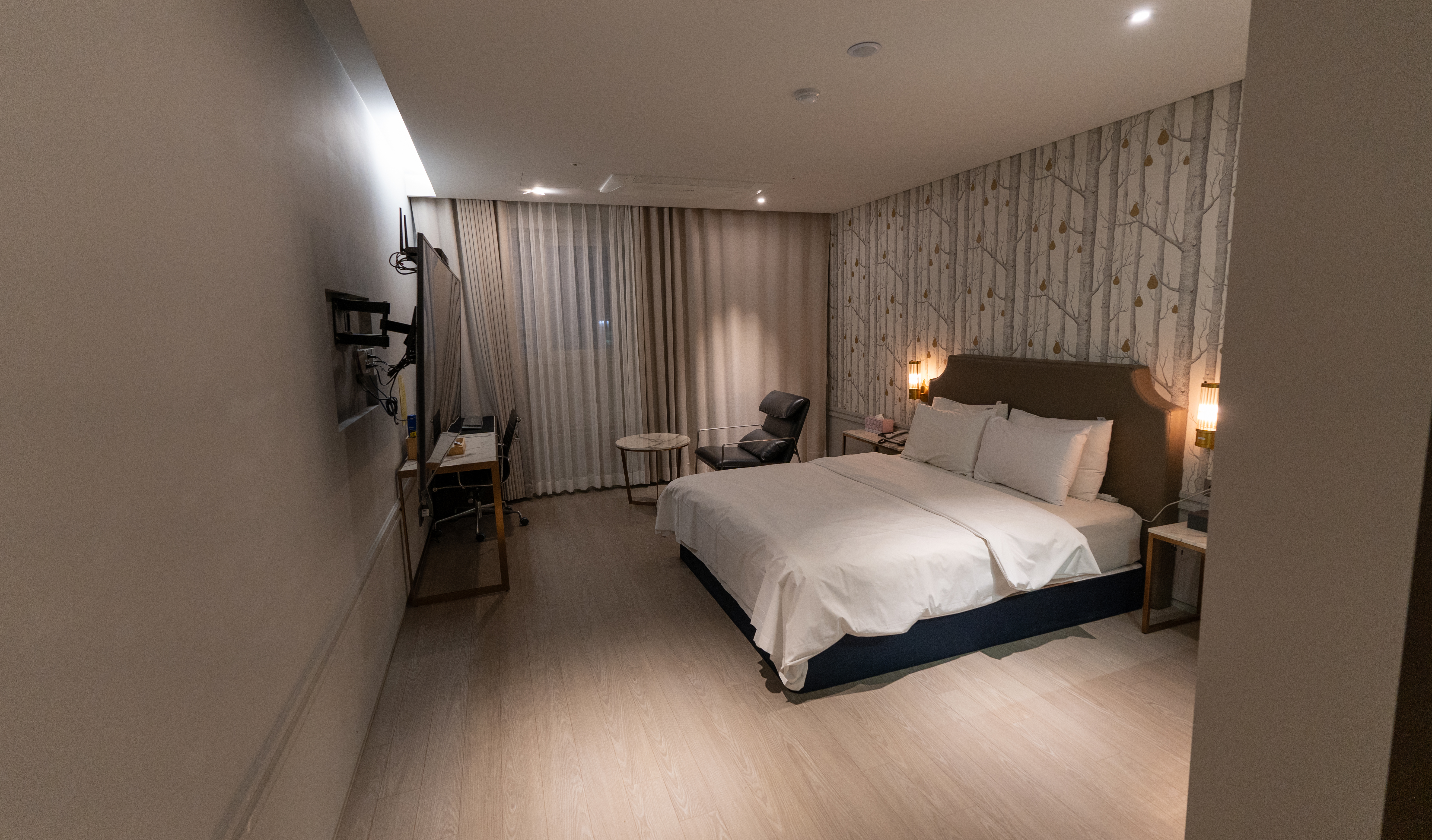 김포 아뮤즈 호텔의 침실은 위와같았습니다. 제가 이용한 객실은 디럭스 더블(Deluxe Double)로 꽤 넓은 객실에 침대도 커서 편하게 휴식할 수 있었습니다.