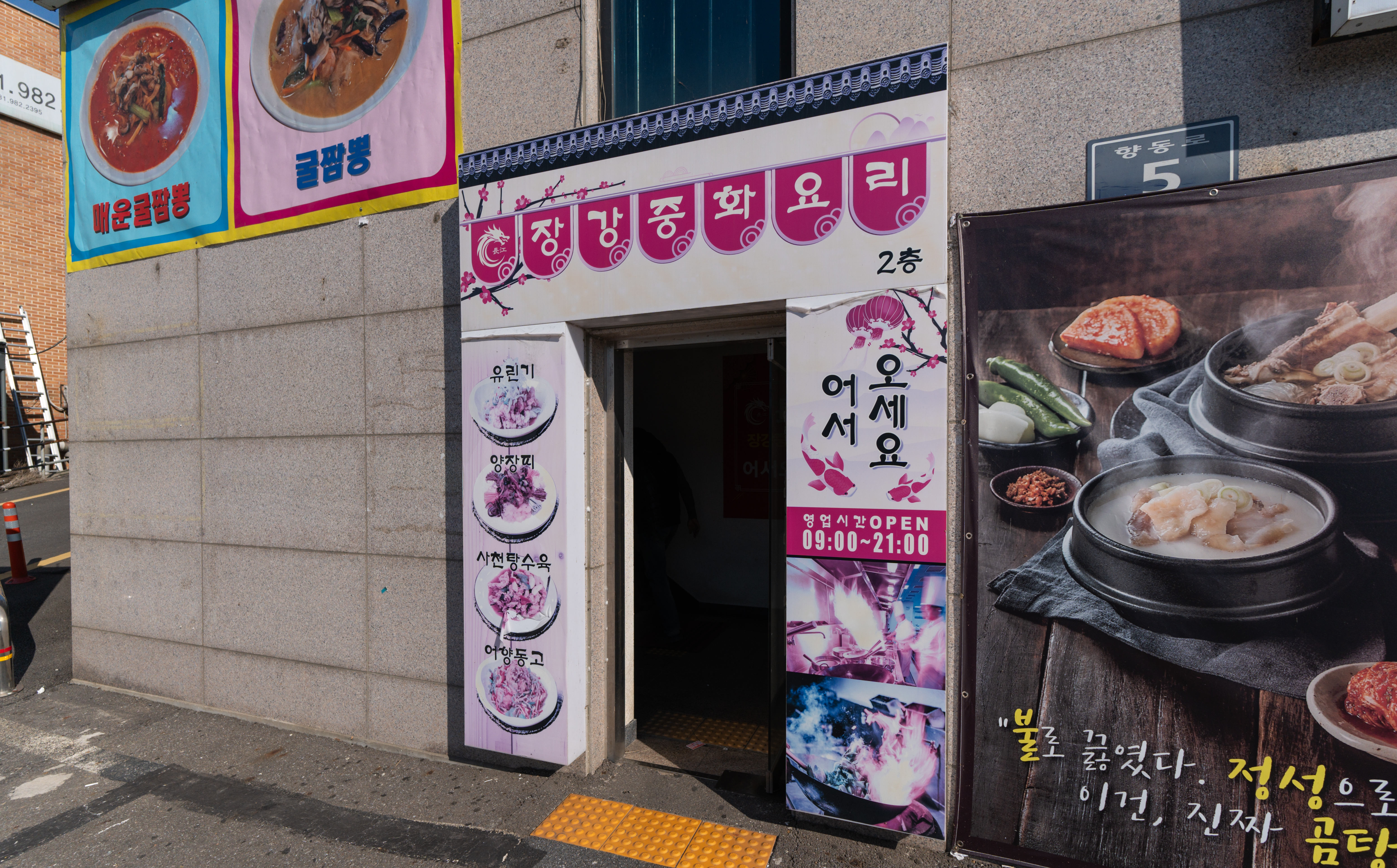 장강은 경기 김포시 양촌읍 대포리 36, 2층에 위치한 가게로, 주차장은 넓은 편이었고, 가게 앞 뒷면으로 주차공간이 있었습니다. 영업시간은 09:00-21:00 까지였고, 차량 이용 시 가게에서 주차인증을 해줘야 무료주차가 가능했습니다.