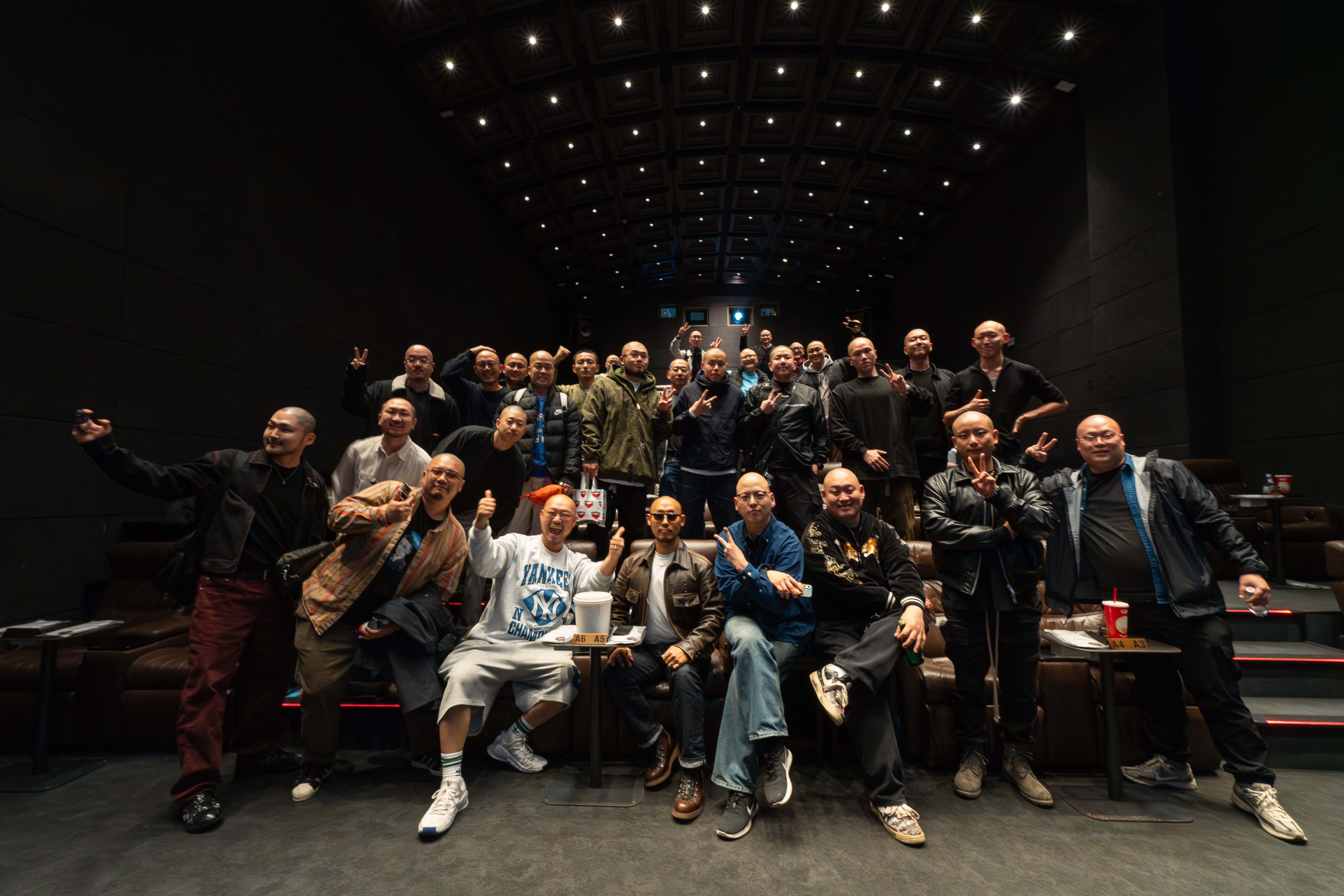 음료를 고른뒤 상영관 안으로 입장했습니다. 여기저기 흩어져있던 민머리 동지들이 한곳에 모이니까 더 장관을(?) 이루더라고요. 난생 처음보는 신기한 광경에 각자 위치에서 사진이랑 영상으로 기념을 하였습니다.