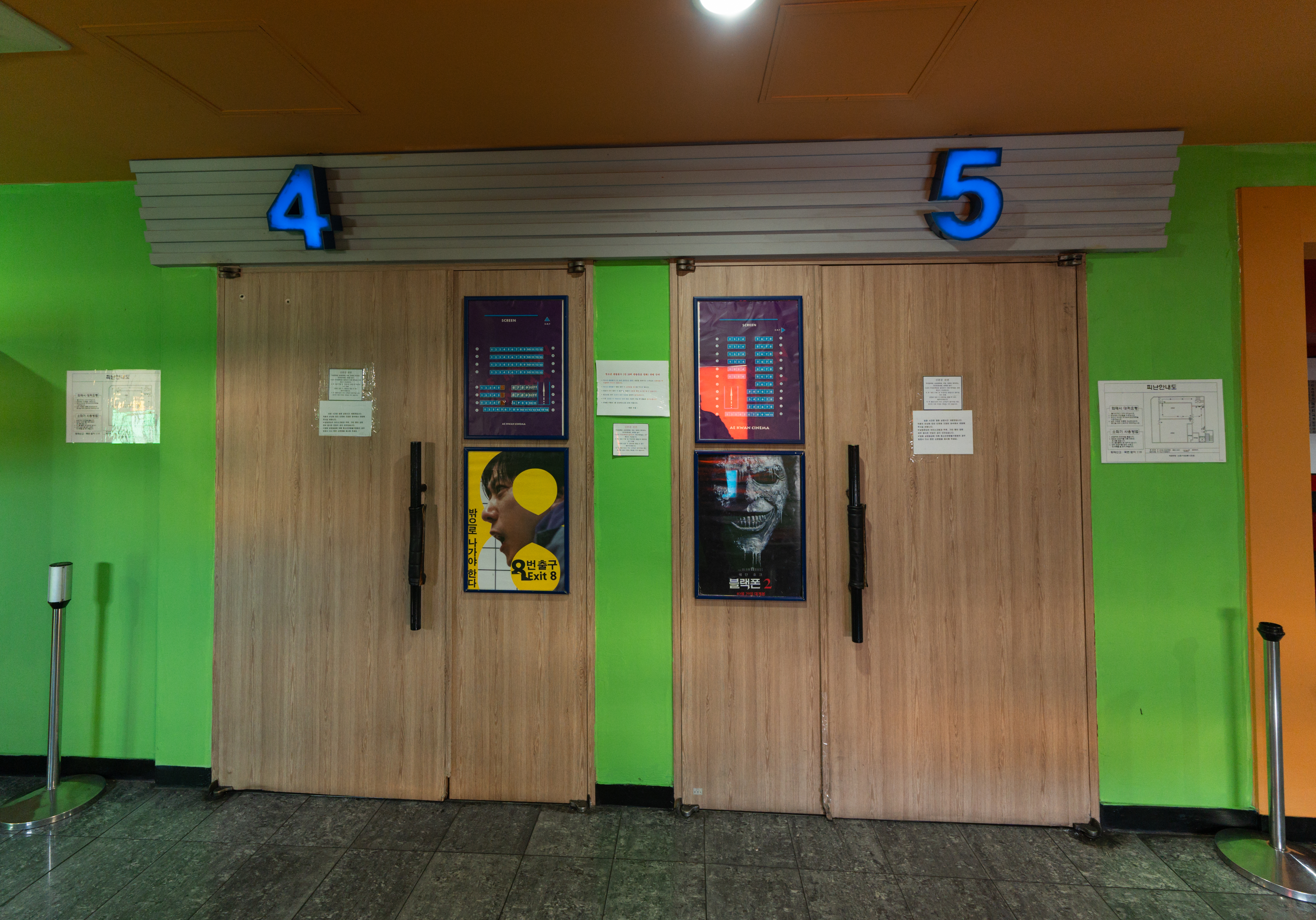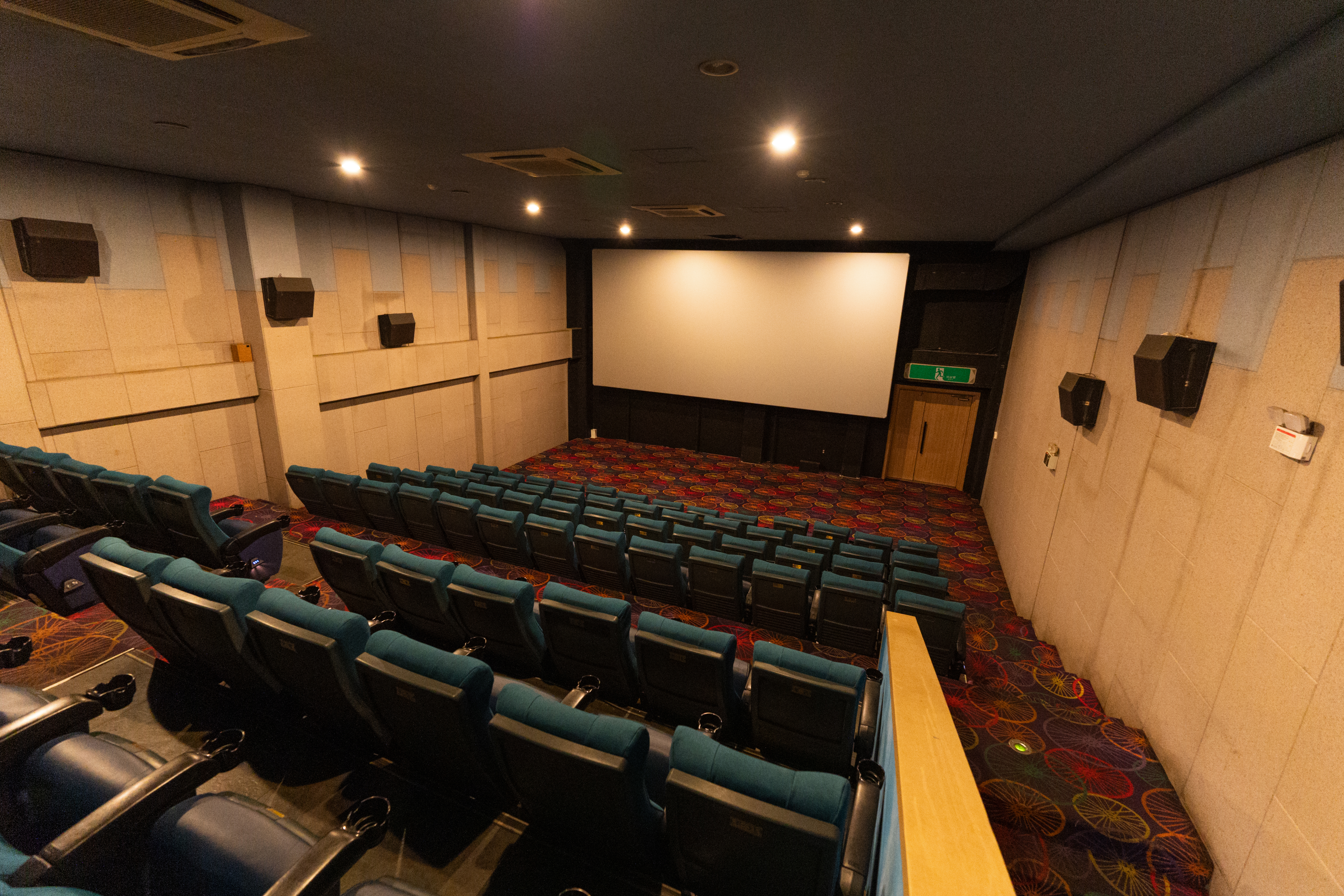 상영관 내부도 요즘 현대적인 영화관에 비하면 연식이 많이 느껴집니다. 노란 조명에 스피커에서부터 영사기, 스크린, 좌석, 카펫 어느 하나 세월이 묻어나지 않는 곳이 없었는데요, 저는 오히려 관객이 많은 것보다 전세 낸 듯 조용한 상영관 분위기 덕분에 영화에 집중해서 볼 수 있어서 좋았고, 요즘 보이는 현대식 영화관에 비해 스크린도 약간 작고 어두운 느낌이 있었지만, 나름 레트로한 분위기도 좋았고 음량도 빵빵하게 잘 나와서 괜찮게 관람할 수 있었습니다.