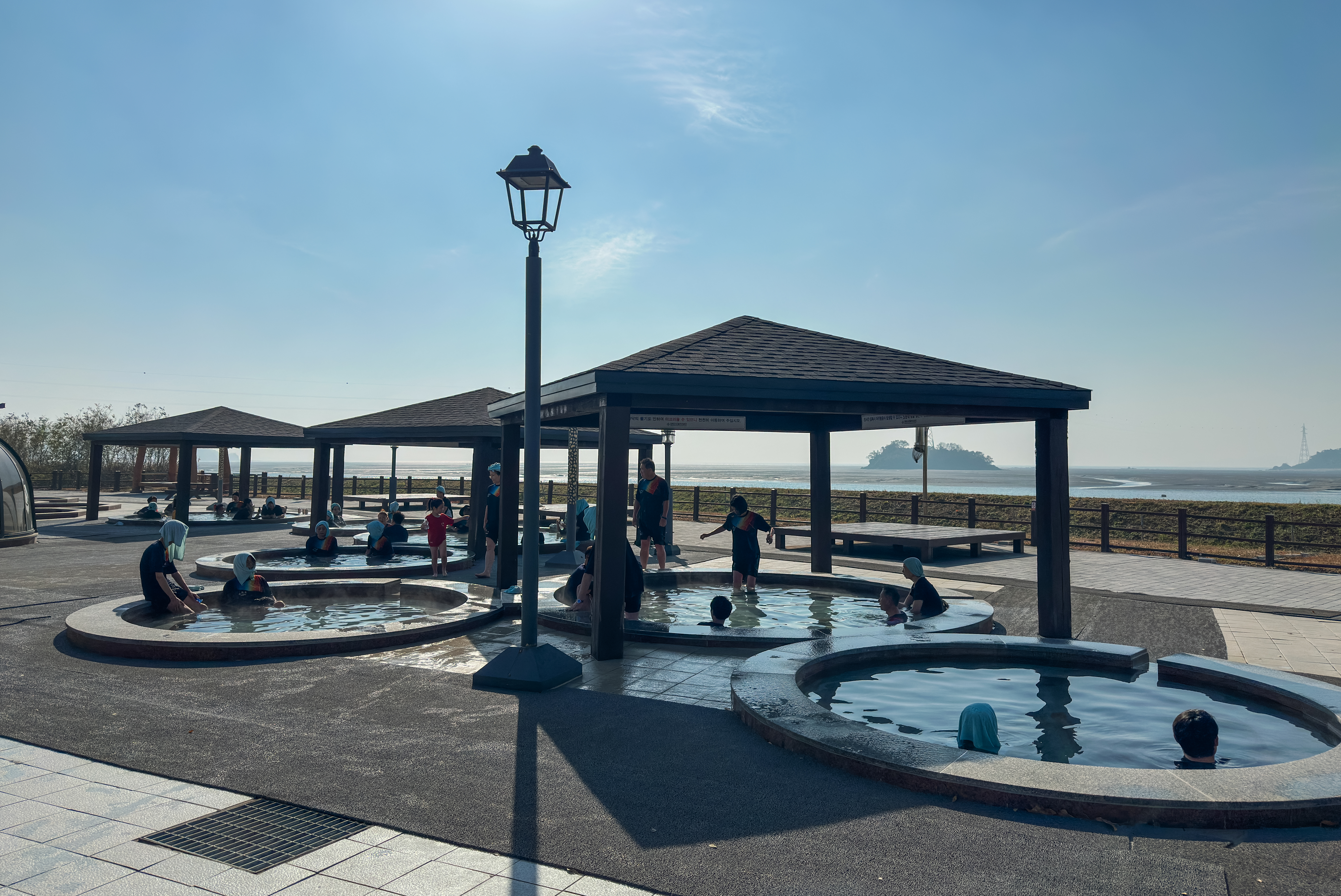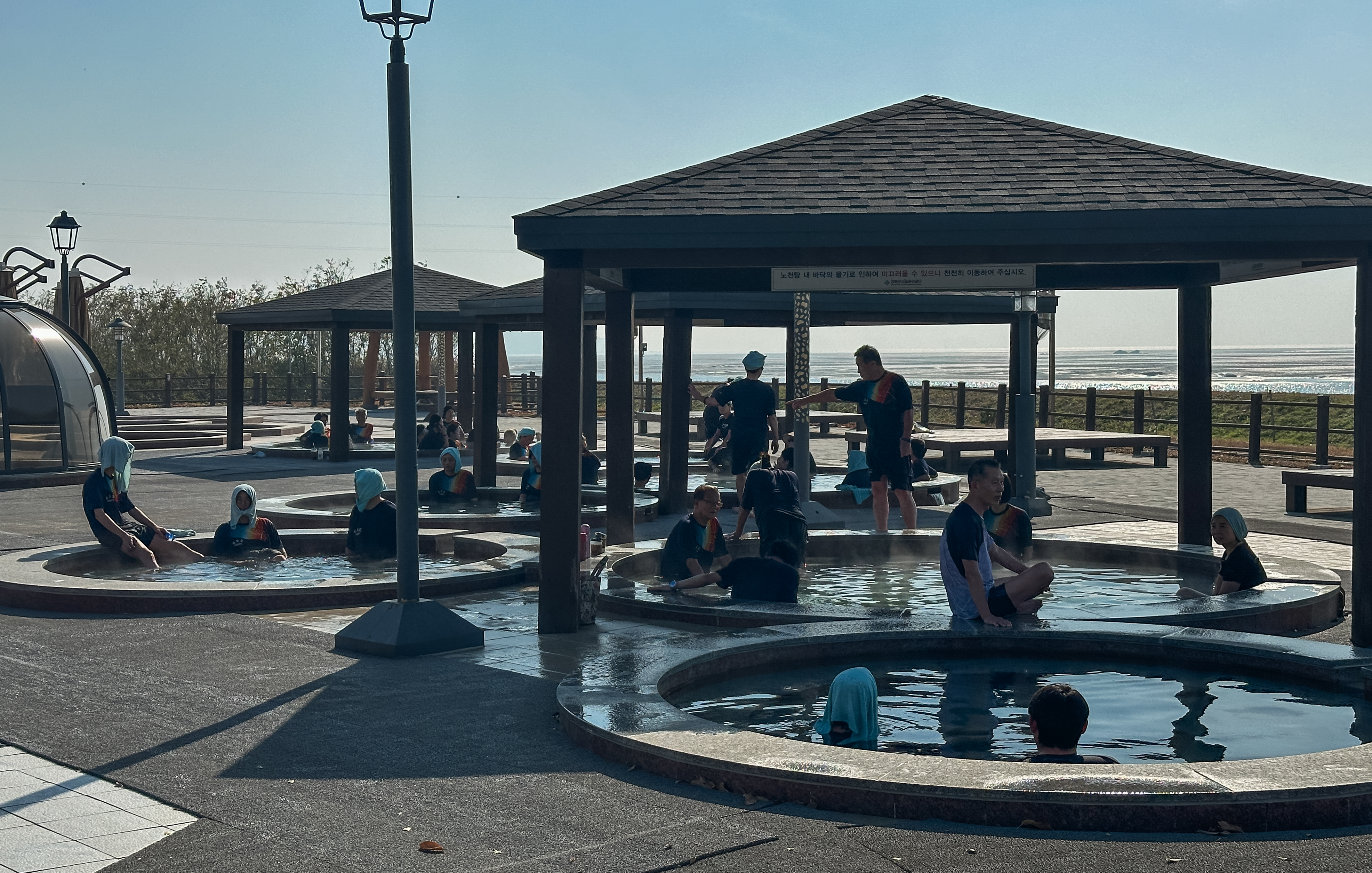 노천탕은 앞에서도 언급하였지만, 남녀노소 스파복을 따로 입고 입장하기 때문에 사진 촬영도 하고, 풍경도 카메라에 담아보았습니다. 처음에 입욕을 하면 처음엔 좀 따가운 느낌이 있었는데요. 조금 있다보면 적응해서 괜찮더라고요. 다만, 이 온천수에 염분이 많이 있다 보니 녹이 날 수 있는 제품은 가급적이면 캐비닛에 보관하고 들어가시는 것을 추천드립니다.