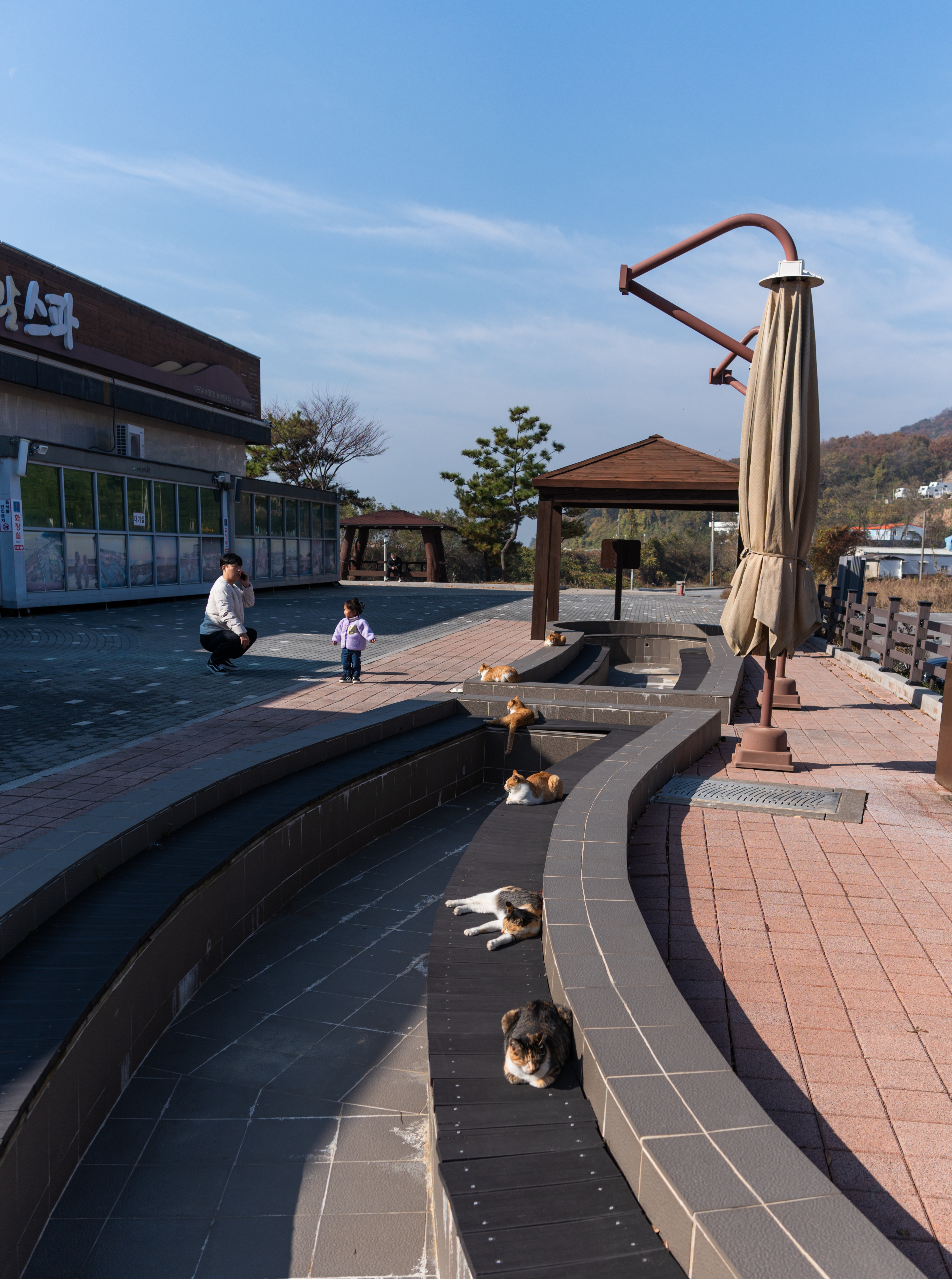 석모도 미네랄 온천은 인천 강화군 삼산면 매음리 645-27 에 위치해 있습니다. 이용시간은 09:00-17:00 까지이며, 입장 마감은 16:00 라고 합니다. 이곳은 매주 화요일은 정기 휴장이라고 합니다. 이용에 참고하시기 바랍니다. 주차장은 많이 넓어서 따로 주차에 스트레스를 받을 일은 없어 보입니다. 온천 입구에는 고양이들이 나란히 모여 햇볕을 쬐고 있더라고요.