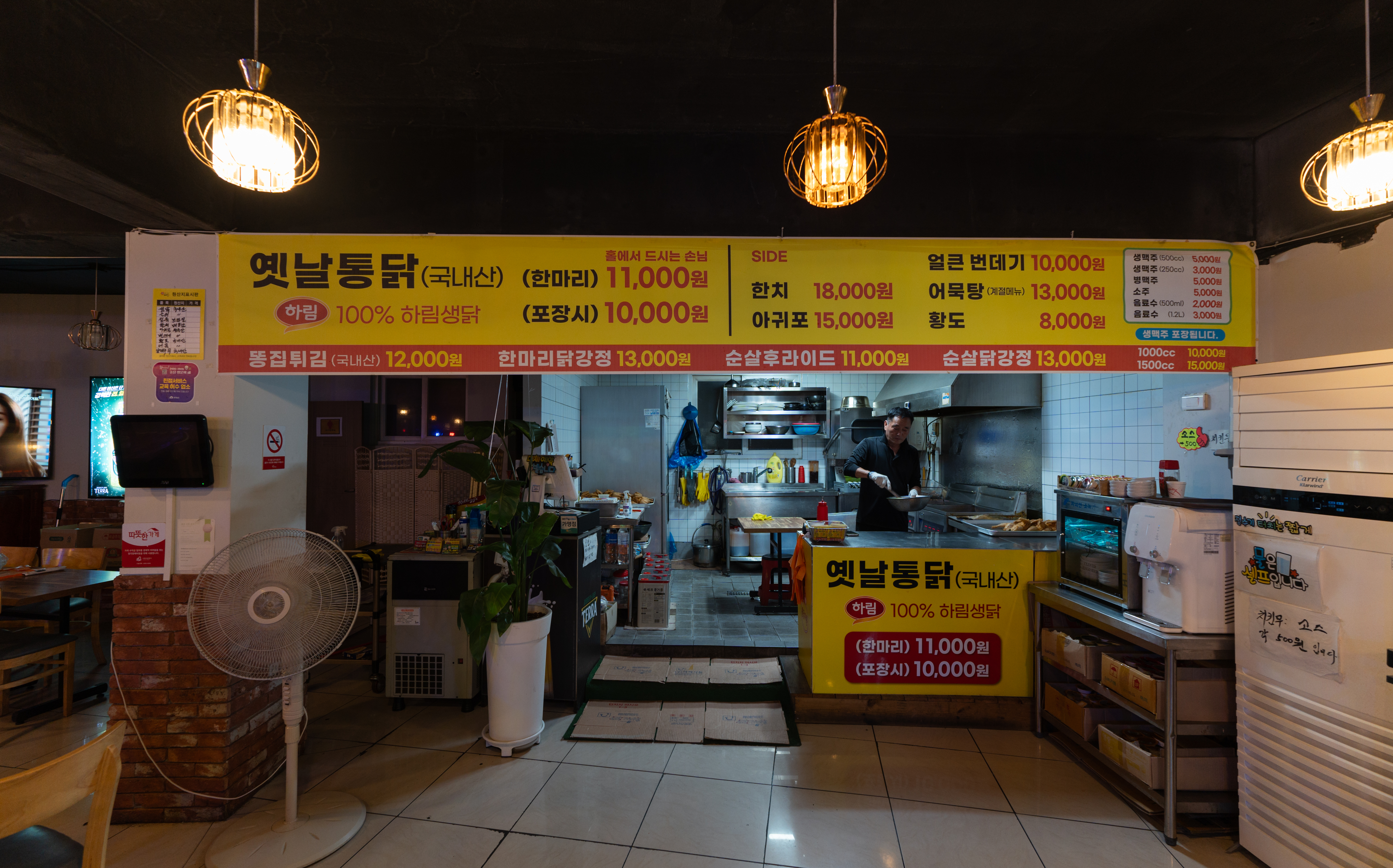 태안 옛날통닭은 충남 태안군 태안읍 남문리 574-8, 1층에 위치한 가게입니다. 가게 앞 도로는 불법 주정차 단속지역이라 인근 공영주차장에 주차하시는 것을 권장합니다. 공영주차장에 주차를 하고 가게에 방문했습니다.