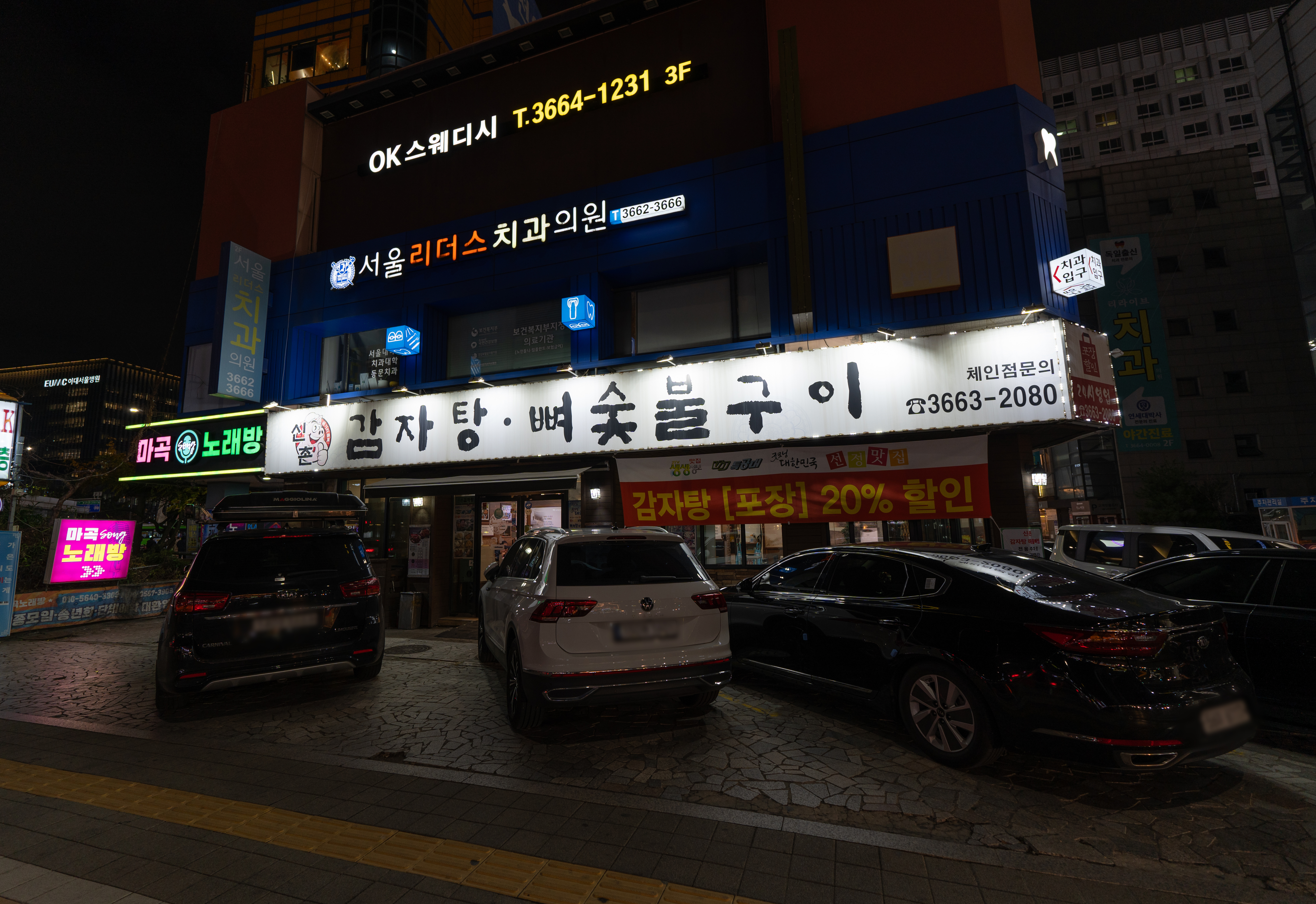신촌감자탕해물뼈찜은 서울 강서구 마곡동 723-1, 1층에 위치해 있었습니다. 차량은 가게가 위치한 건물을 둘러서 주차하고 있었습니다. 가게는 꽤 넓은 편이었고, 단체손님과 가족단위 손님이 많이 찾고 있었습니다.