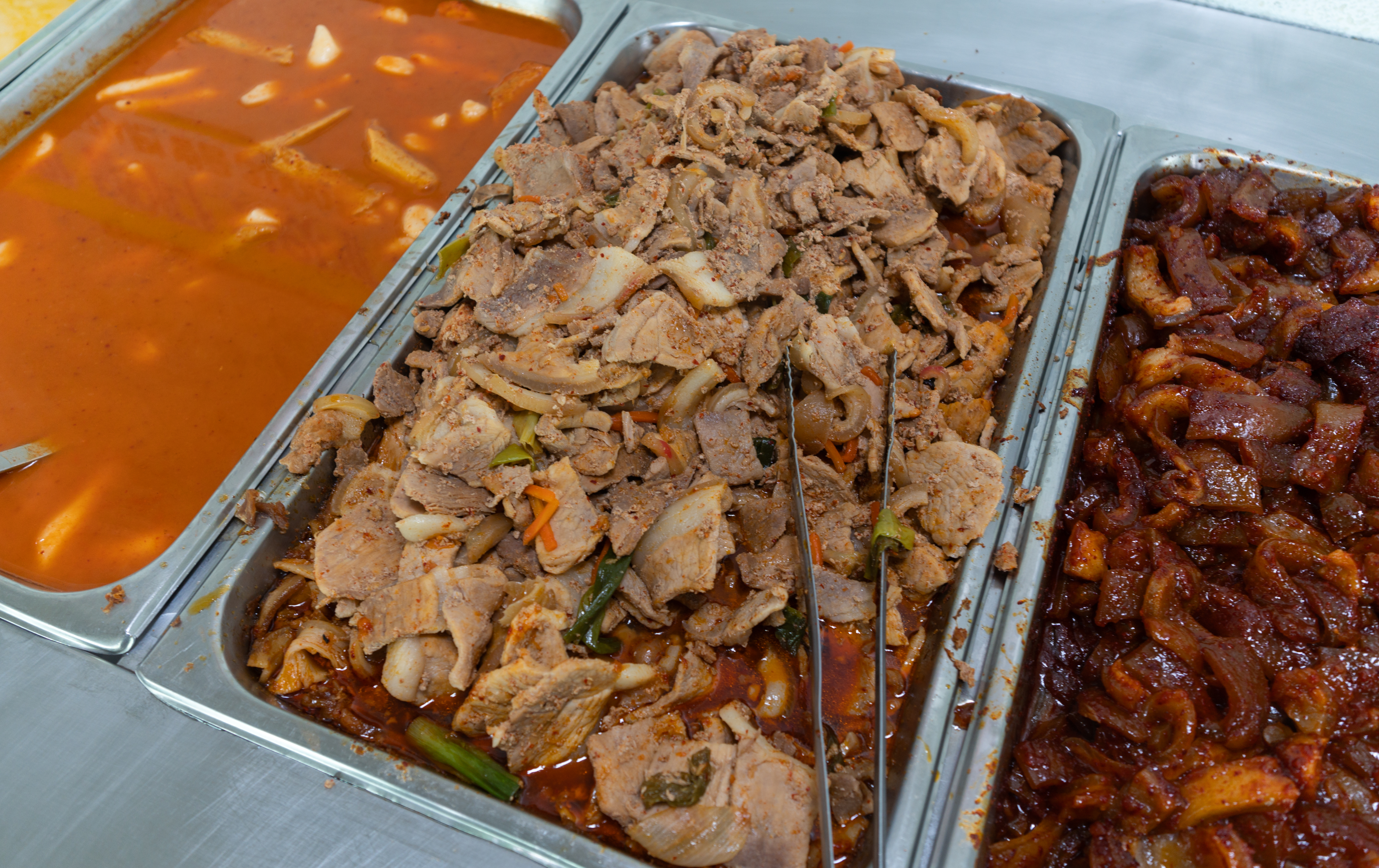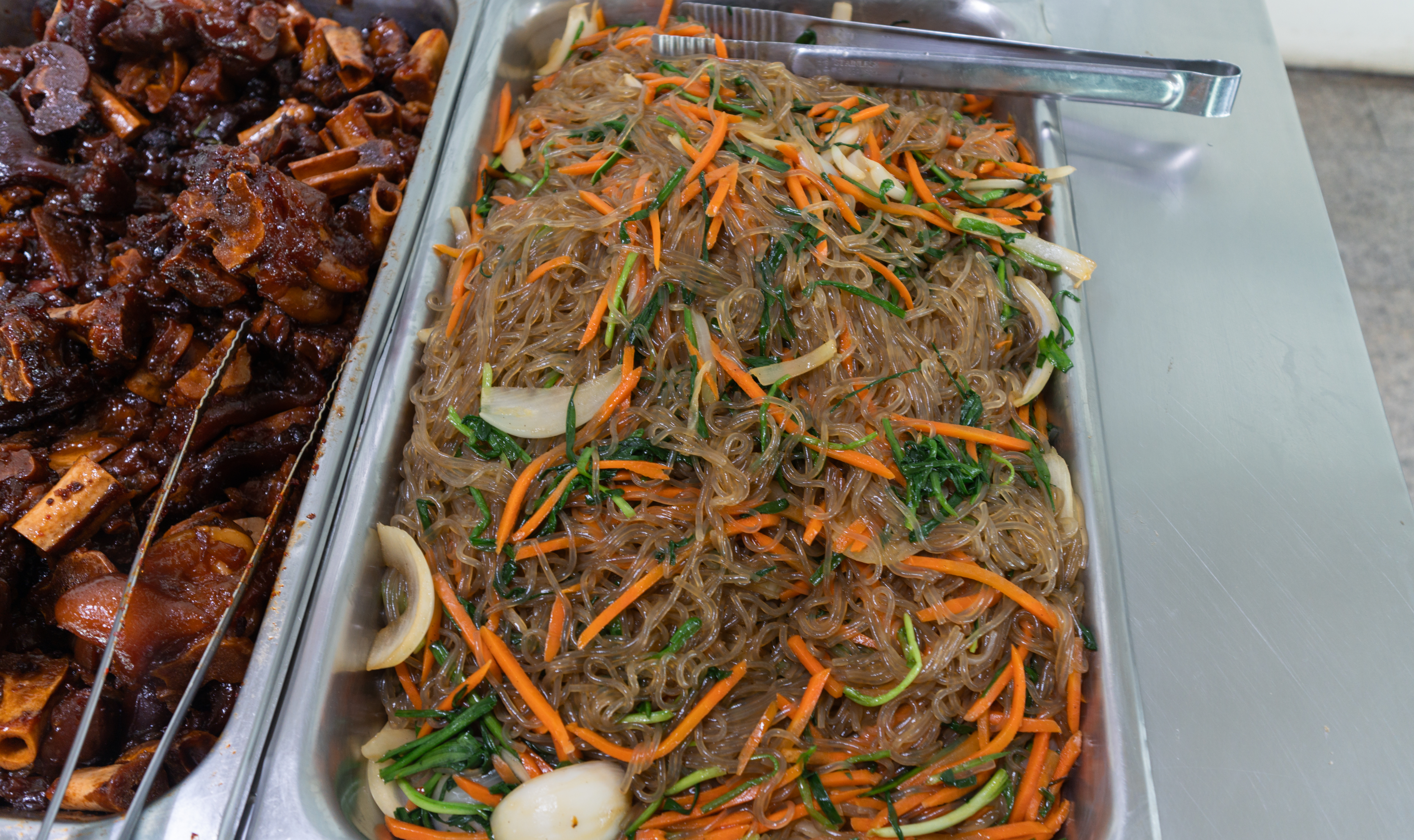 메인 요리라 볼 수 있는 메뉴들은 잡채, 족발, 껍데기, 제육볶음, 떡볶이, 호박죽, 순두부찌개(?)가 있었습니다. 백화산가든에 방문하는 대부분의 손님들은 제육볶음, 잡채, 족발, 껍데기를 먹는데요. 제육볶음은 생각보다 양념이 묽은 편이라 처음 드시는 분은 약간 밋밋하다고 느끼실 수도 있겠습니다.