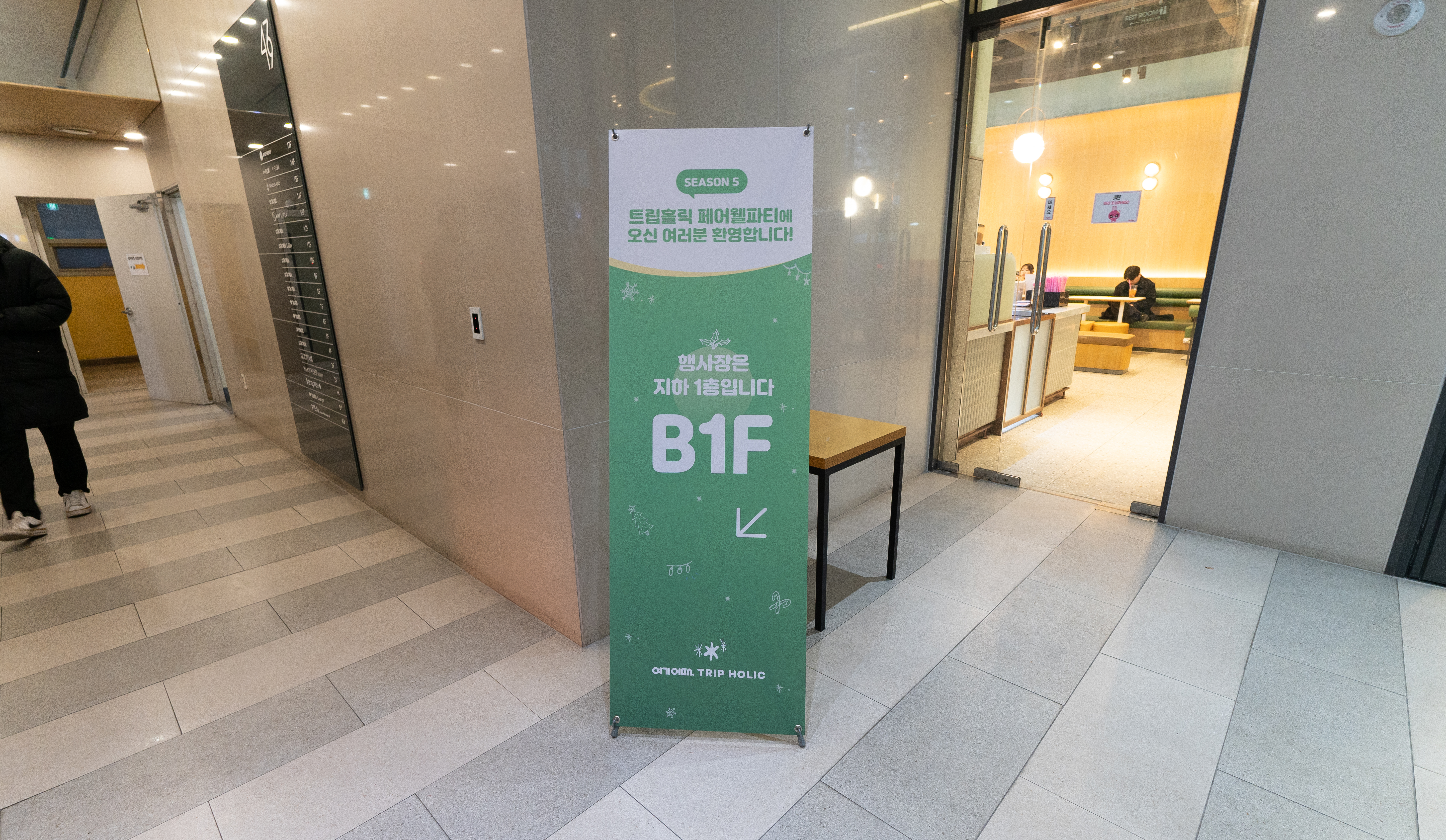 트립홀릭 페어웰 파티가 있는 삼성중앙역 여기어때 컴퍼니 B1 에 위치한 여기어때 라운지에 도착했습니다. 저는 집에서 느지막이 출발했는데도 20여분 정도밖에 안 걸려서 생각보다 일찍 도착했는데 아직 준비 중이었는지 대기실에서 기다렸다가 시간이 되어 안내를 따라 참석 등록을 했습니다.