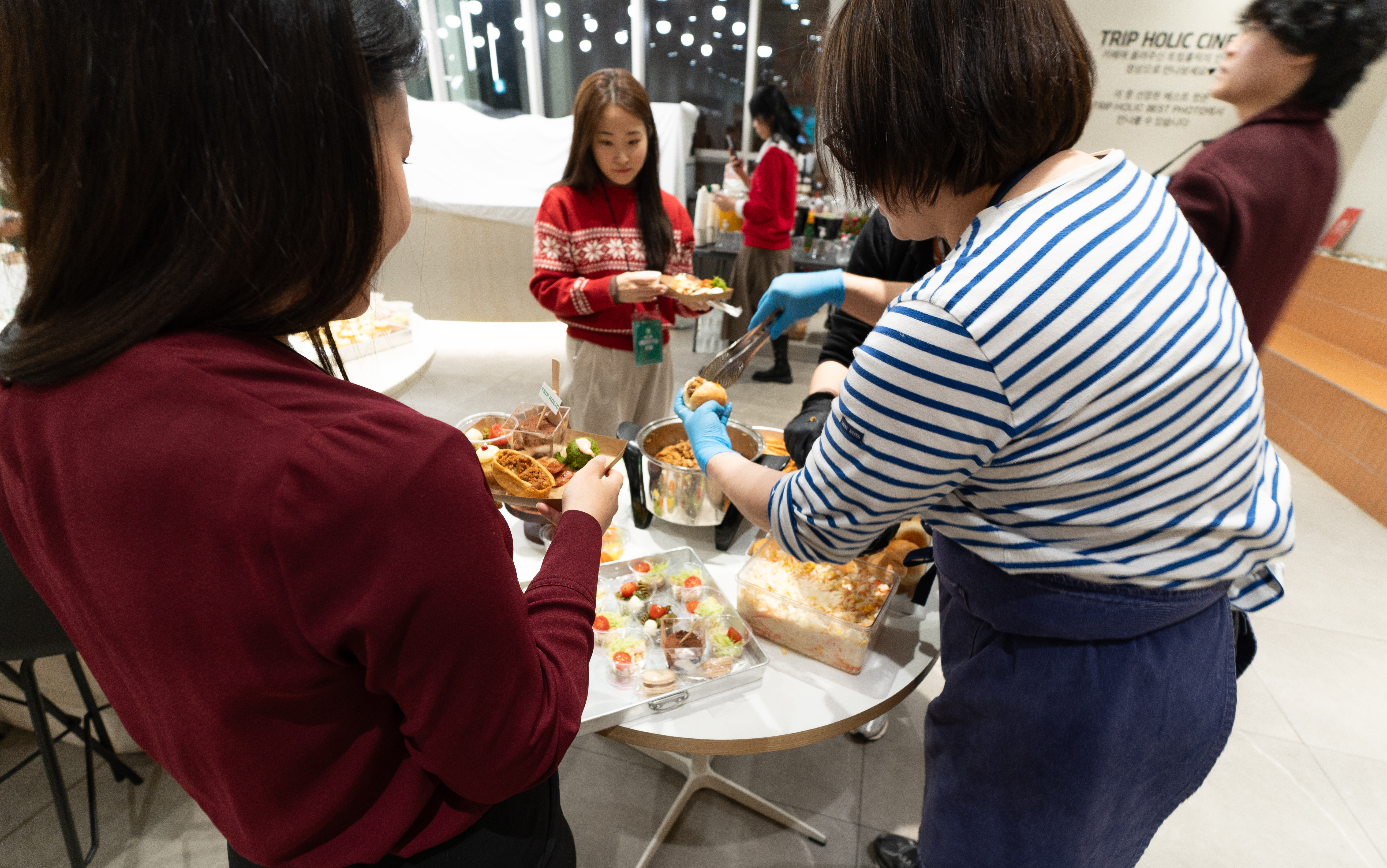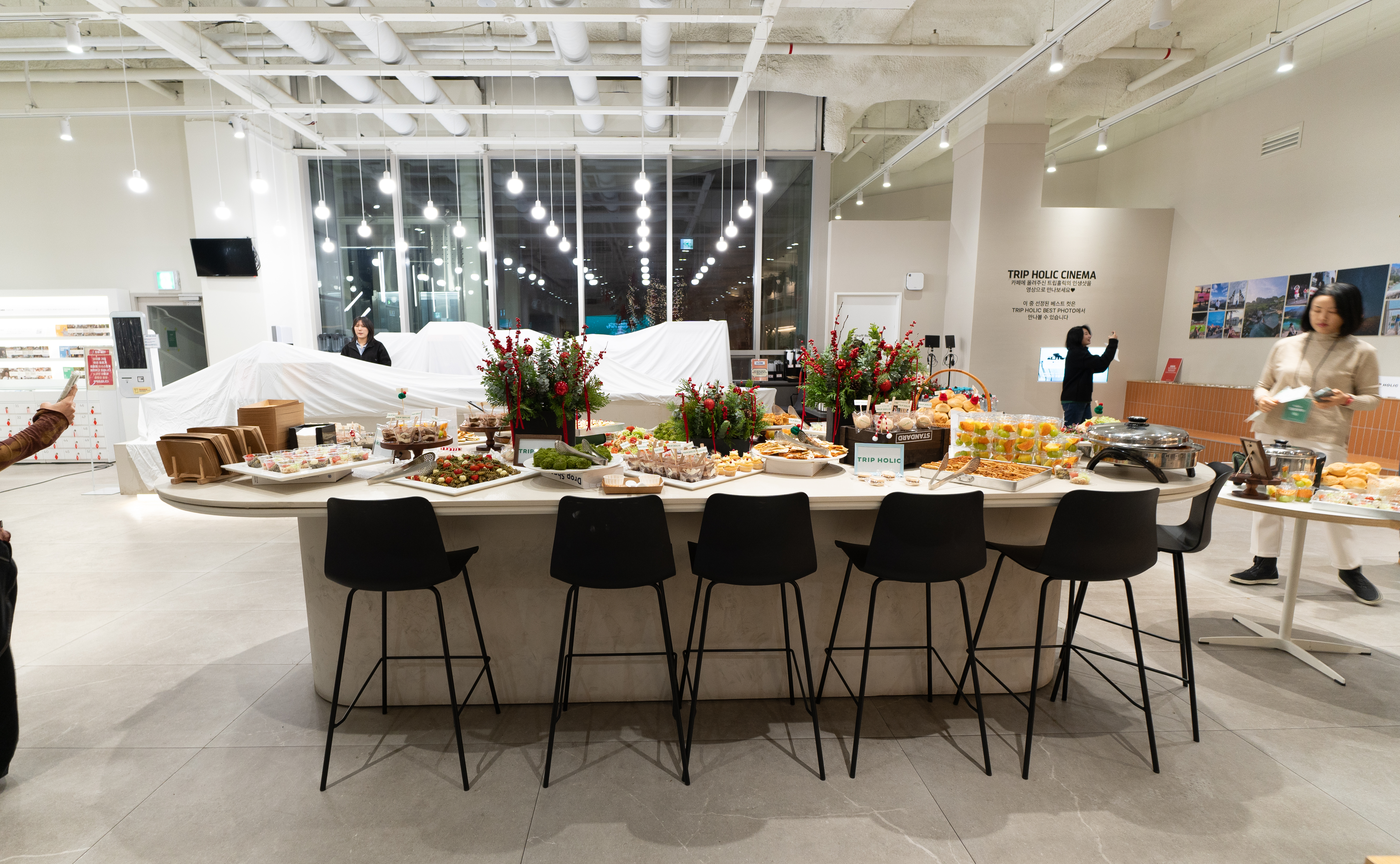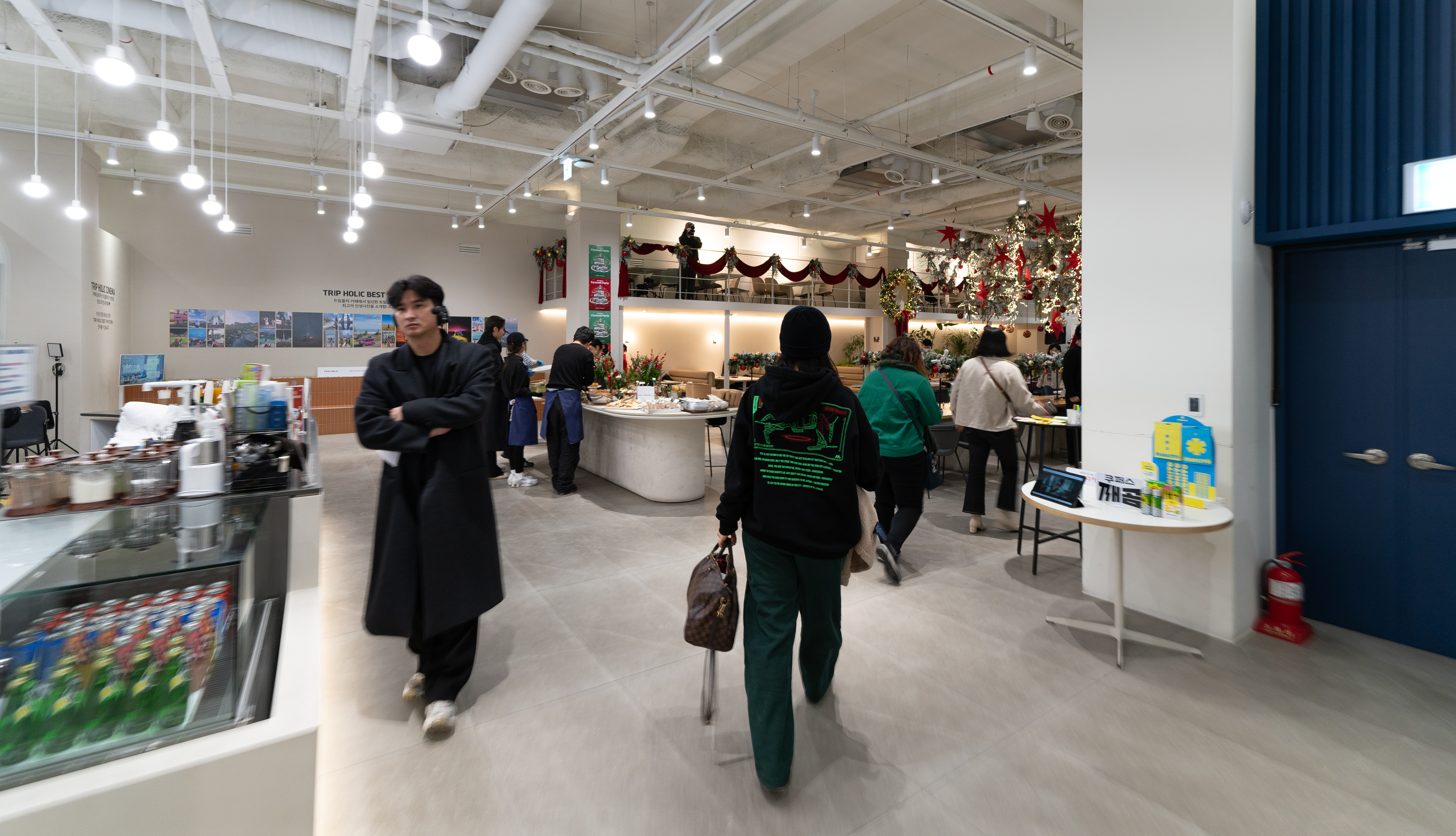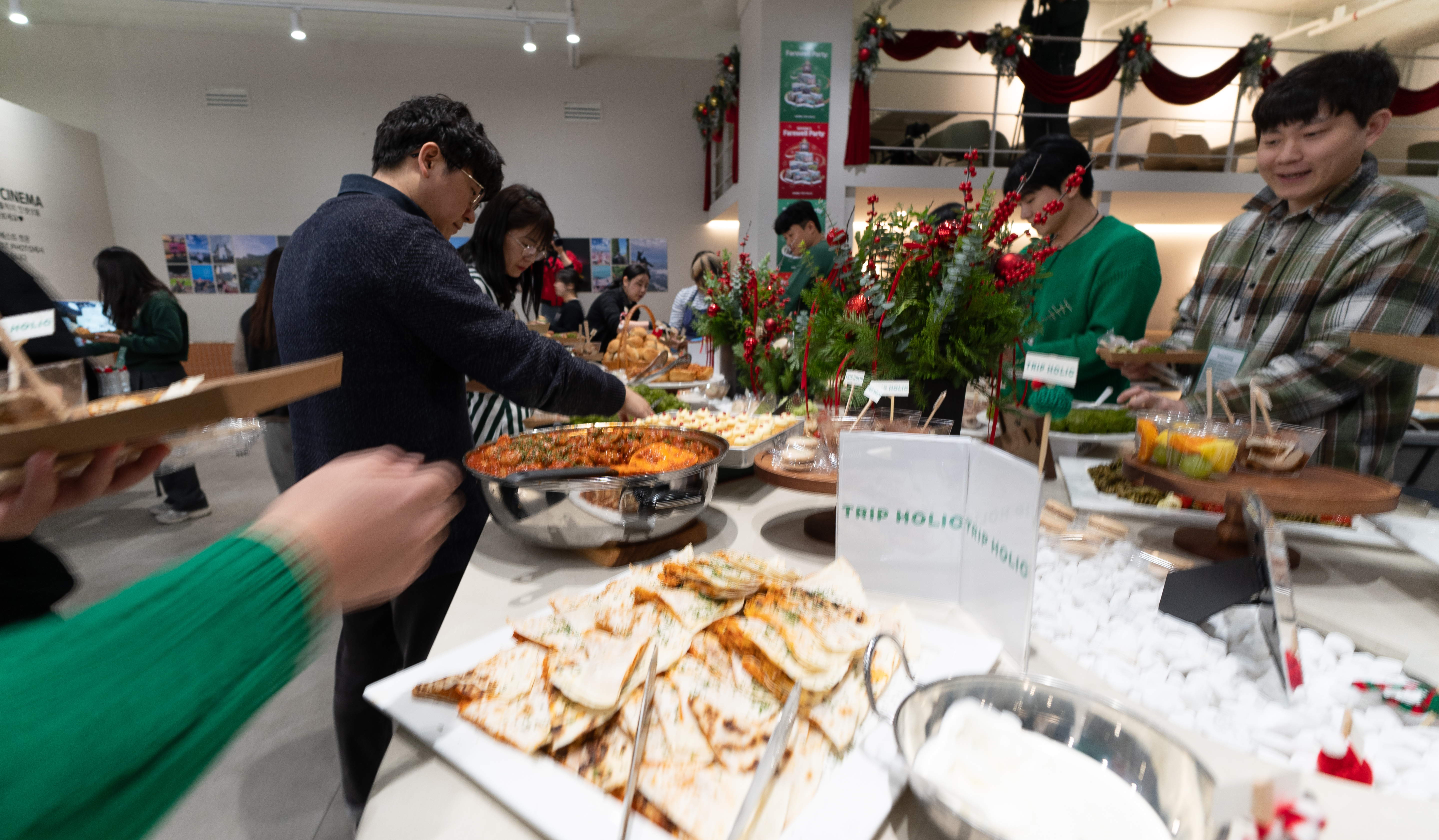 트립홀릭 페어웰 파티의 오프닝 시간에는 여기어때 라운지를 둘러보며 트립홀릭을 이끌어주시는 대장 마일로 님을 비롯해 홀릭지기 분들을 만나볼 수 있는 시간이었습니다. 저는 트립홀릭 5기 활동을 하면서 다른 분들에 비해서 해외여행도 잘 못 다녔고, 국내여행도 마찬가지로 올해에는 예산이 부족한 관계로 많이 못 다녀서 환영받지 못할 줄 알았는데, 홀릭지기 분들이 다들 저를 기억해 주시면서 너무 따뜻하게 맞아주셔서 고마웠습니다.
