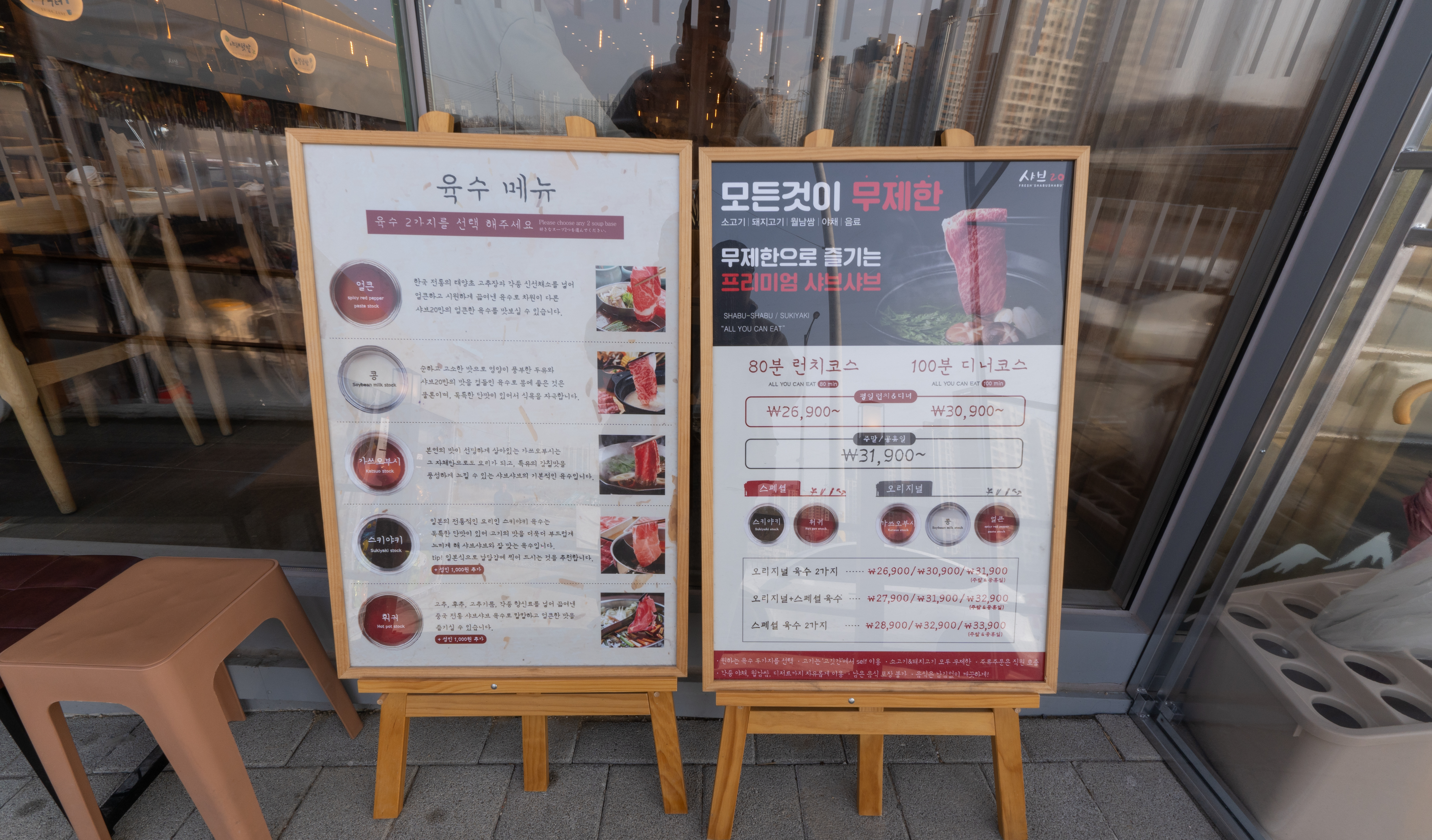 샤브20 이용금액은 점심 26,900원, 저녁 30,900원이었고, 주말 및 공휴일은 31,900원에 이용할 수 있었습니다. 런치는 80분, 디너는 100분으로 시간을 제한하고 있었습니다. 제 앞에 대기팀은 35팀 정도 있었는데, 가게 규모가 크고 회전율이 나쁘지 않아서 약 20분 정도만에 자리가 나서 가게에 들어갈 수 있었습니다.