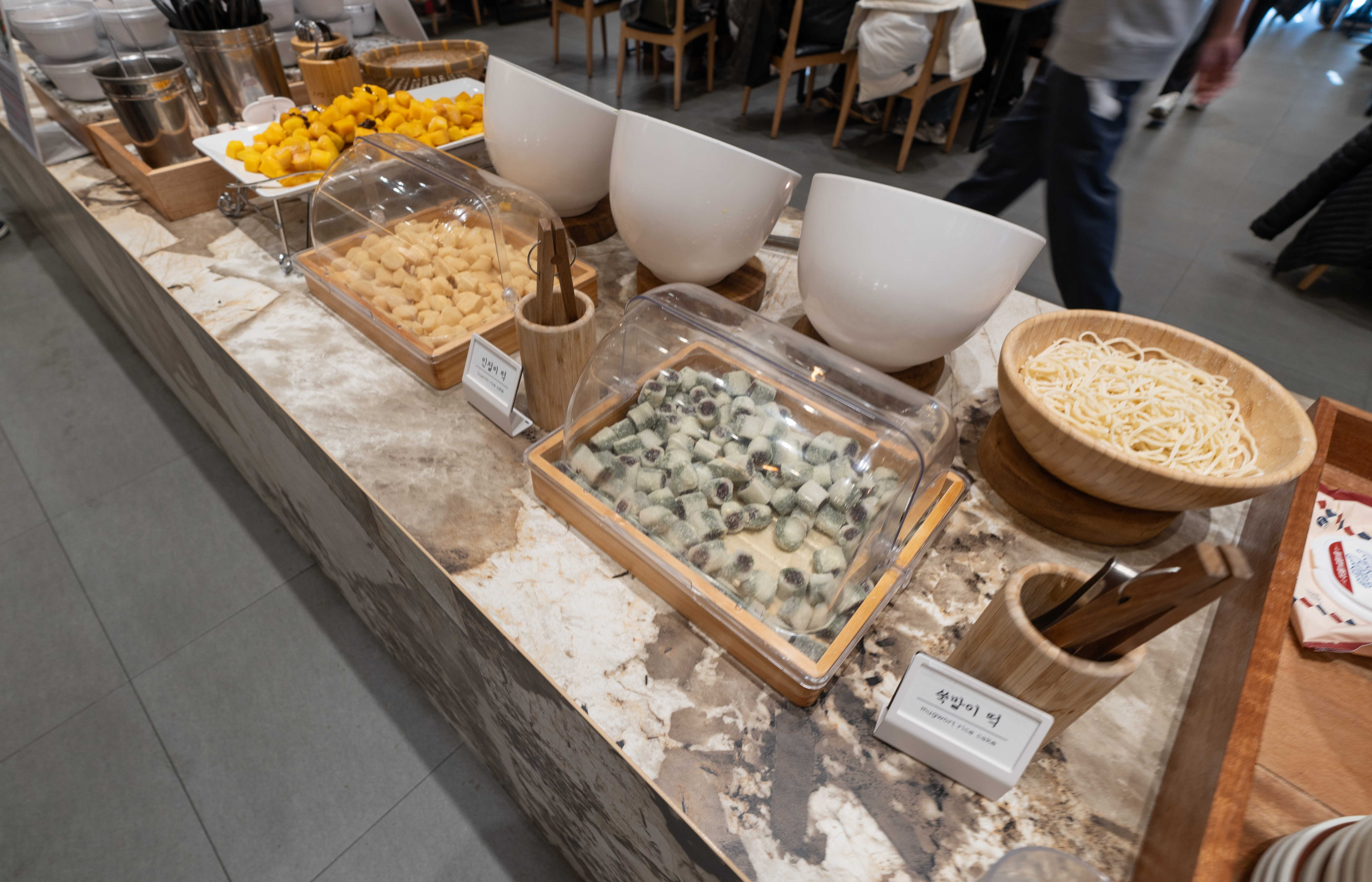 그리고 디저트류에는 떡과 아이스크림, 커피, 과일, 음료 등이 있었습니다. 새로 생긴 가게여서 그런지 보통 디저트 코너들은 달달한 설탕이 많이 들어간 메뉴가 많기에 끈적이거나 얼룩이 많은데, 이곳 역시 깔끔하게 관리되어 있는 모습을 볼 수 있었습니다.