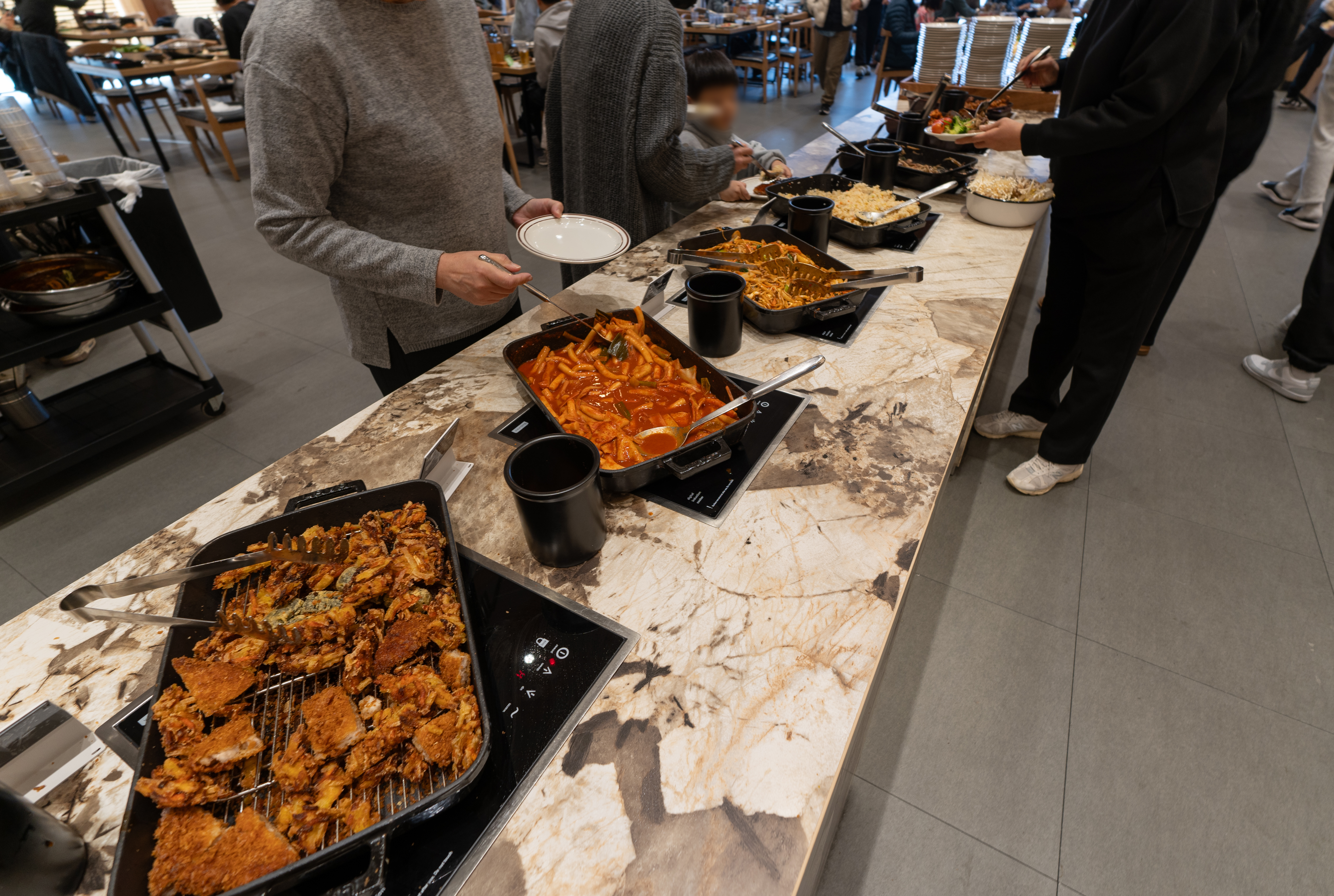 그밖에 샐러드바를 함께 살펴보겠습니다. 샐러드바는 샤브올데이라는 가게가 더 다양하게 구비되어 있는데요. 솔직히 샤브샤브집에 갔는데 샐러드바에서 배 채우시는 분은 없으시겠죠? 샤브20의 샐러드바는 떡볶이, 돈까스, 닭튀김, 볶음류와 소갈비, 디저트류 가 있었습니다.