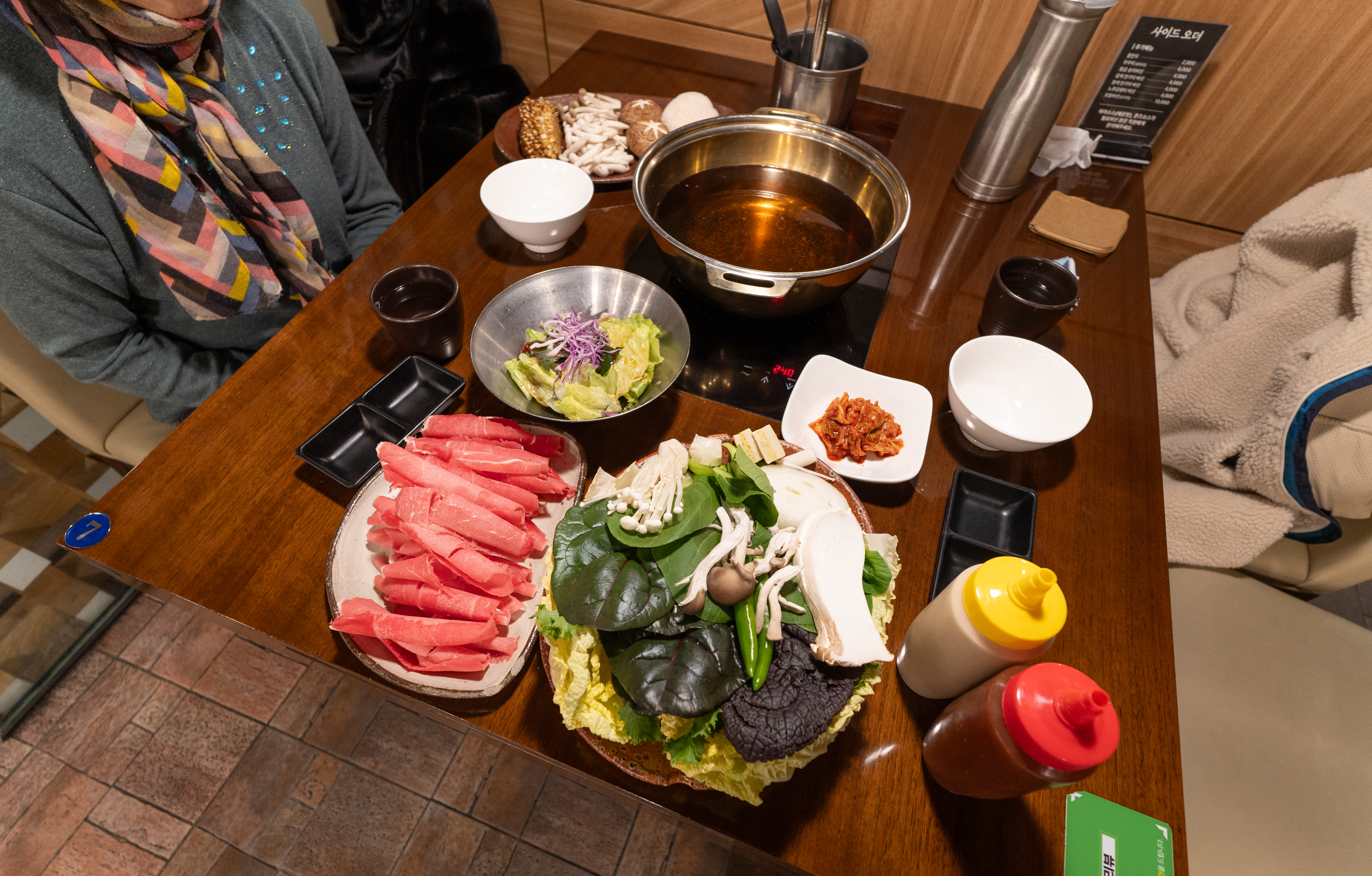 ✓ 저희는 버섯샤브샤브 2인분 을 주문했습니다.