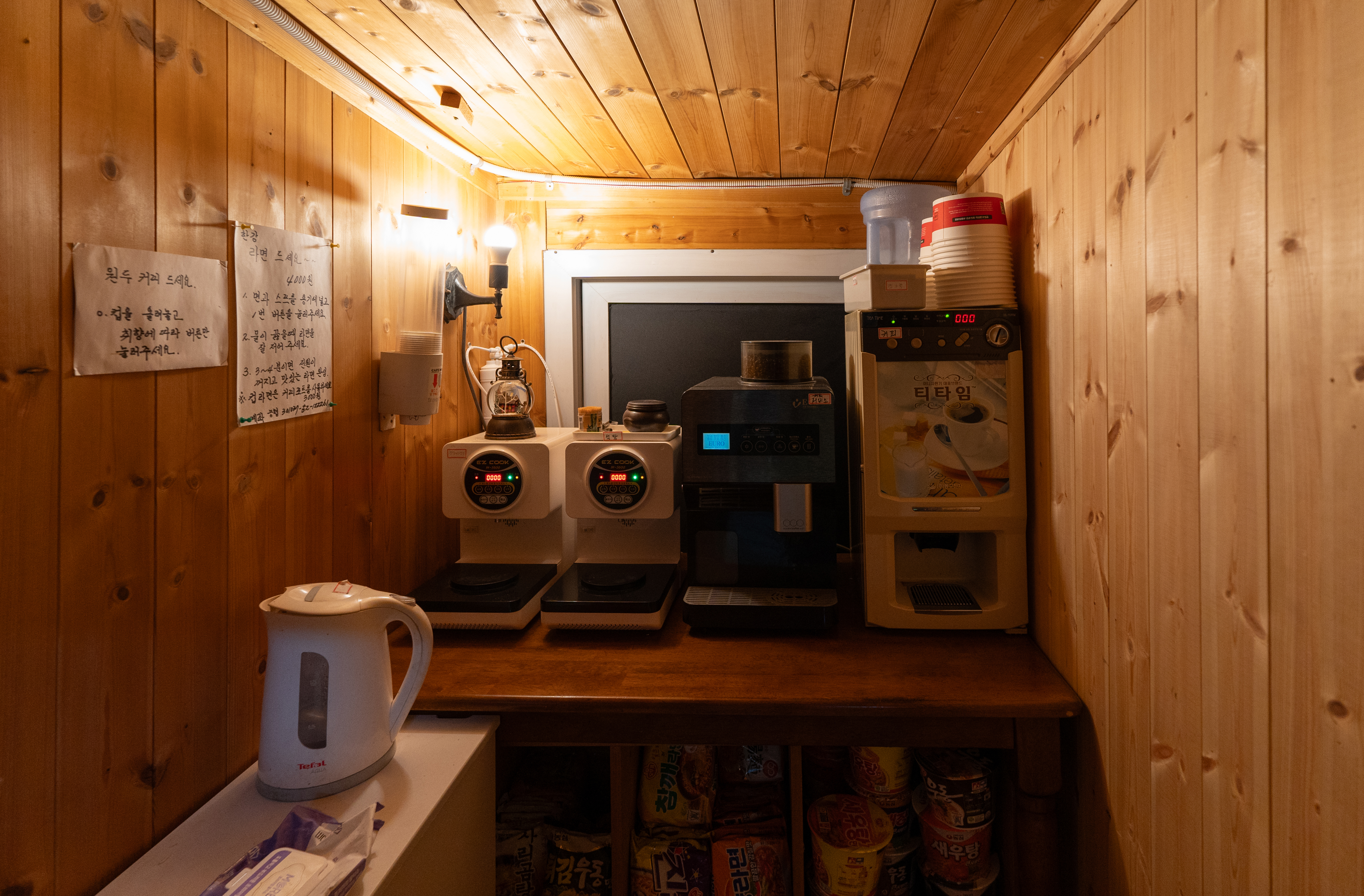 특히 이 귀틀촌 찜질방의 고온방인 황토방이 가장 메인인 찜질방이라 할 수 있는데요. 방의 가장 안쪽으로 들어가면 살짝 뜨거운 느낌이 들 정도였습니다. 양말을 신고 들어가시는 것을 추천드리며, 이곳에는 구운 달걀과 당귀차가 있었습니다. 구운 달걀은 3개 2,000원에 판매 중이었고, 당귀차는 무료로 제공되고 있어서 원하는 만큼 컵에 따라 마시면 되었습니다. 참고로, 한강라면 기계 쪽 커피도 무료로 제공되니 한 번 이용해 보시기 바랍니다.