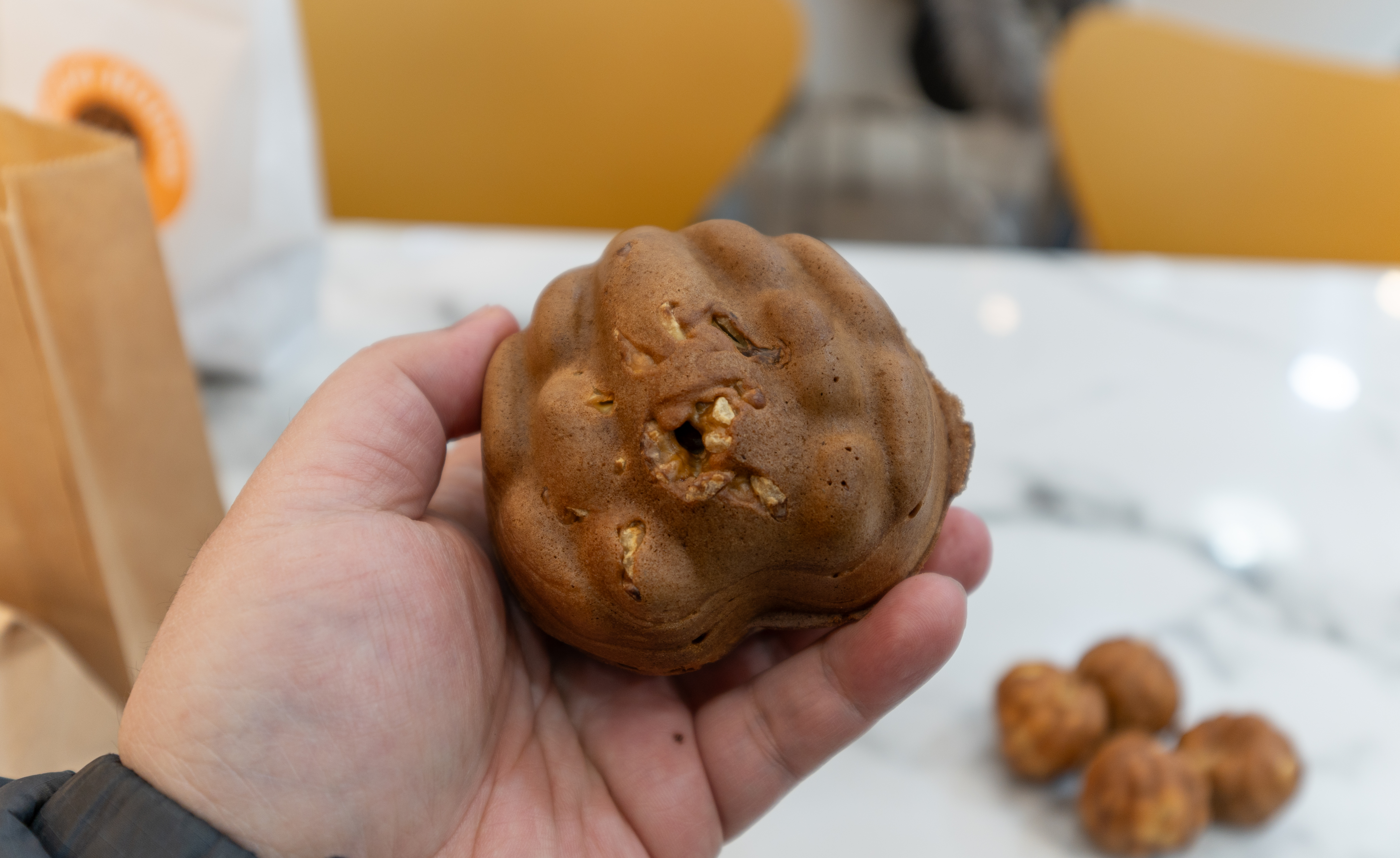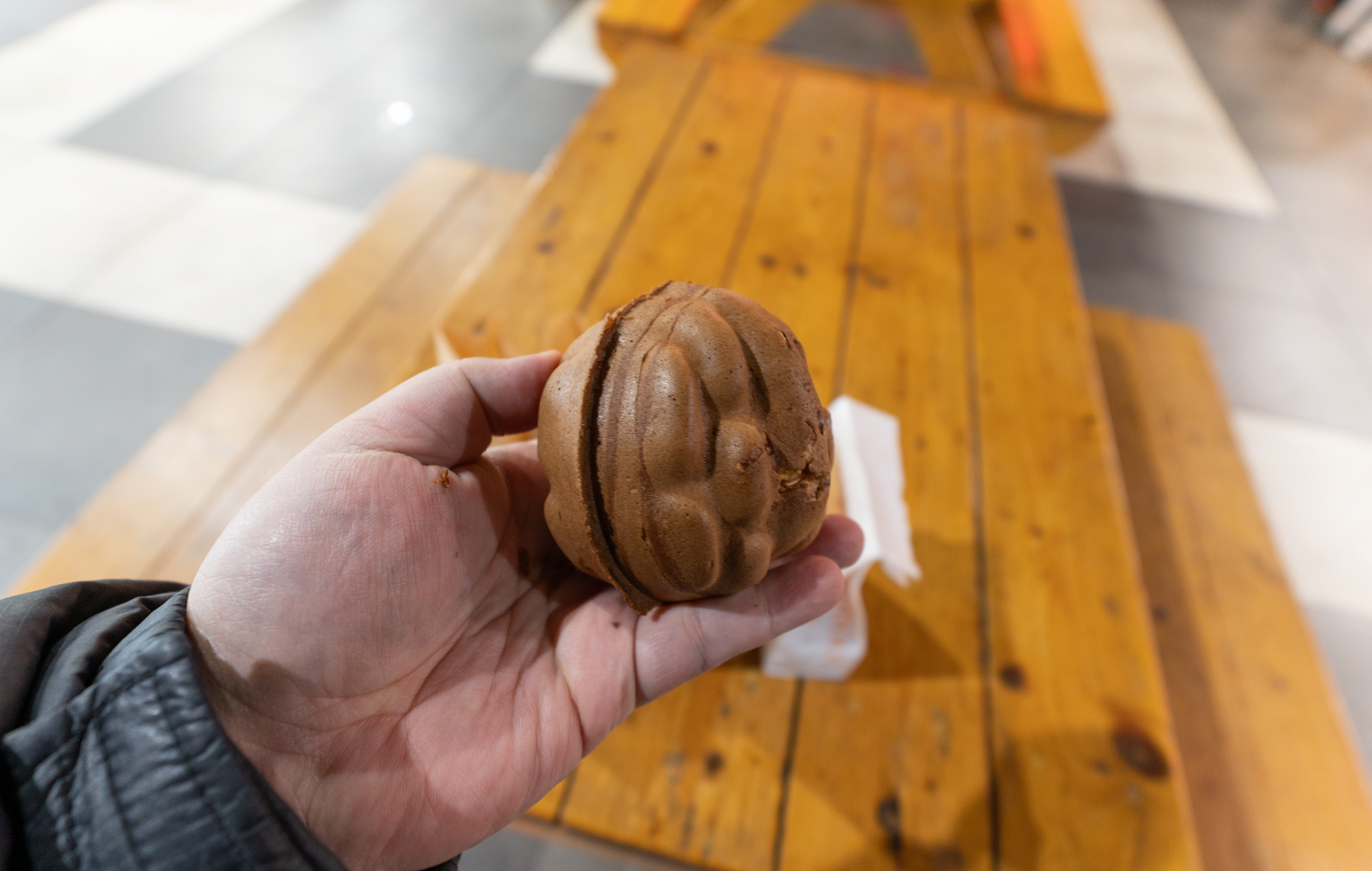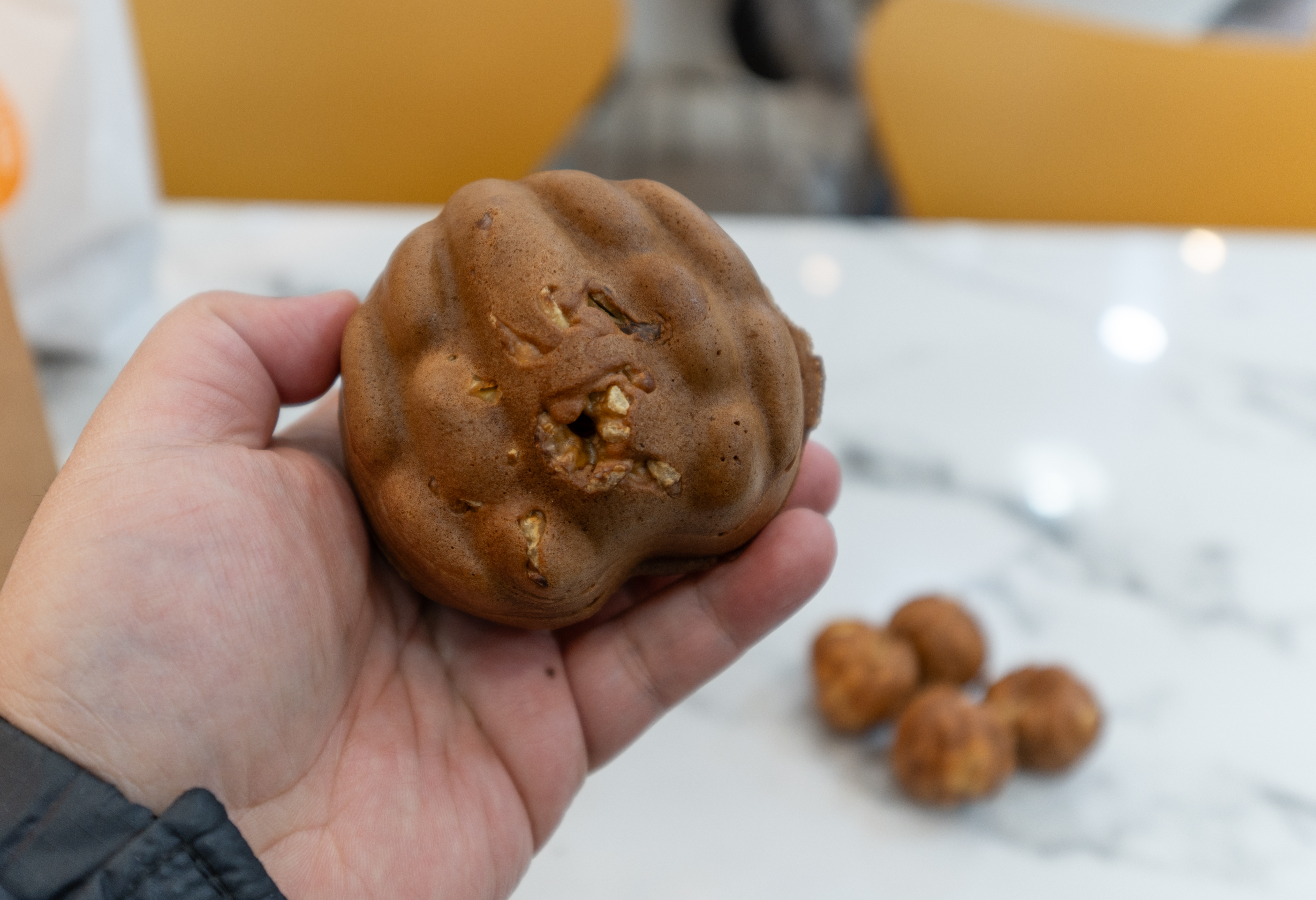 점보호두과자의 크기는 제 주먹과 비슷한 크기였고요, 외형을 봤을 때는 빵이 너무 퍽퍽하고 질길 것 같았지만 의외로 부드럽고 촉촉해서 먹기 좋았고, 호두과자 속에 단팥도 제법 넉넉히 들어있고, 분쇄된 형태의 호두가 아니라 우리가 흔히 먹는 호두의 온전한 형태로 들어가 식감도 더 좋았습니다. 제가 호두과자를 많이 좋아해서 일부러 휴게소 가서 호두과자를 먹는 경우가 종종 있었는데, 이 대왕호두과자는 만족도가 꽤 높았던 메뉴입니다. 나중에 또 칠곡휴게소 들를 일이 있으면 또 사 먹을 의향이 있습니다.