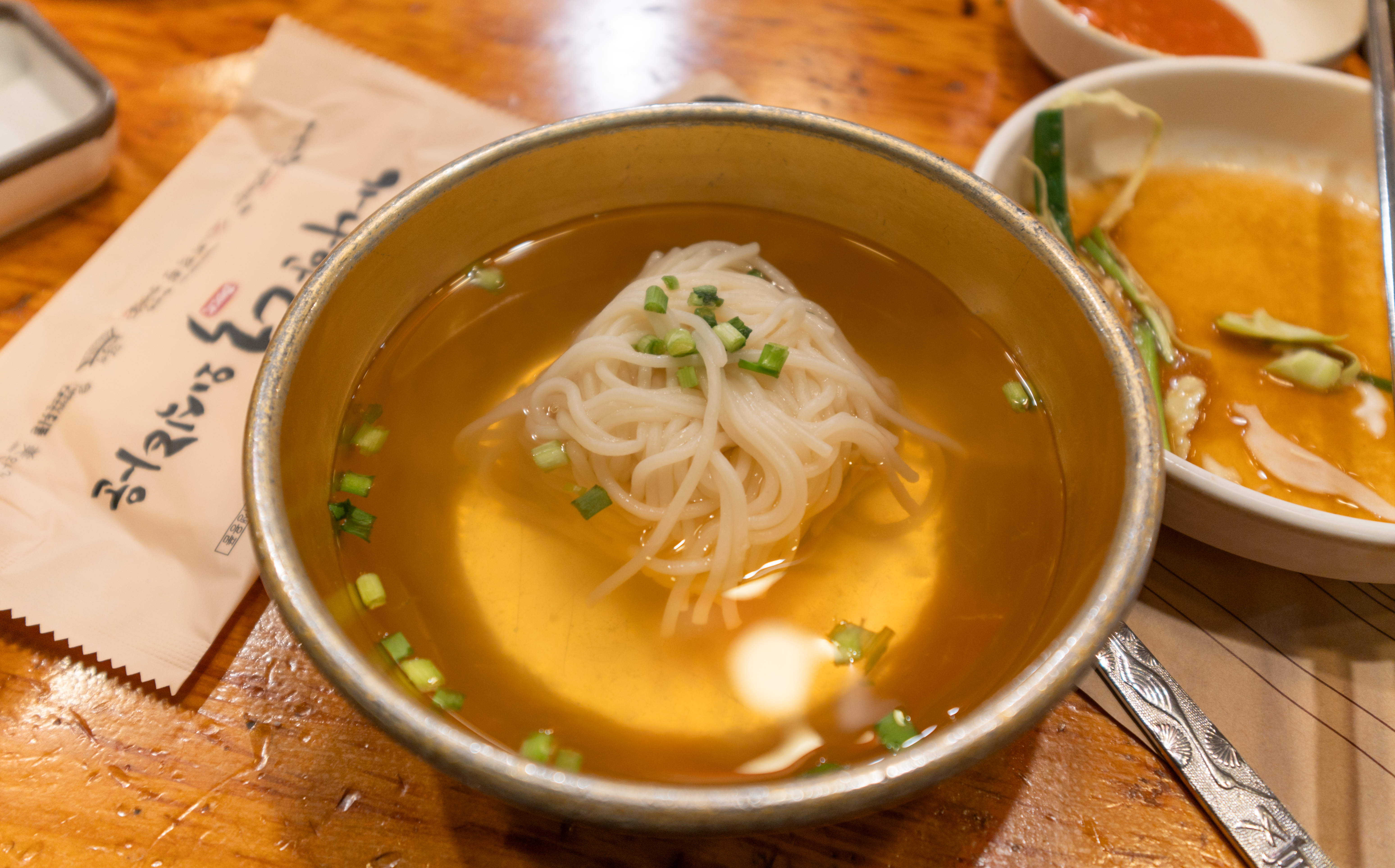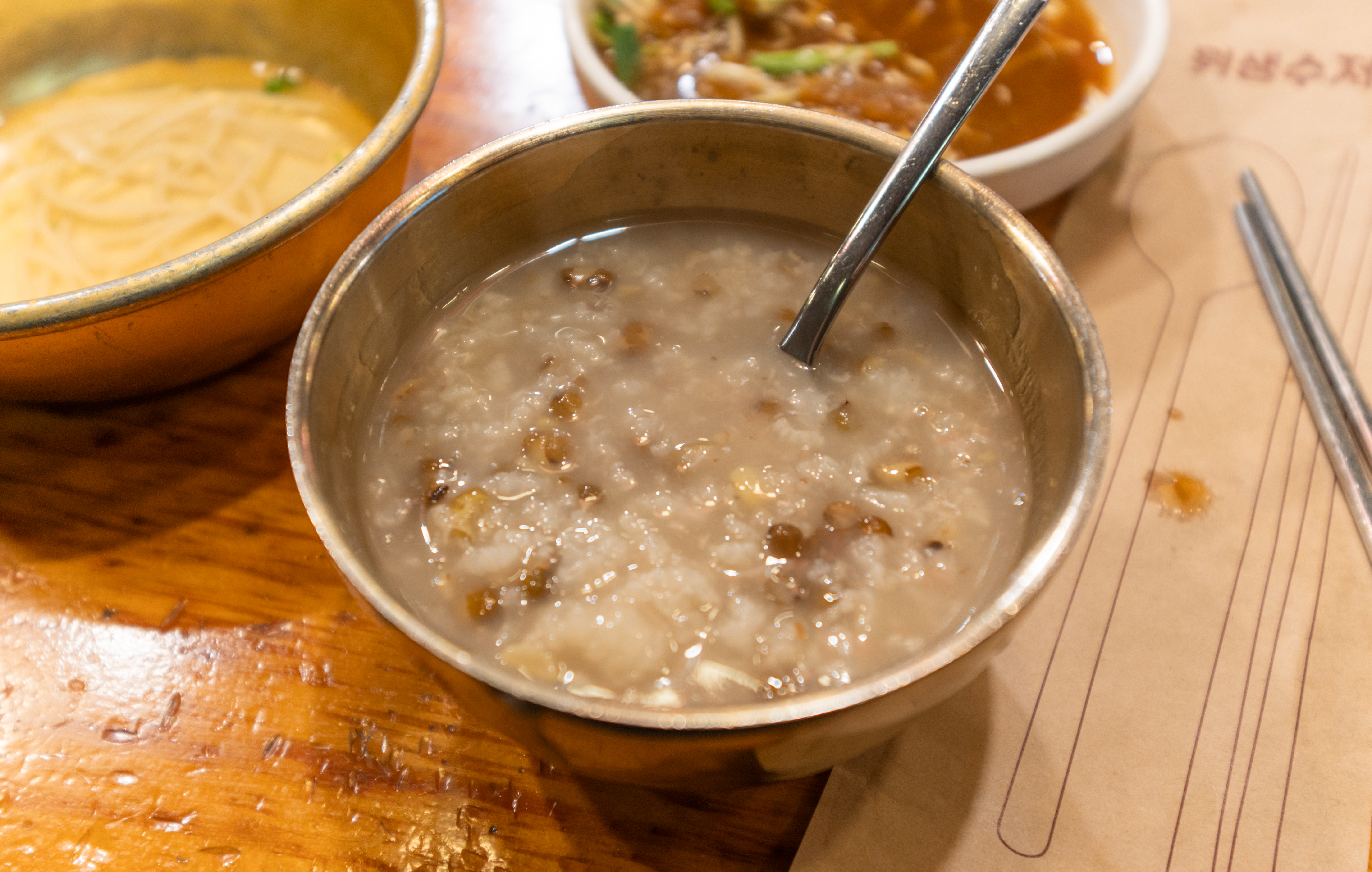 하남 가나안덕 내부는 위와 같이 생겼습니다. 가게에는 동그란 테이블이 많이 있었는데, 일부는 사각형 테이블도 있더라고요. 저희는 사각 테이블로 이동하여 식사했습니다.