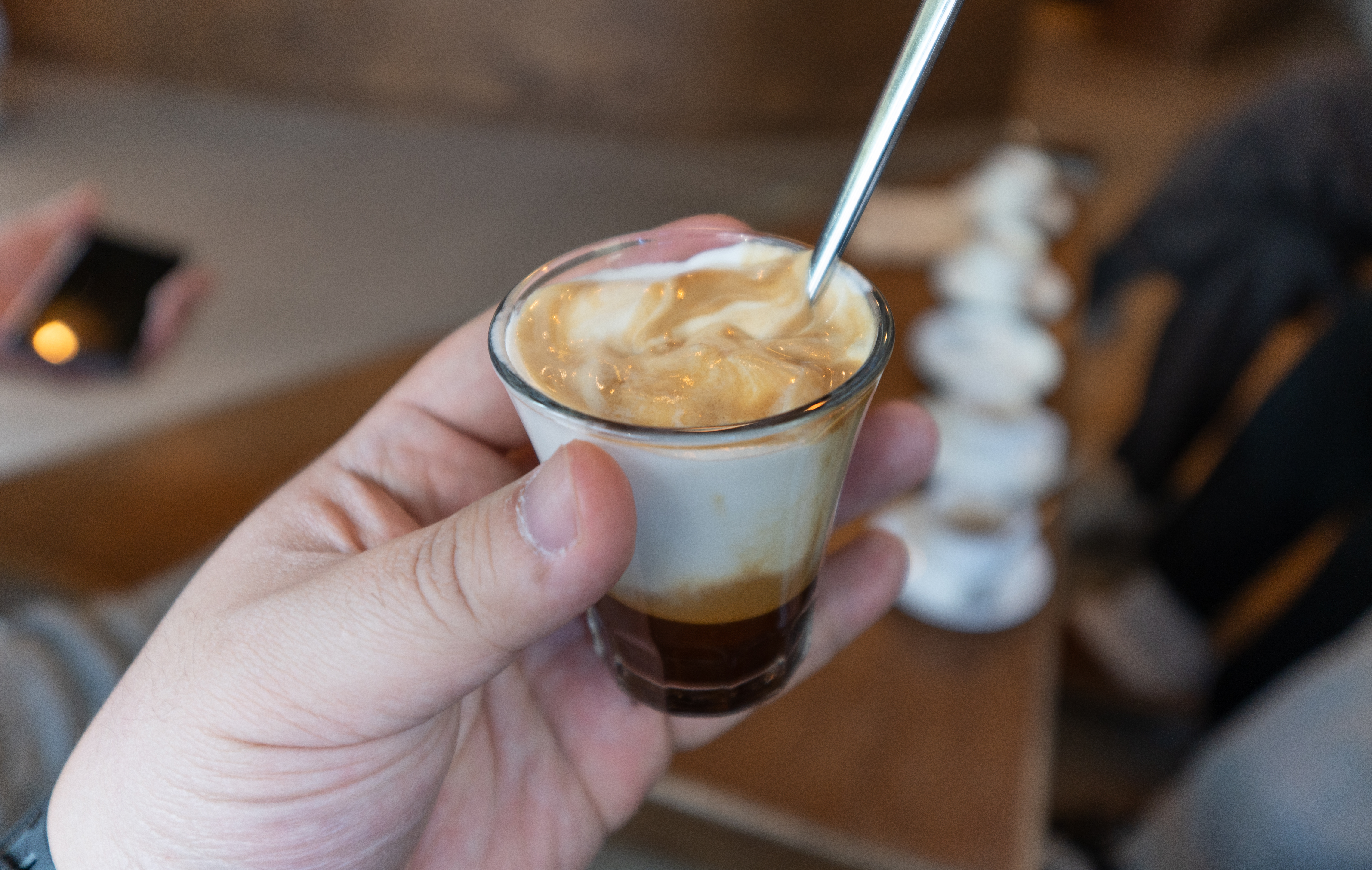 이후에는 에스프레소 콘파냐가 나왔습니다. 에스프레소 콘파냐는 일반 카페에서도 판매하는 곳이 종종 있죠. 에스프레소 위에 휘핑크림을 얹어 나오는 메뉴로, 부드럽고 달콤한 맛이 특징이었습니다.
