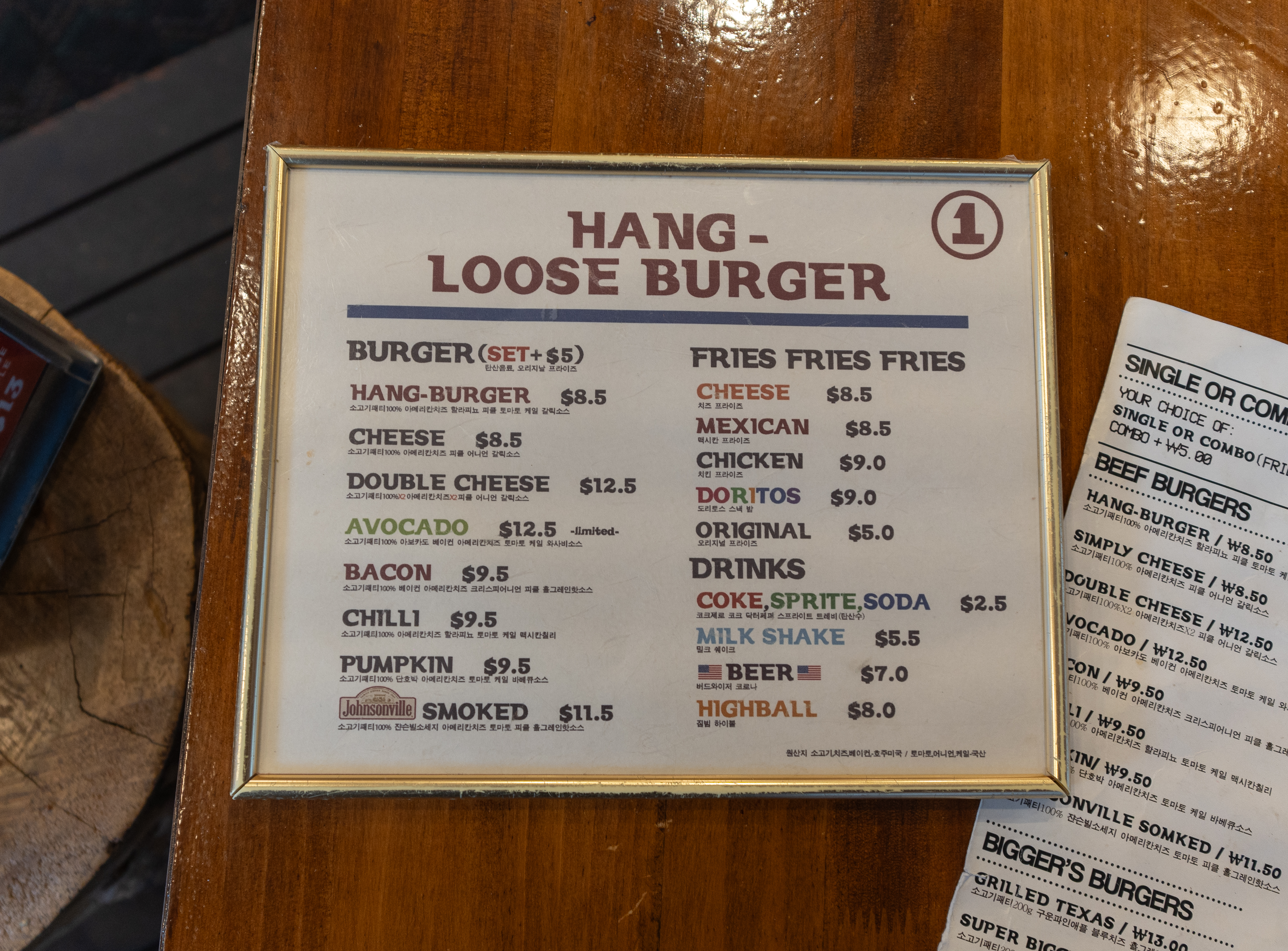 행루즈버거는 울산 남구 삼산동 1499-3, 1층 에 위치해 있었습니다. 행루즈버거의 내부는 나무 마루로 되어있었고, 곳곳에 미국 느낌이 물씬 풍겨지는 소품들을 배치해 마치 미국에 온듯한 느낌을 느껴지게 해주고 있었습니다.