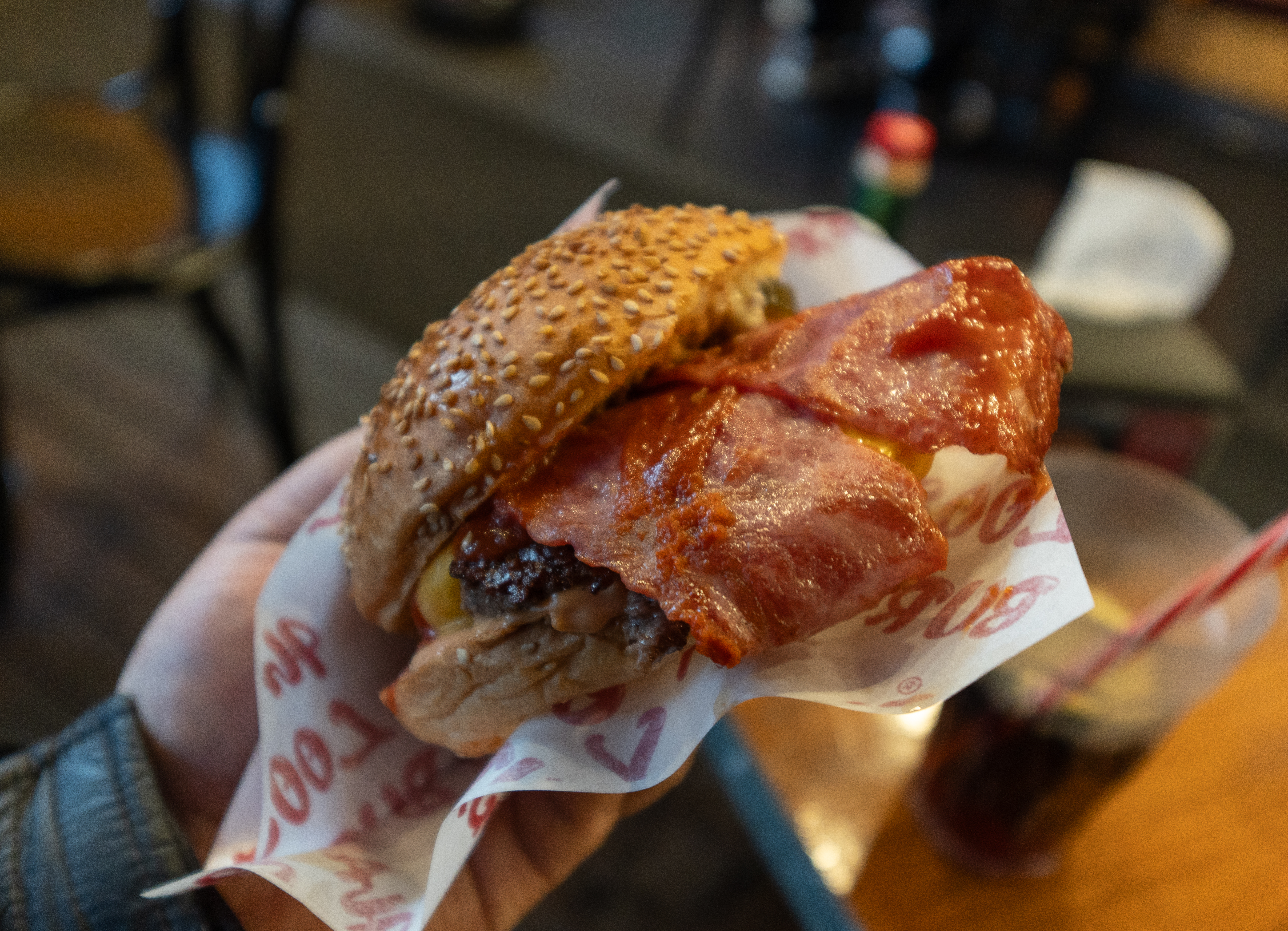 행루즈버거의 베이컨버거 세트가 나왔습니다. 베이컨버거는 100% 소고기 패티와 베이컨, 아메리칸치즈, 크리스피어니언피클, 홀그레인핫소스가 들어간 햄버거였습니다.