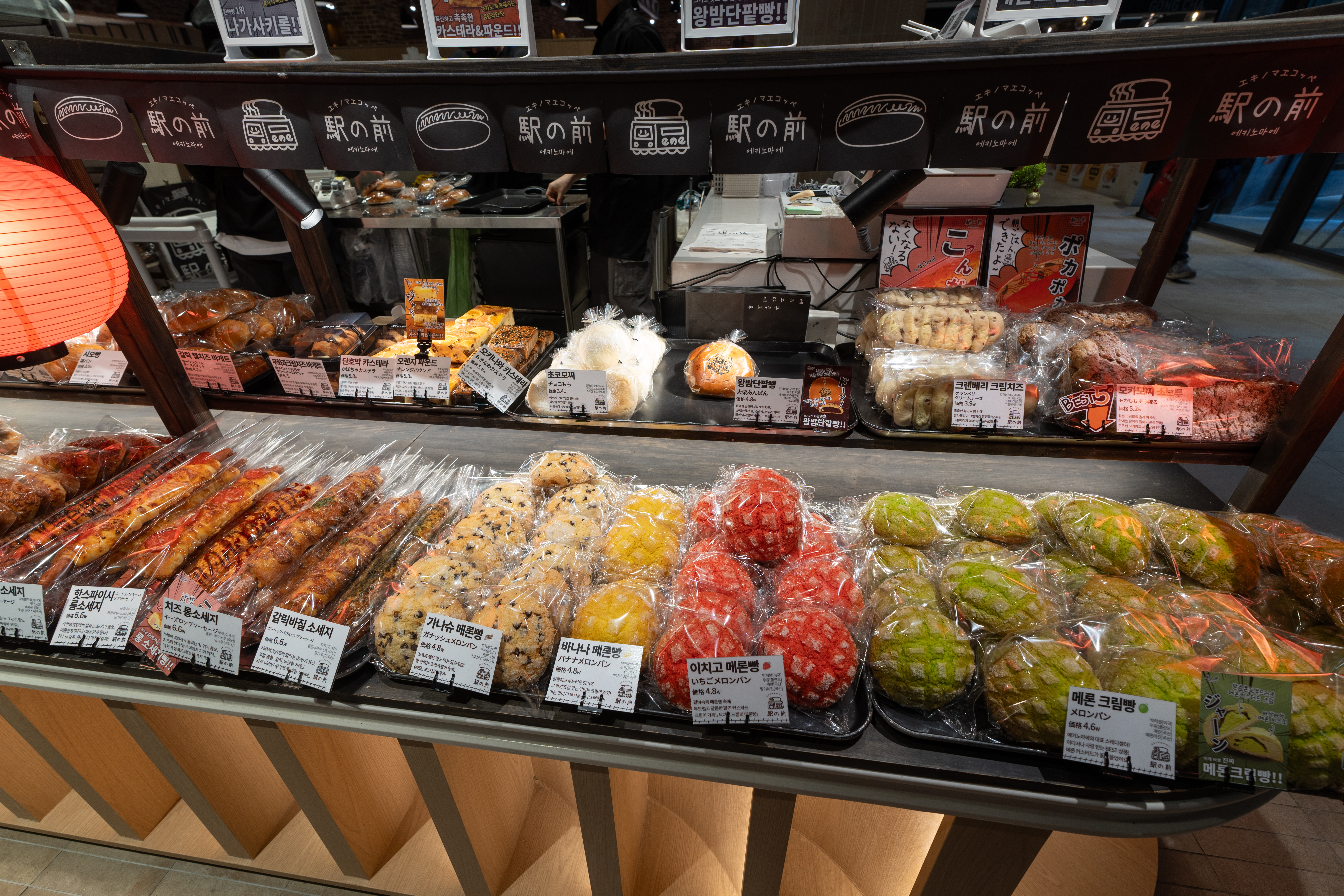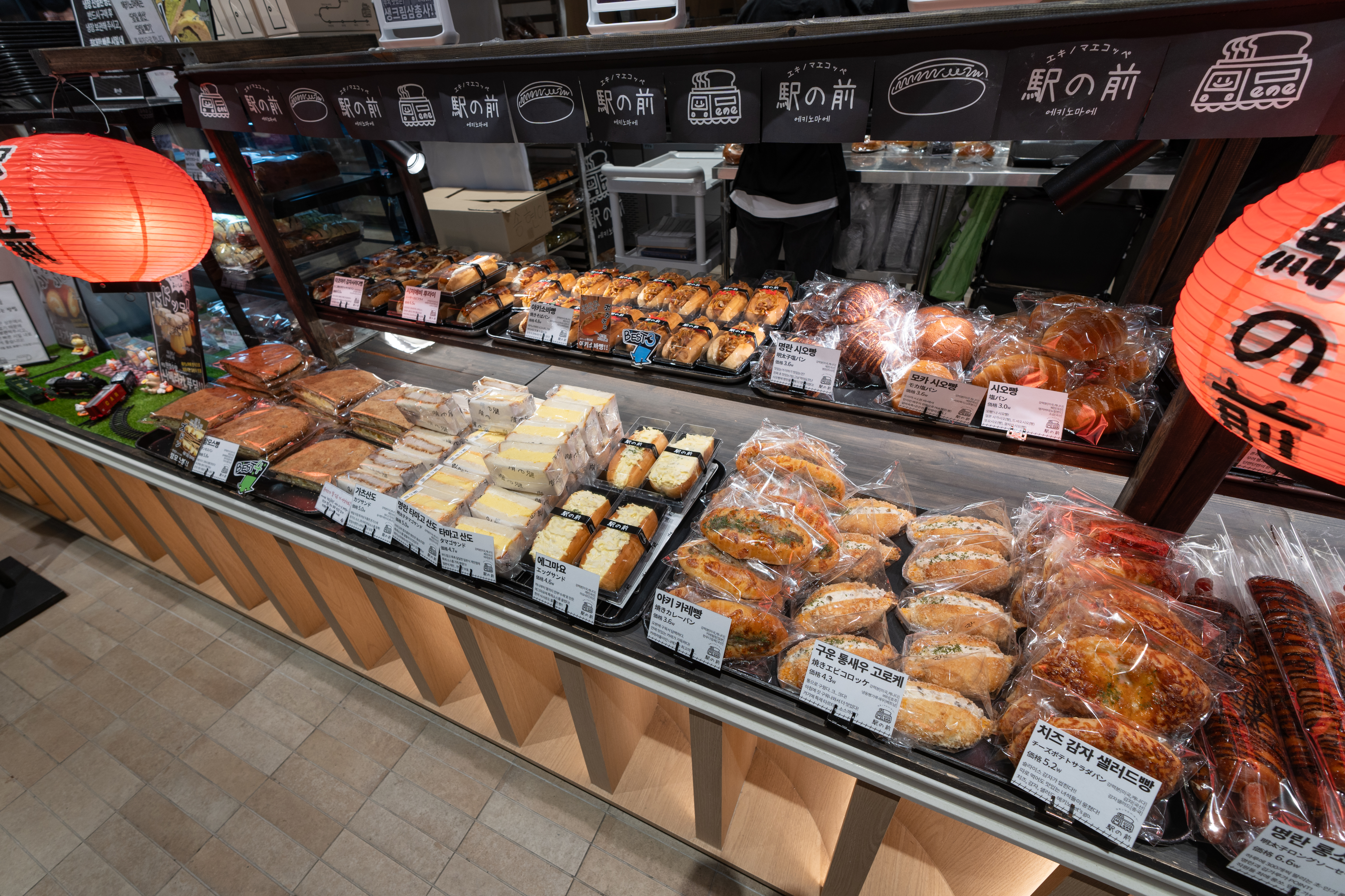 '송도 현대 프리미엄 아울렛' 줄여서 '송현아'에서 에키노마에(駅の前)에 다녀왔습니다. 에키노마에는 '역 앞'이라는 의미를 가지고 있으며, 굳이 끼워 맞춰 보자면 역사 근처의 빵집이라고 할 수 있겠습니다. 이곳은 일본 느낌의 빵을 많이 판매하고 있었는데, 타코야끼빵부터 카레빵, 소금빵, 야키소바빵, 타마고산도 등 먹음직스러운 다양한 빵을 판매하고 있었습니다.