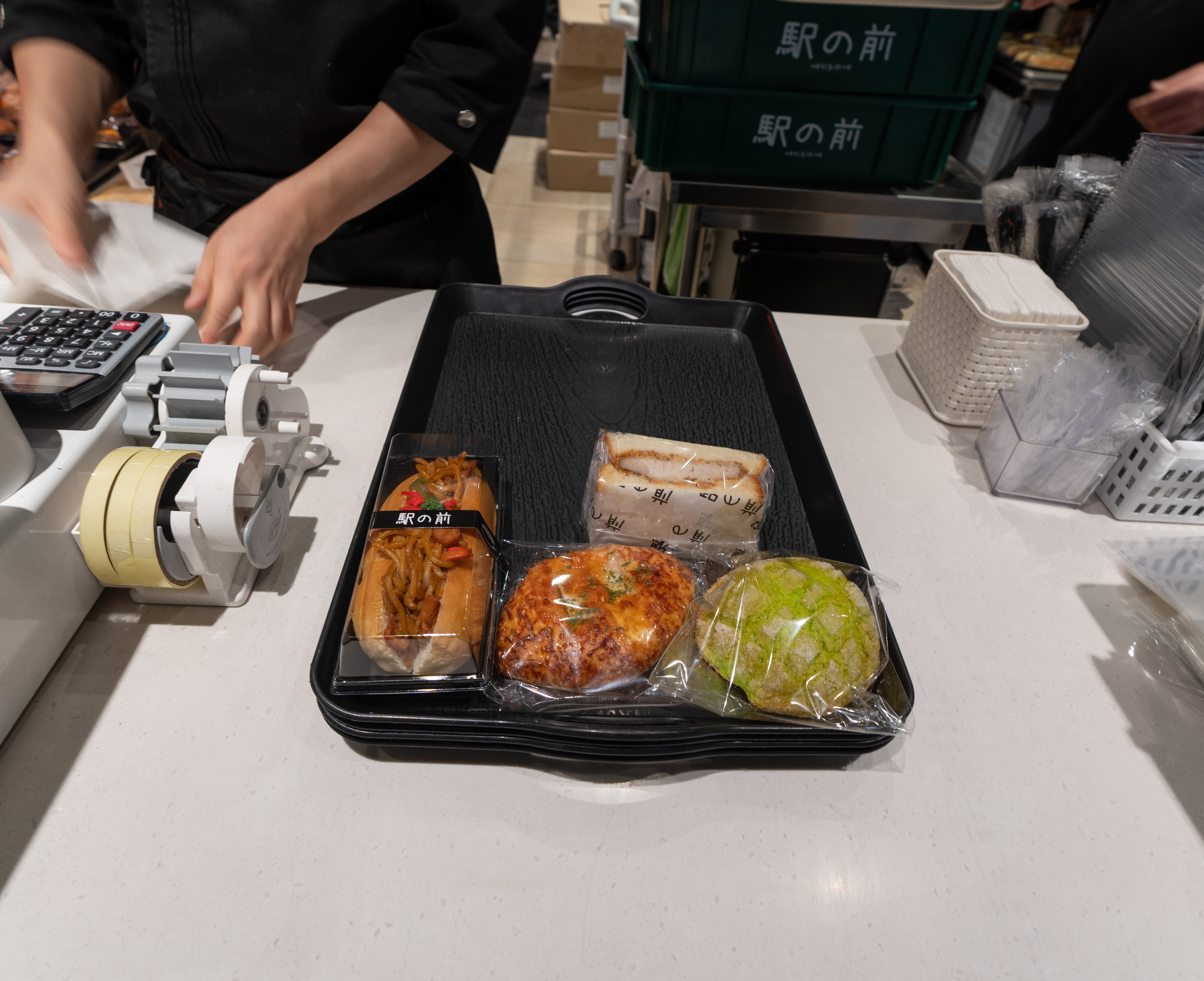 빵 종류도 다양하게 구비되어 있었는데요, 일본의 명물 멜론빵부터 소보루, 단팥빵, 모찌, 오렌지파운드, 소금빵, 카레빵, 고로케, 타마고산도, 카츠산도, 야키소바빵, 타코야끼빵, 맘모스빵, 푸딩 등이 있었습니다. 저는 카츠산도와 야키소바빵, 치즈감자샐러드빵, 멜론크림빵을 선택했습니다.