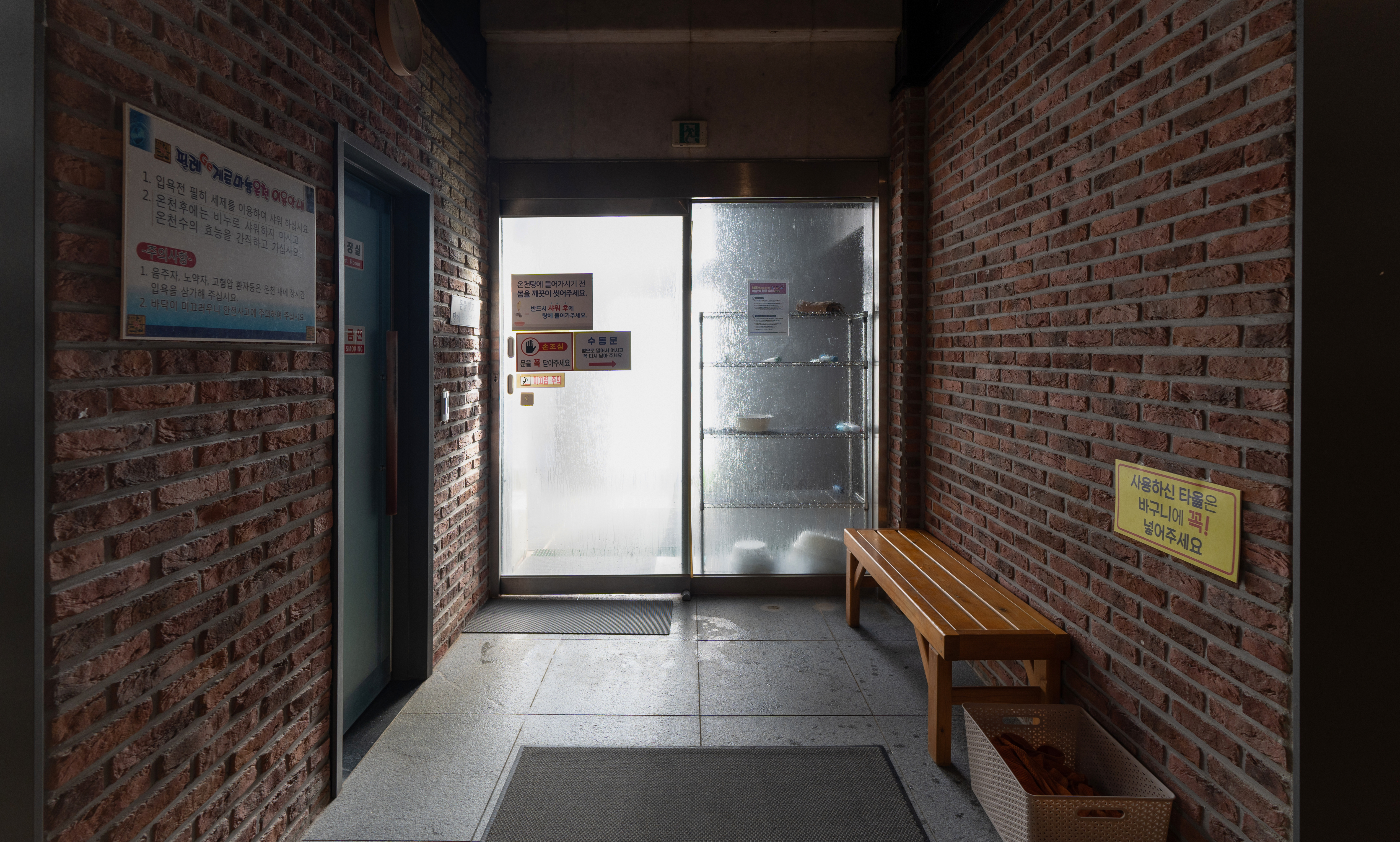 온천에 들어가기 전 신발을 갈아 신고, 신발장 열쇠를 가지고 카운터에 맡긴 뒤 온천 이용요금을 결제하면 캐비닛 열쇠를 주십니다. 복도에는 필례온천의 온천수를 마실 수 있도록 음수대가 있었고, 유료로 이용할 수 있는 안마의자가 있었습니다.