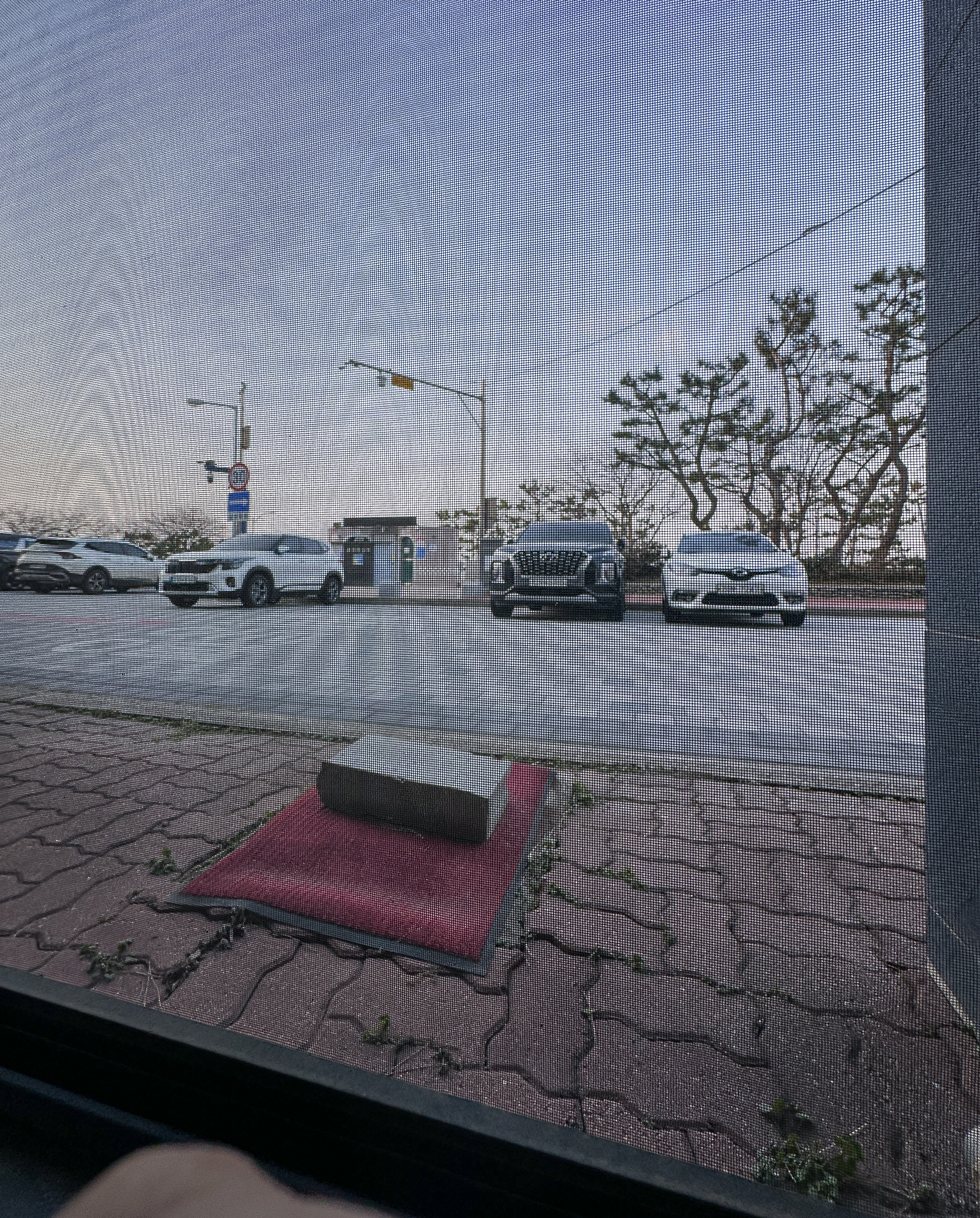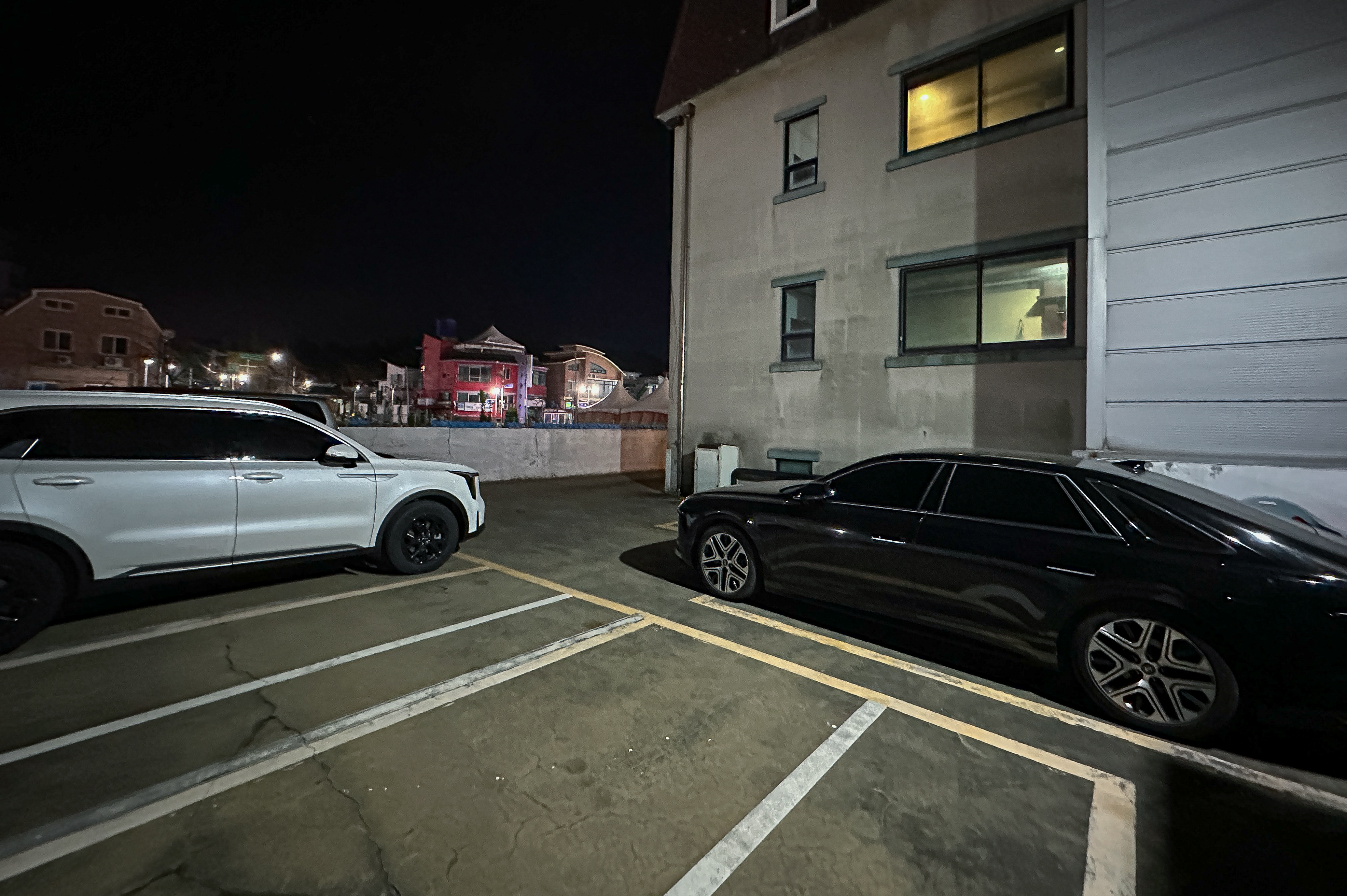 아마도 가장 궁금한 부분은 대천 해수욕장 바로 앞인 이 숙소의 객실에서 바라보는 전망일텐데요. 반지하라 그런지 객실에서 바라보는 뷰는 객실 앞 도로와 주차장 그리고 공중화장실이 보였습니다. 그래도 이 날 바람이 정말 많이 불었는데도, 반지하 방이어서 그런지, 바람이 들이치지 않아서 좋았고, 오히려 바닥 난방이 너무 잘 돼서 새벽엔 좀 덥더라고요.
