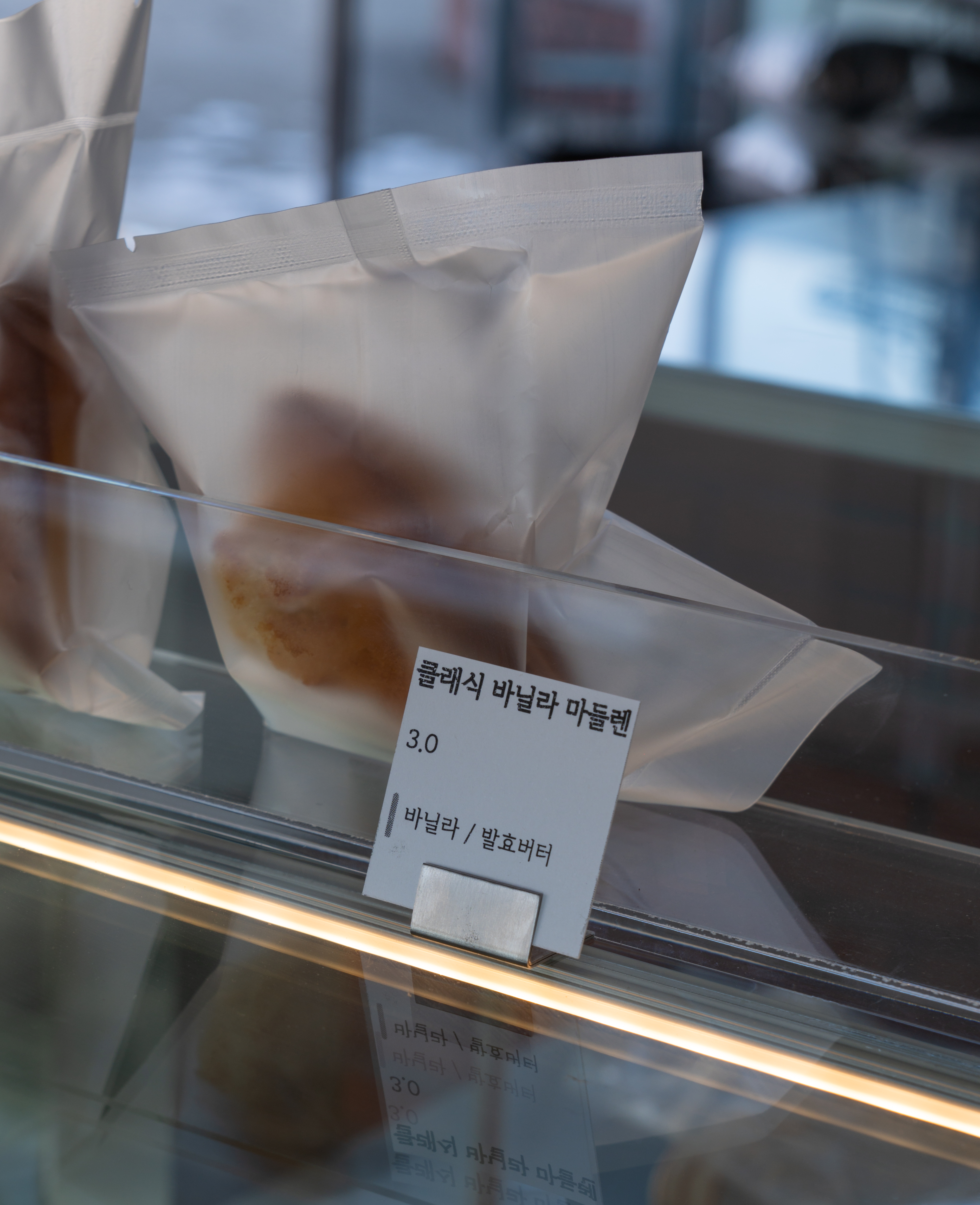 시그니처 메뉴 딸기나무와 피스타치오 오렌지 휘낭시에 그리고 레몬 케이크의 모습입니다. 상큼한 맛의 레몬케이크에 꾸덕한 식감(?)이 있는 피스타치오 오렌지 휘낭시에도 인상적이었지만, 사실 저는 이곳에 방문하기 전 딸기나무가 가장 궁금했었는데, 딸기나무는 부드러운 밀크초콜릿 무스에 상큼한 딸기소스의 조화가 이루어지는 메뉴라고 합니다.