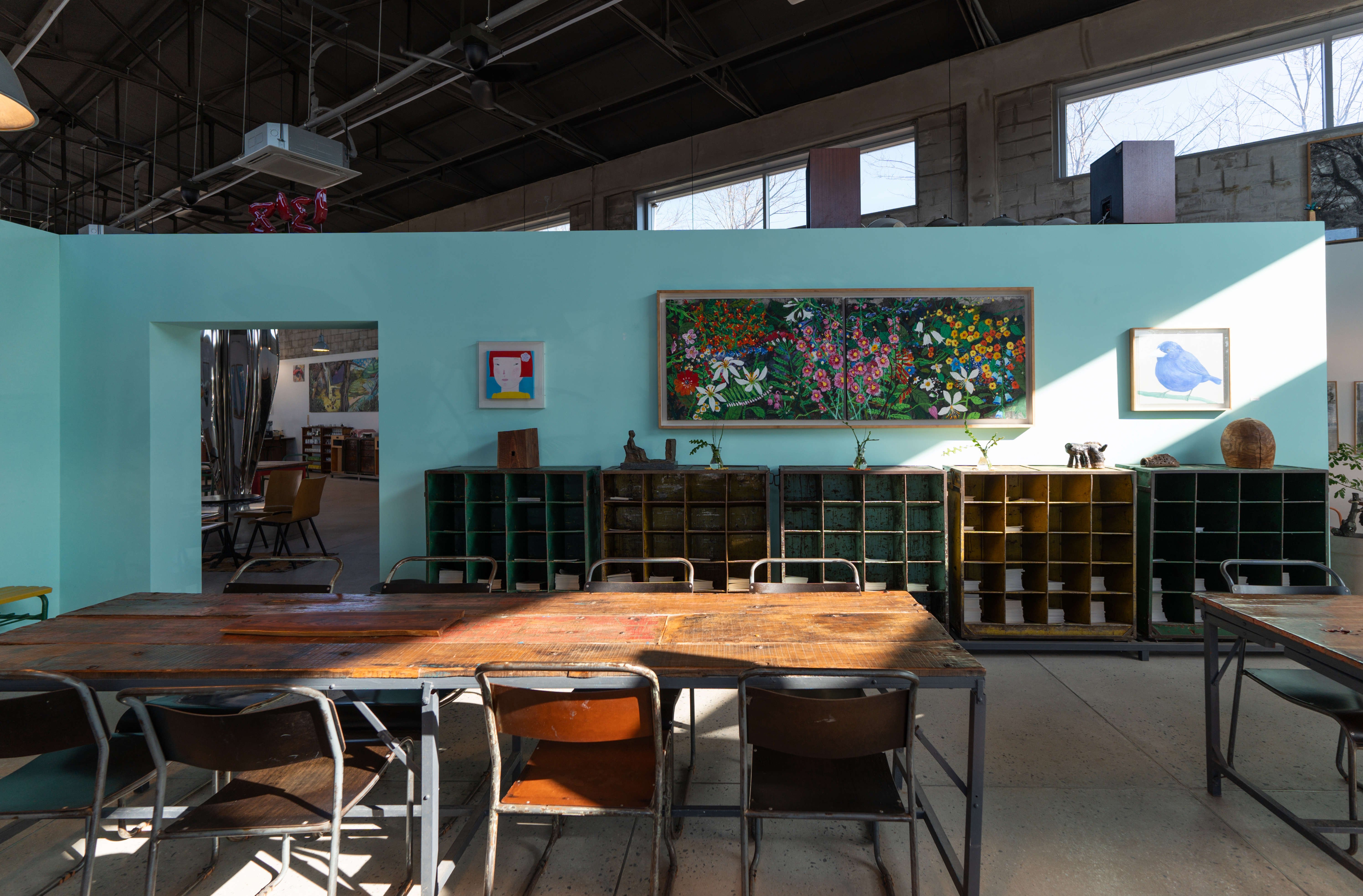 그밖에 100평 규모의 이 카페에는 그 간 황진 작가가 모아온 수집품들과 미술작품들을 만날 수 있었습니다. 빈티지한 가구들과 스피커 그밖에 공간을 채우고 있는 다양한 작품들을 만날 수 있었습니다. 카페 내부에서도 황진 작가의 수집품과 그가 직접 제작한 테이블도 만날 수 있었습니다.