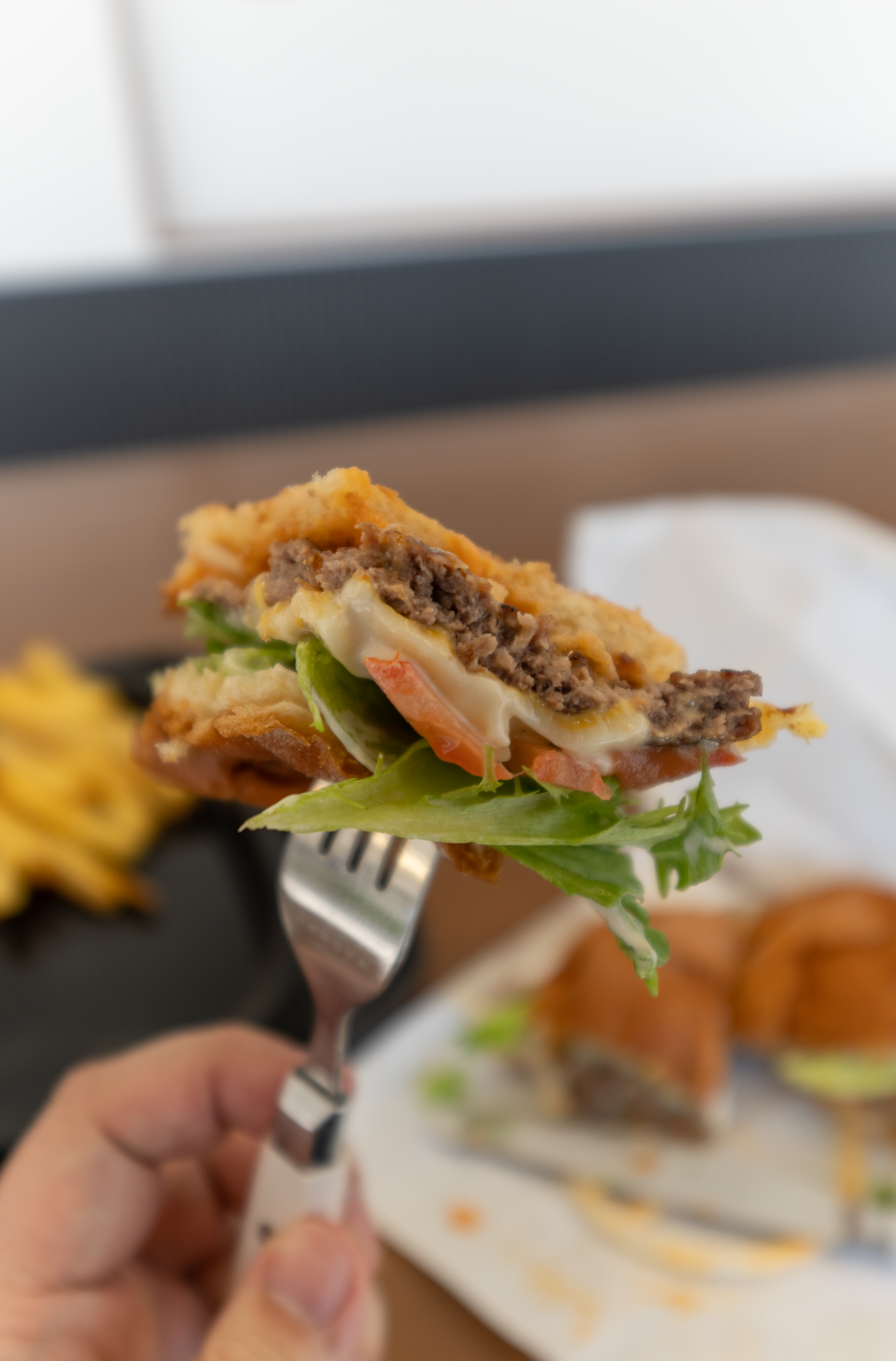 강화도 소울버거의 클래식 버거는 버거 번부터 양상추, 토마토, 양파 등 채소들이 관리가 잘 되어있었고, 소고기 패티와 치즈 등이 골고루 잘 들어가 고소한 맛이 매력적이었습니다. 최근에 안면마비 중 하나인 벨마비에 걸려서 입이 제대로 안 벌어져 칼로 잘게 조각내어 먹어야 했습니다.