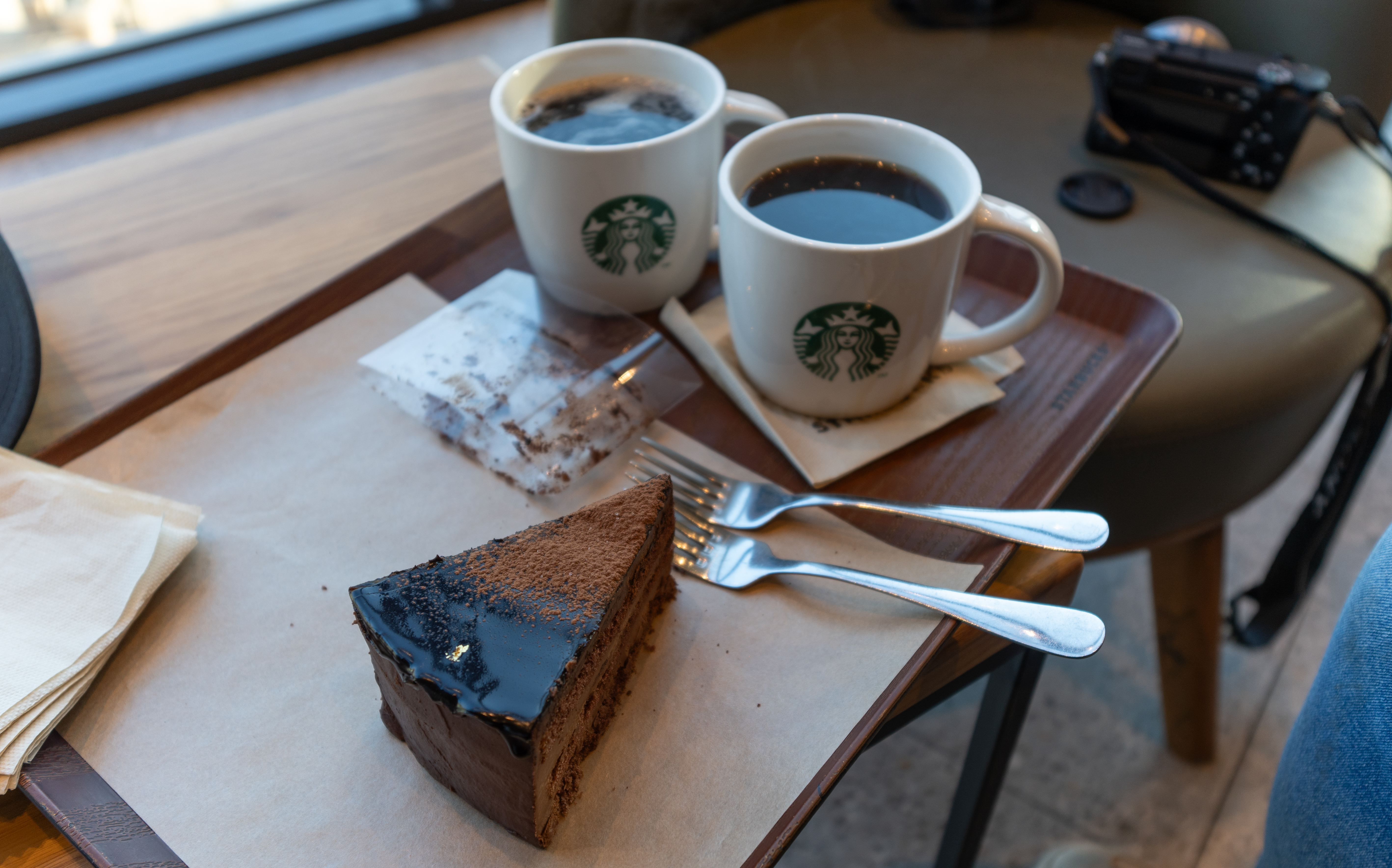 스타벅스 더북한산점에는 프렌즈 얼그레이 베리티 라떼, 프렌즈 시나몬 돌체폼 카푸치노, 유자배 캐모마일티, 우유품은 초콜릿 브레드, 초콜릿 바움쿠헨 등이 있었지만, 저희는 기본 메뉴들을 위주로 주문해서 먹었습니다. 솔직히 스타벅스 커피와 디저트 맛이 다 거기서 거기라(?) 맛표현보다는 분위기가 좋았다고 할 수 있겠네요.