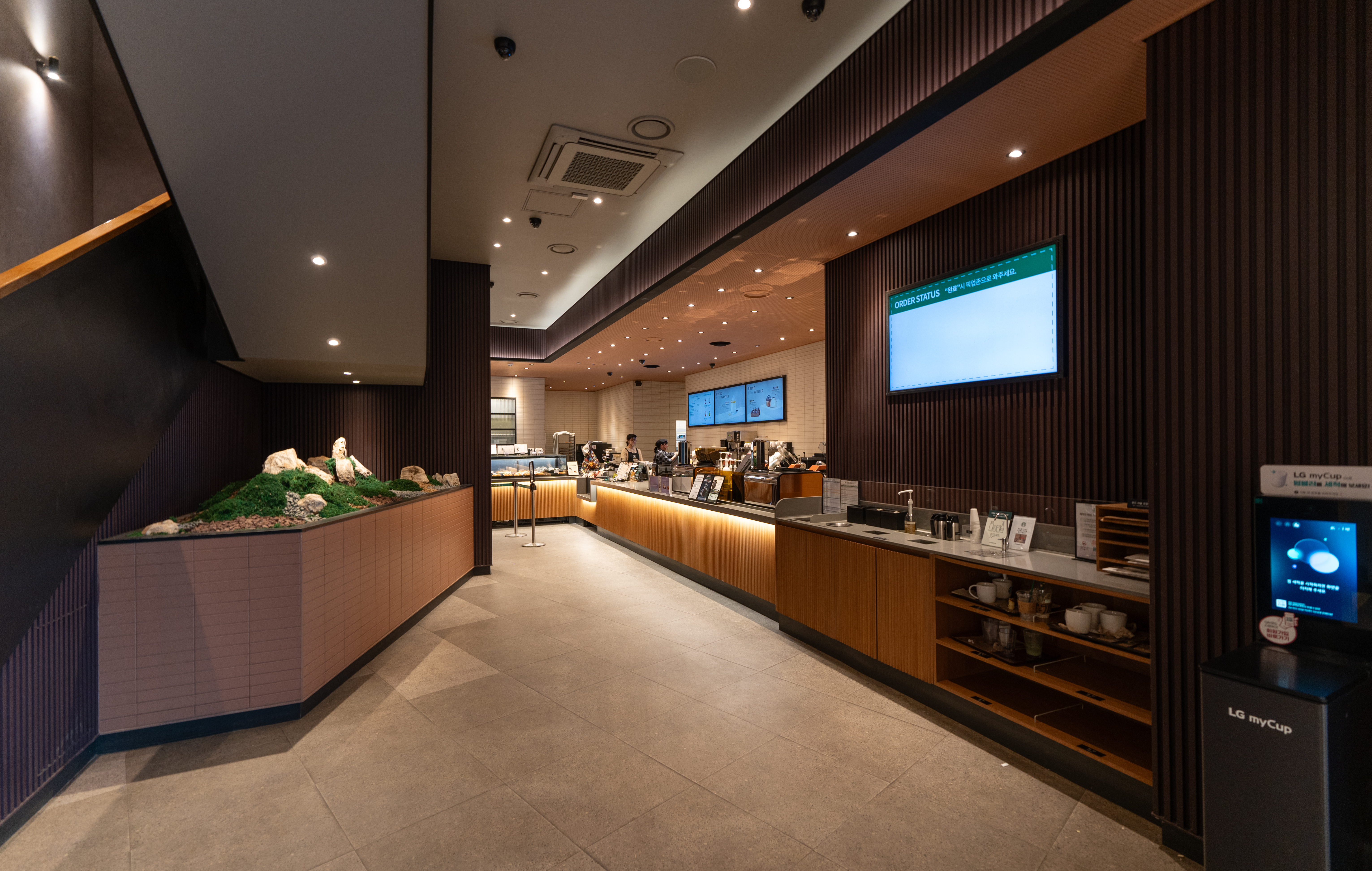스타벅스 더북한산점 매장 내 분위기는 다음과 같습니다. 전체적으로 고급스러운 느낌이 있었고, 아무래도 손님들이 많은 매장이라 그런지 규모도 크고 MD 상품 판매하는 장소도 따로 구분되어 있었습니다.