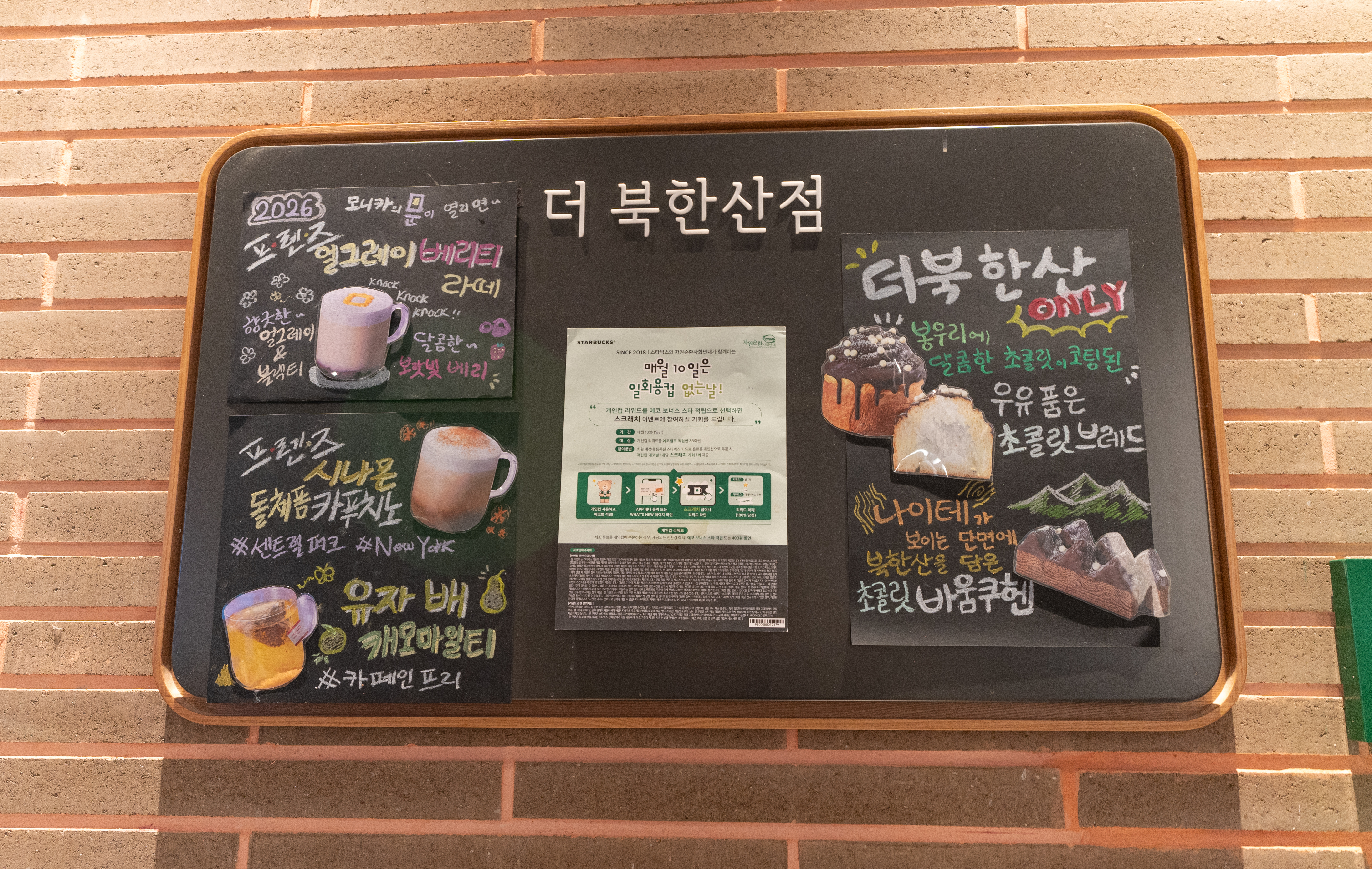 서울에 위치한 이색 북한산 뷰 스타벅스(더북한산점)에 다녀왔습니다. 이곳은 별도의 주차장이 있었고, 꽤 큰 규모로 운영되고 있는 스타벅스였습니다. 매장에서 보이는 북한산 뷰도 멋있었고, 우연히 창가 쪽 자리가 나서 편하게 앉아서 먹을 수 있었던 점도 좋았습니다. 고급스러운 분위기에 무난한 커피맛 관심 있으신 분은 한 번 이용해 보셔도 괜찮을 것 같습니다.