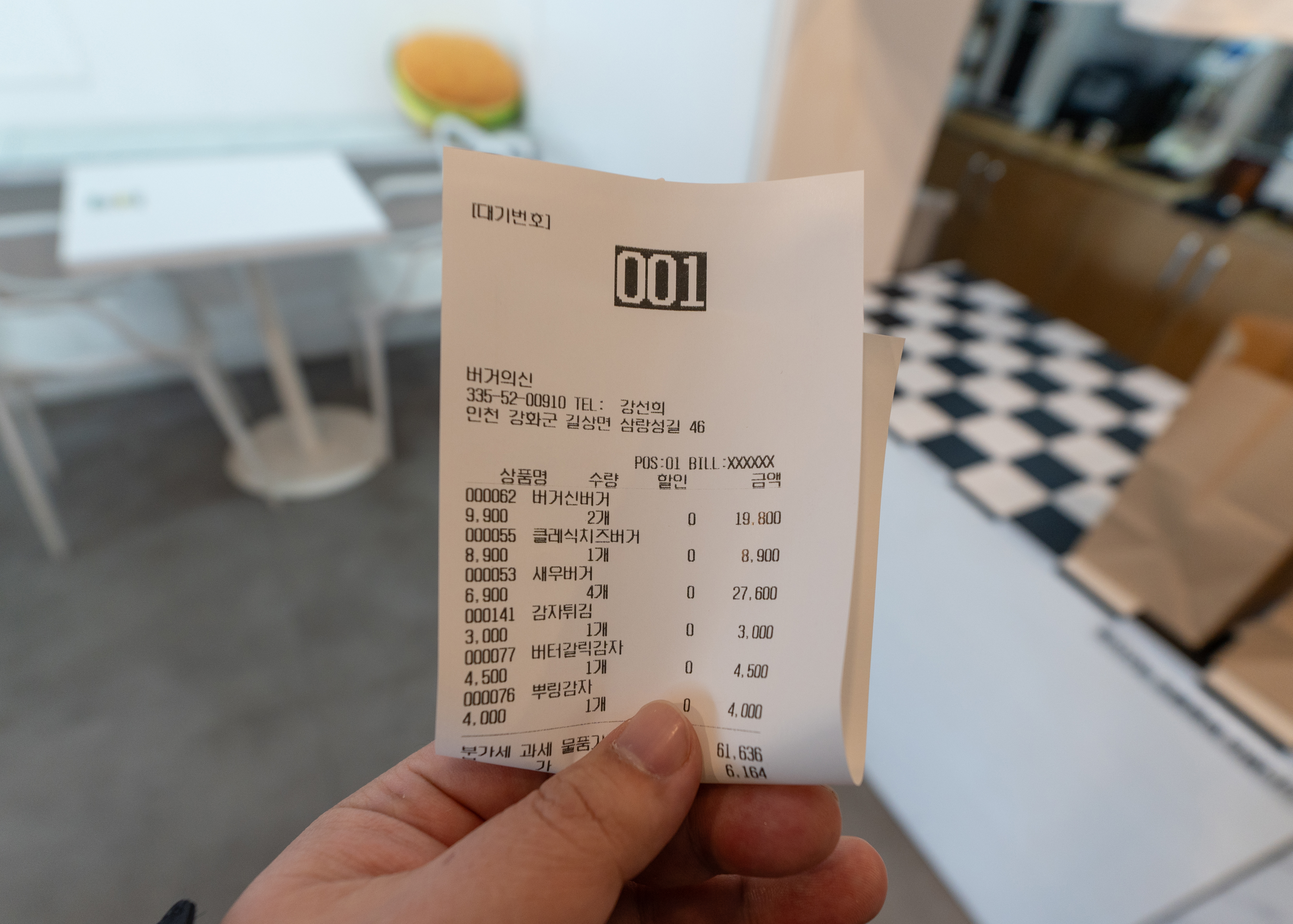 저희는 버거의신의 버거신버거, 클래식치즈버거, 새우버거, 감자튀김, 버터갈릭감자, 뿌링감자를 주문했는데요, 꽤나 여러 메뉴를 주문했음에도 6만 원 대 정도밖에 안 나오더라고요. 저는 햄버거 만드는 데 걸리는 시간 때문에 여유 있게 미리 전화 주문을 하고 매장에 방문했습니다.