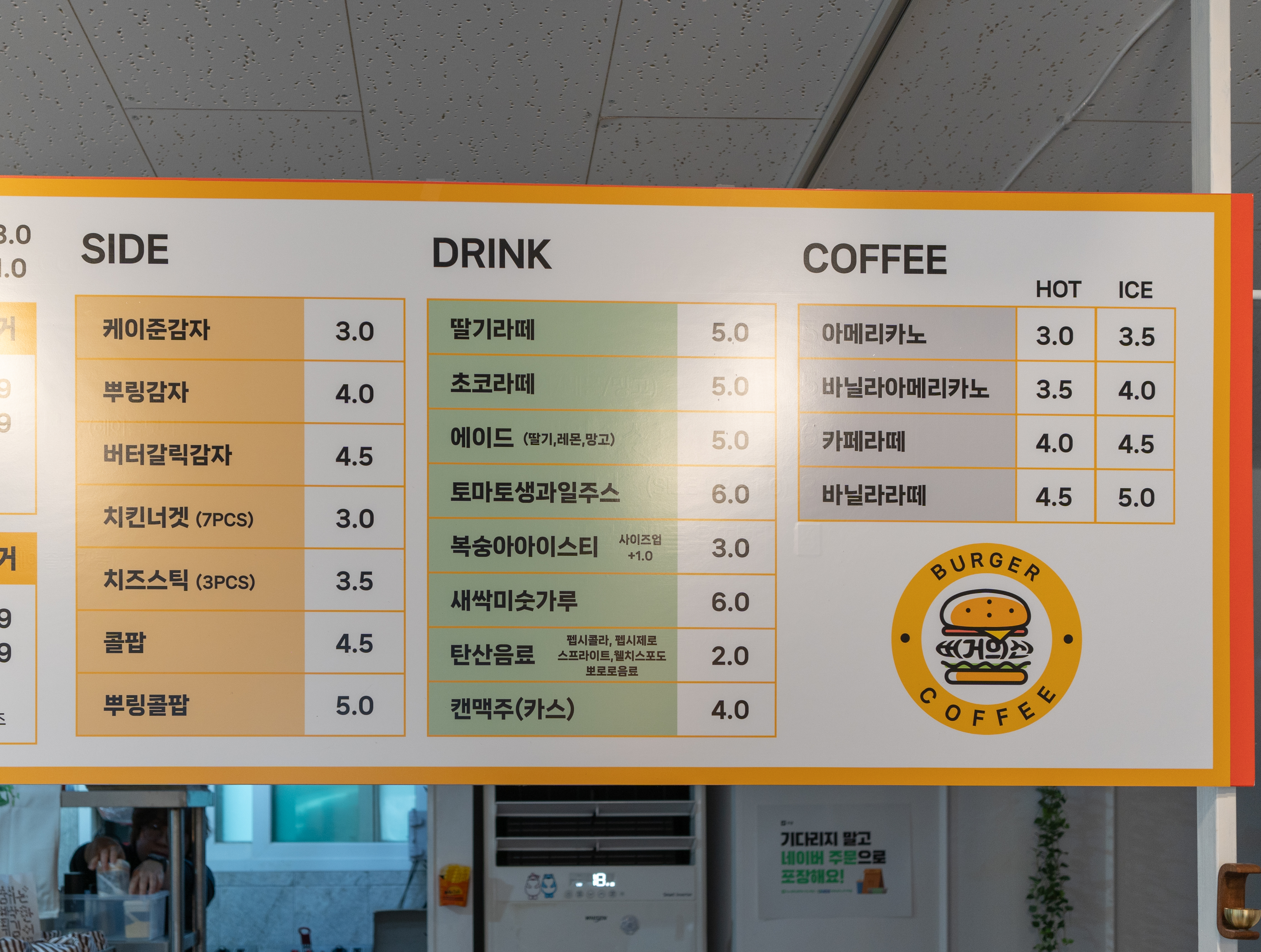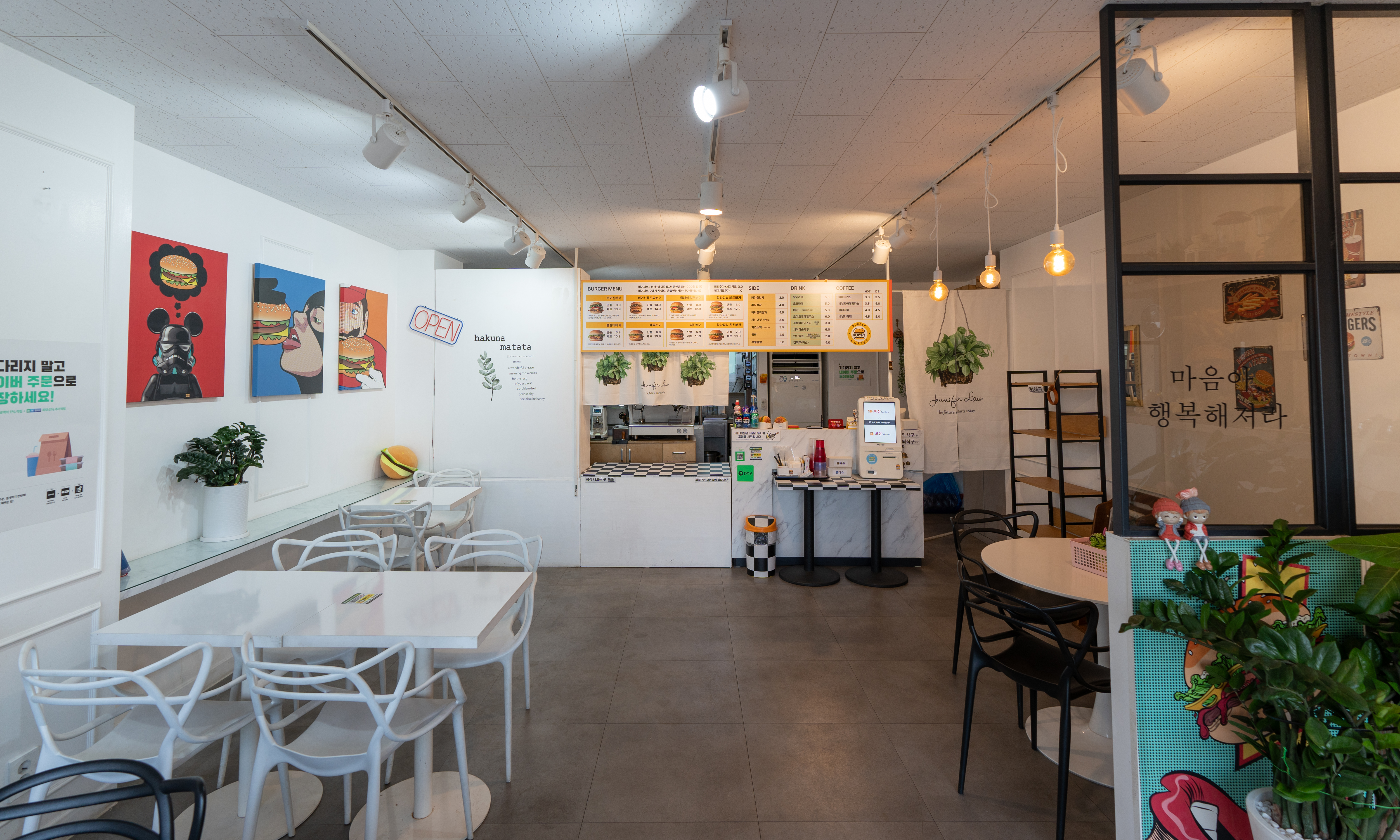 버거의신의 영업시간은 10:00-19:30 였고, 매주 월요일은 정기휴무 라고 합니다. 가게 분위기는 그냥 시골 동네의 카페(?) 느낌이었는데요, 약간 어수선한 느낌이 있긴 하지만, 아무래도 메인 메뉴인 햄버거만 맛있으면 그만이죠.