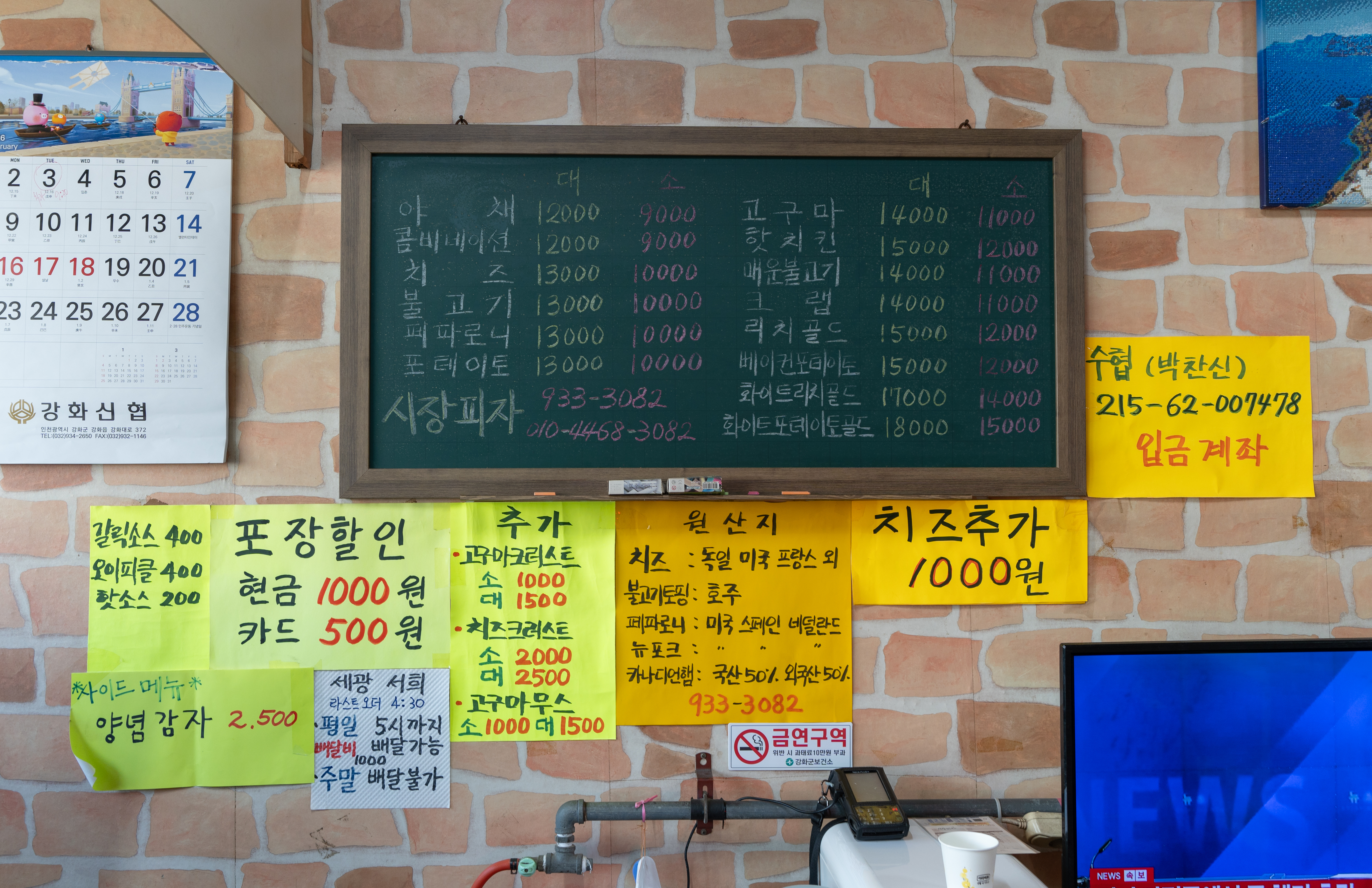 시장피자는 인천 강화군 강화읍 강화대로312번길 20, 1층에 위치해 있었습니다. 이곳은 '100% 정통 수타피자' 를 판매한다고 되어 있었습니다. 작고 오래된 동네의 피자 가게였는데, 강화도 시장피자의 메뉴도 함께 살펴보실까요?