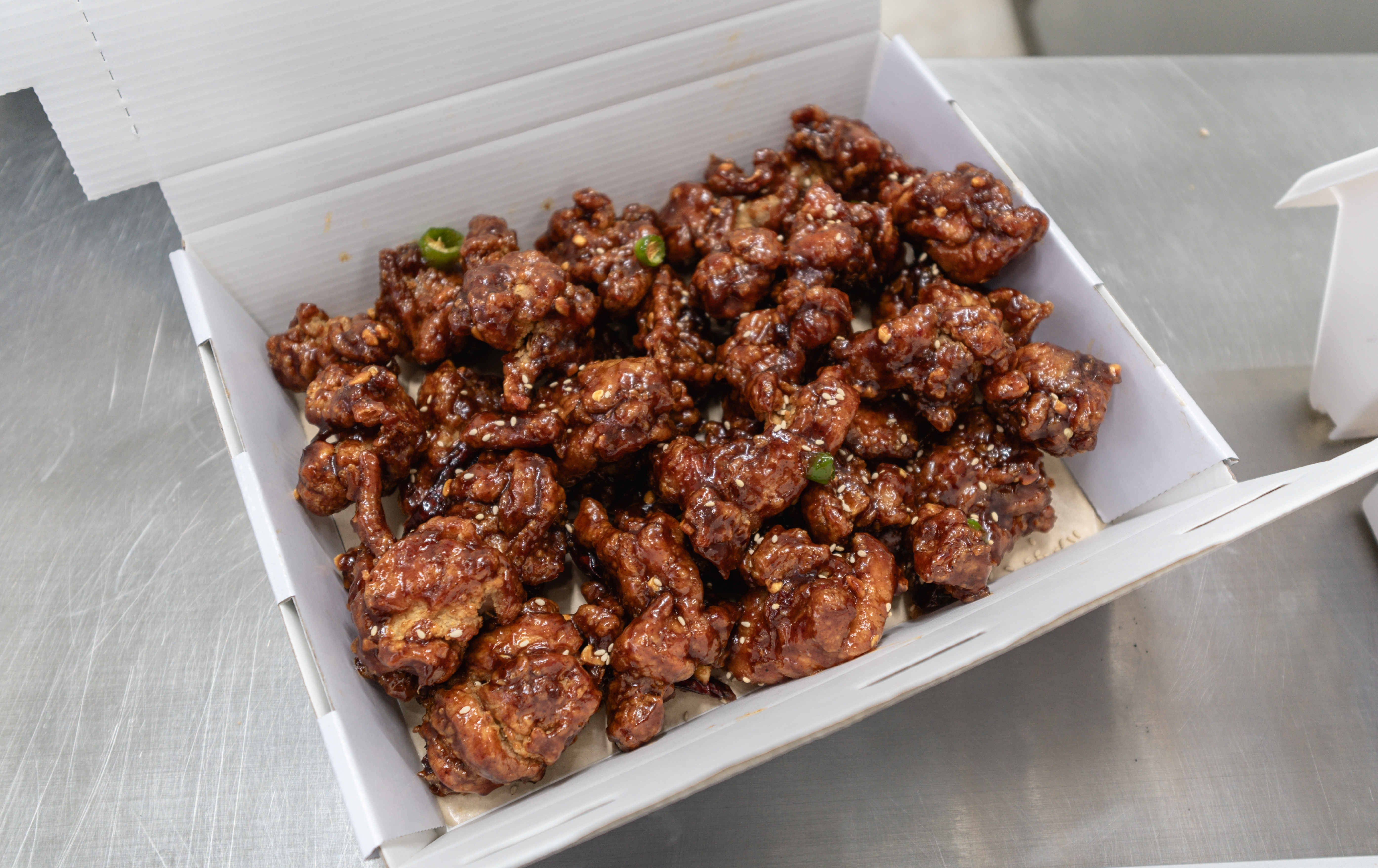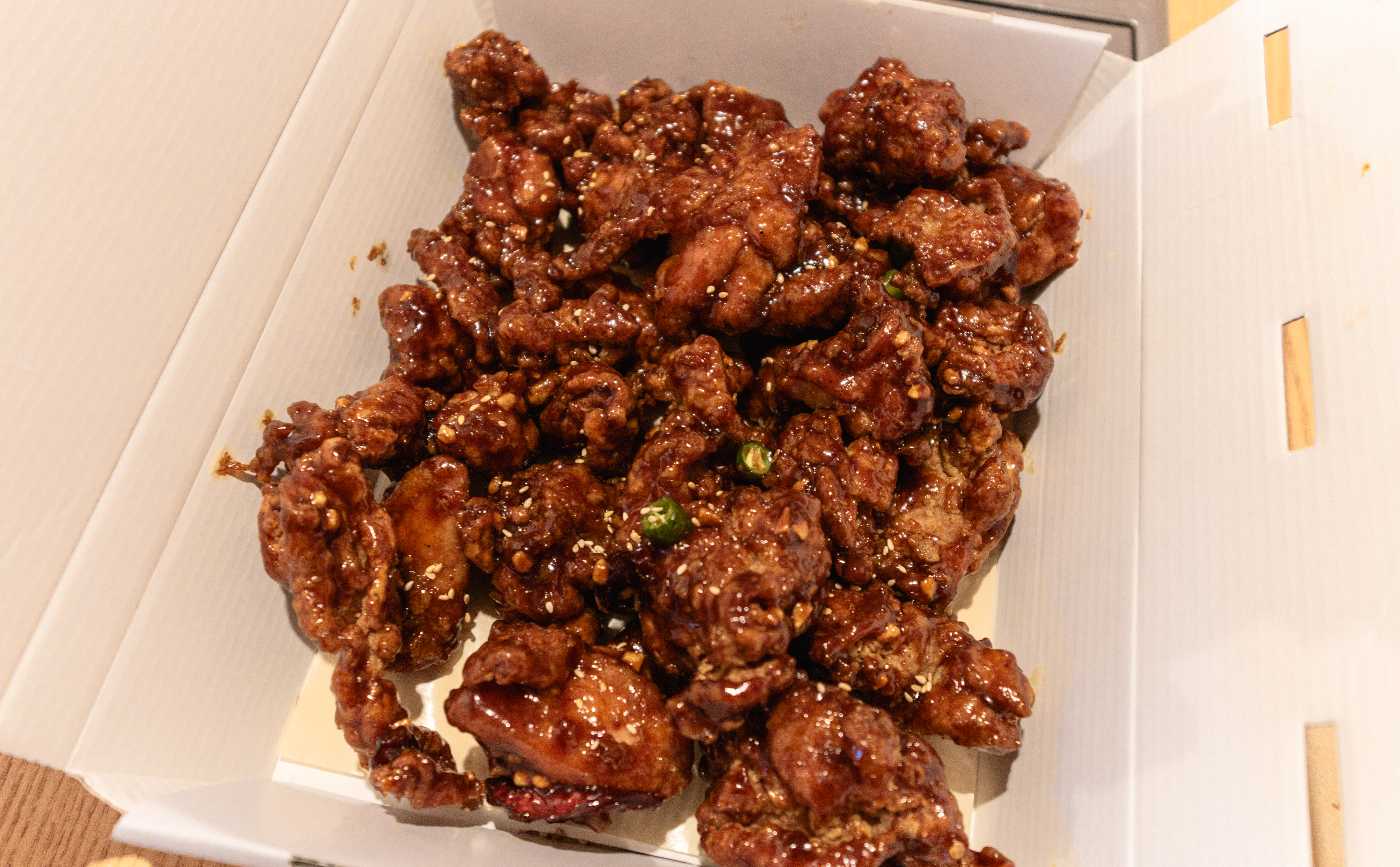 마니산닭강정의 닭강정 모습입니다. 고등학교에 입학하는 딸에게 선물해 줬더니 좋아하더라고요. 다행히 입맛에 맞아하고 맛있게 잘 먹어줘서 고마웠고요. 마니산닭강정의 닭강정은 살짝 매콤한 맛인데, 기본적으로 순살 닭강정을 판매하고 있었고, 양념이 진해서 맛있었습니다. 그리고 닭강정은 식을수록 더 맛이 있죠. 마니산닭강정도 딱 그런 메뉴여서 맛있게 먹을 수 있었습니다.